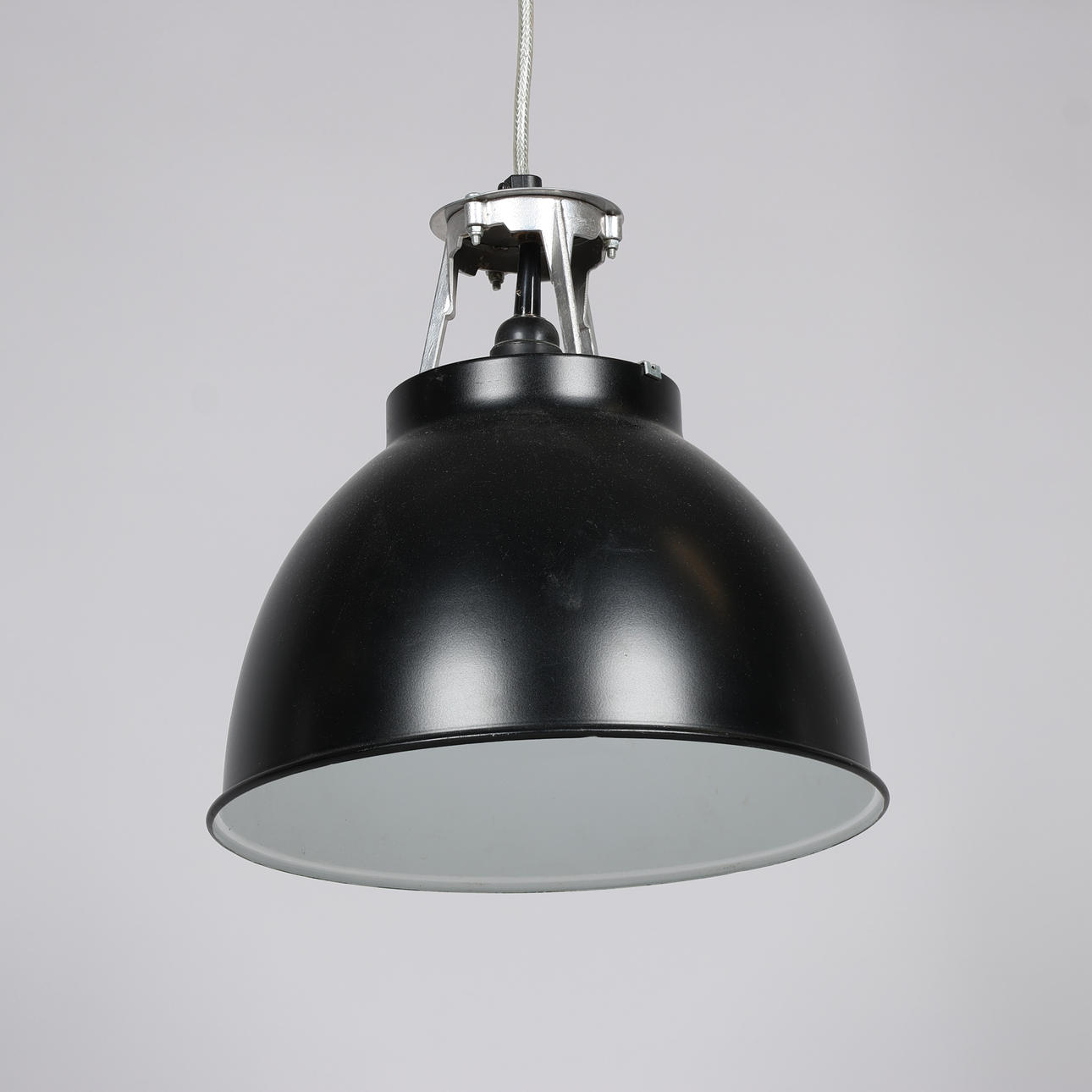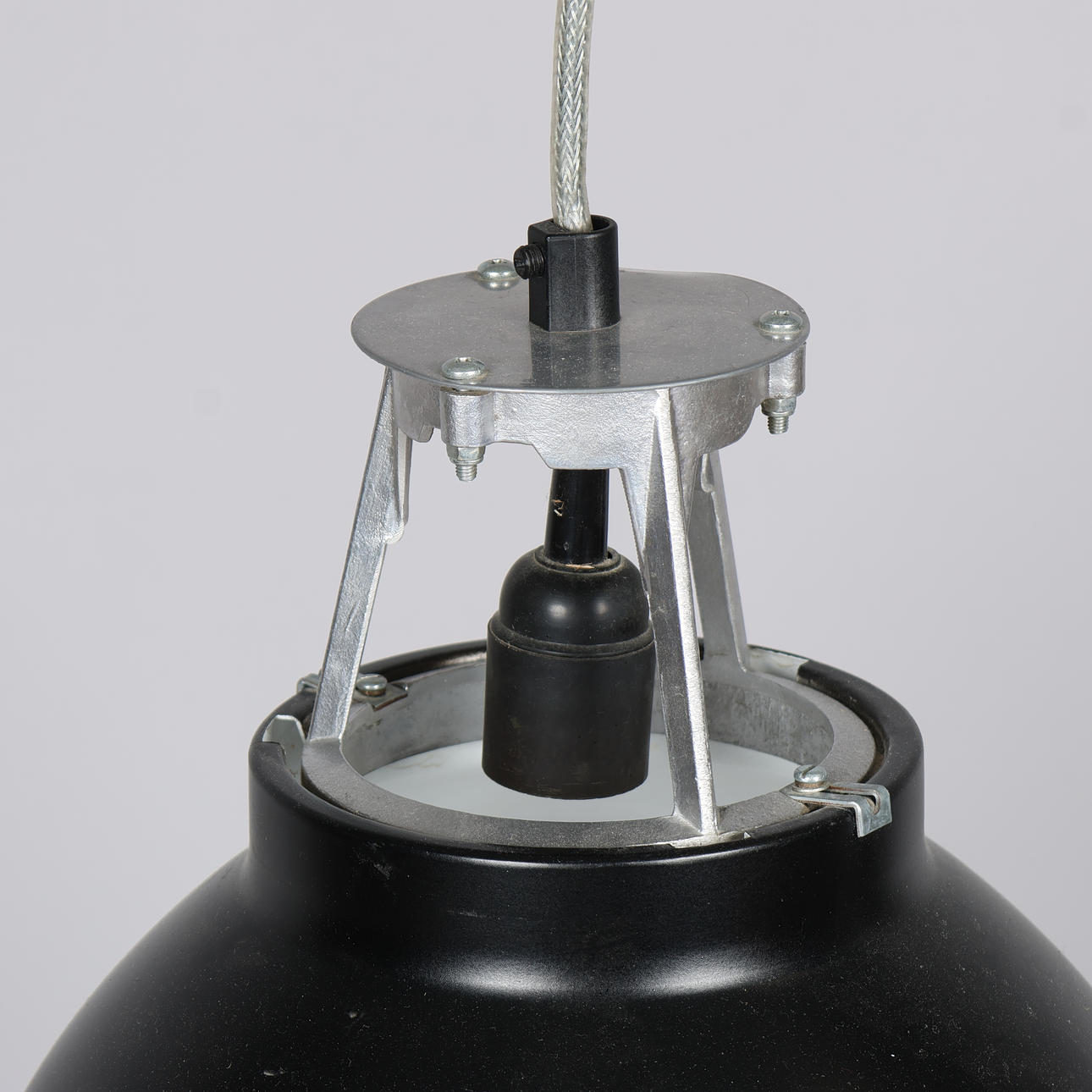 Loftlampe i industrilook model 'Titan' fra Engelske BTC, sortlakeret. Originale ledning og baldakin medfølger. Højde 35 cm Ø35 cm.