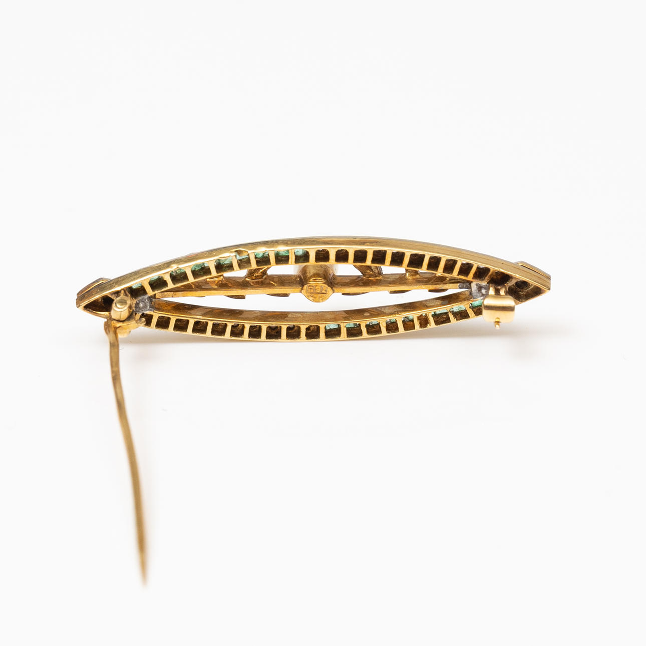 Broche i 18kt guld med rosenslebne diamanter og prinsesseslebne smaragder