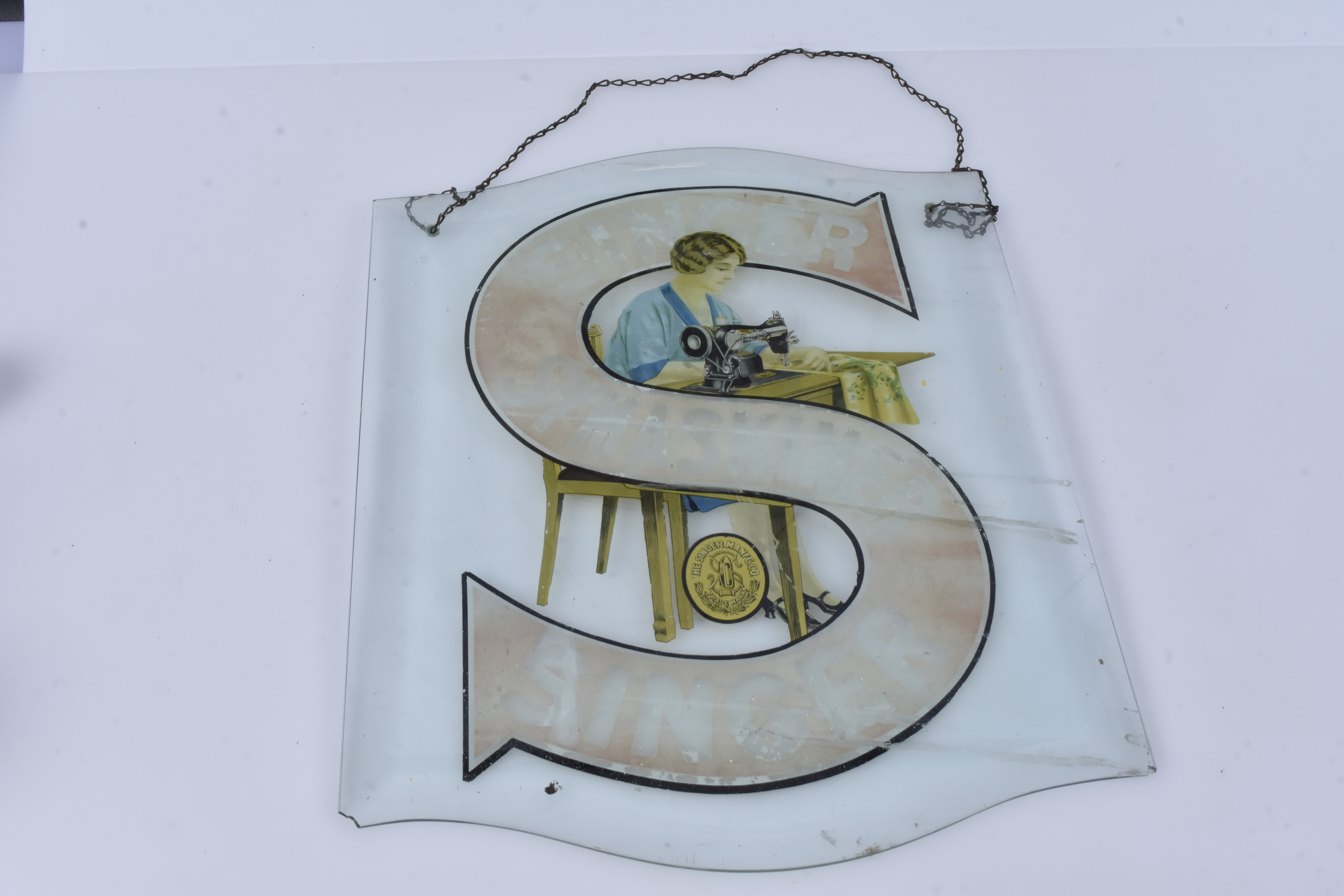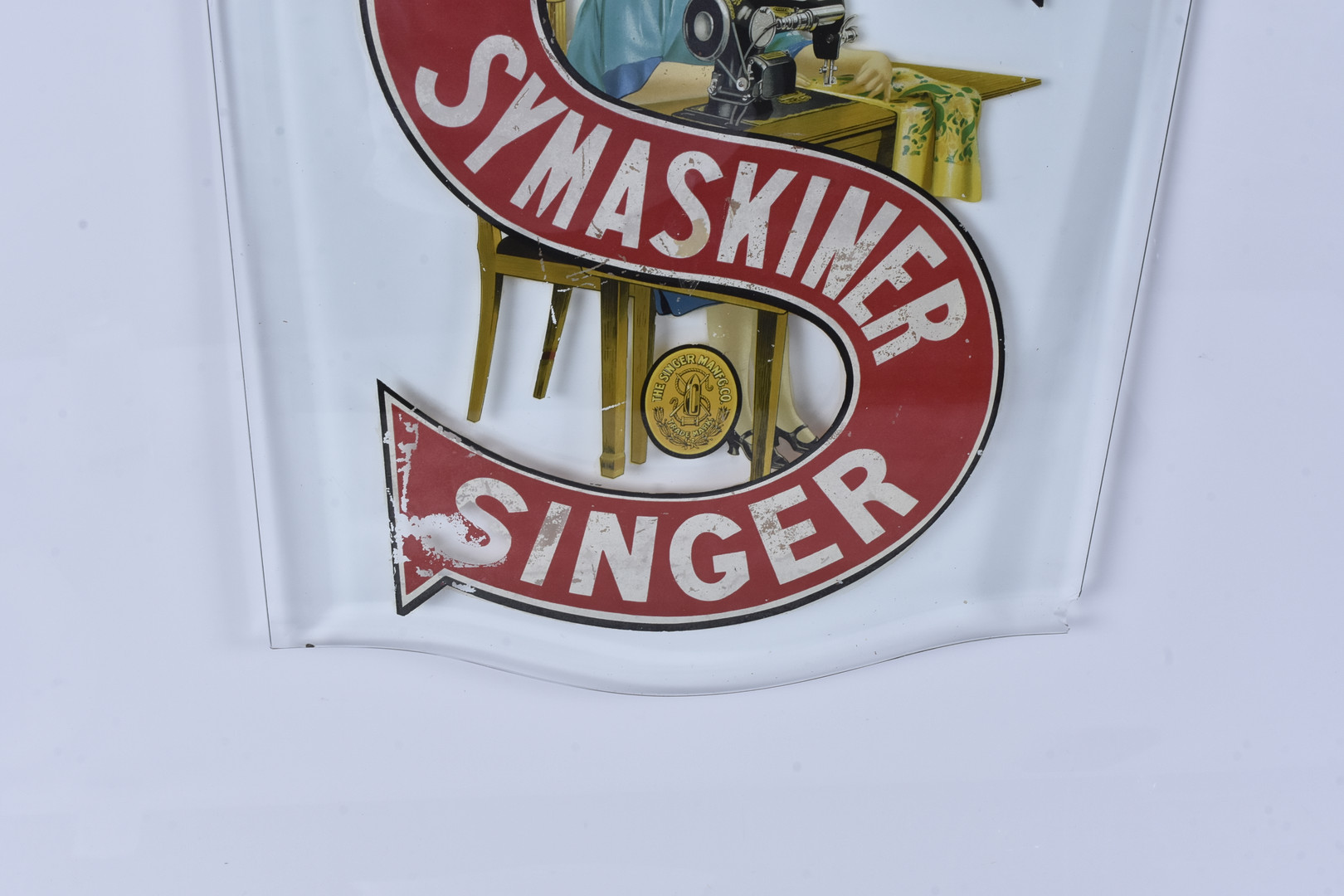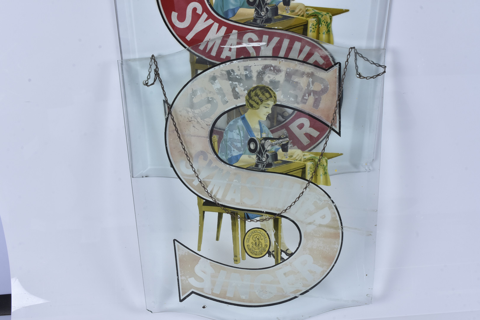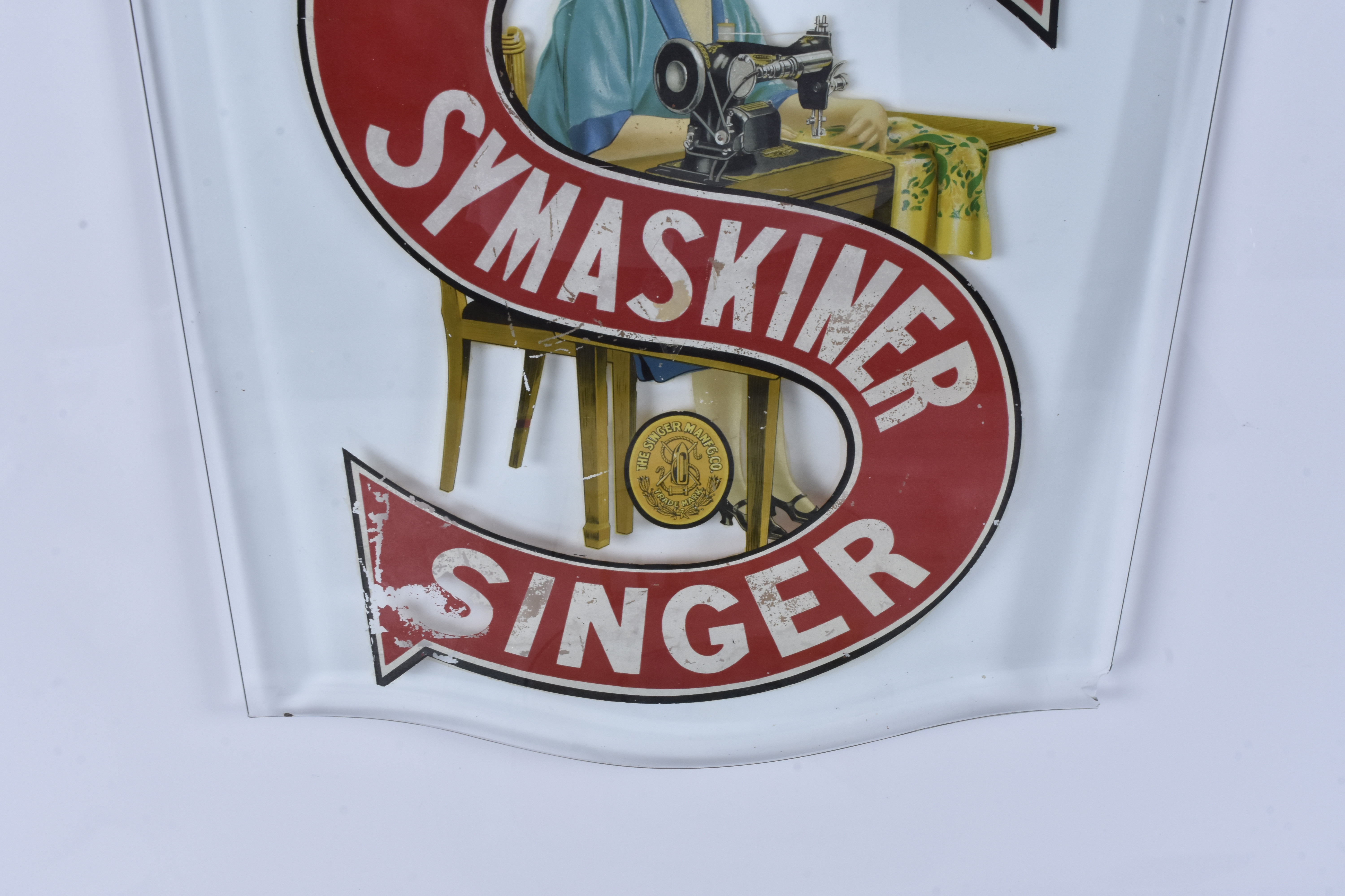 4362320. SKILTE, 2 stk, glas, „Singer Symaskiner“.