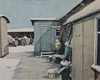 STIG WERNHEDEN. EFTER. litografi, vinterdag ved fiskeskur.