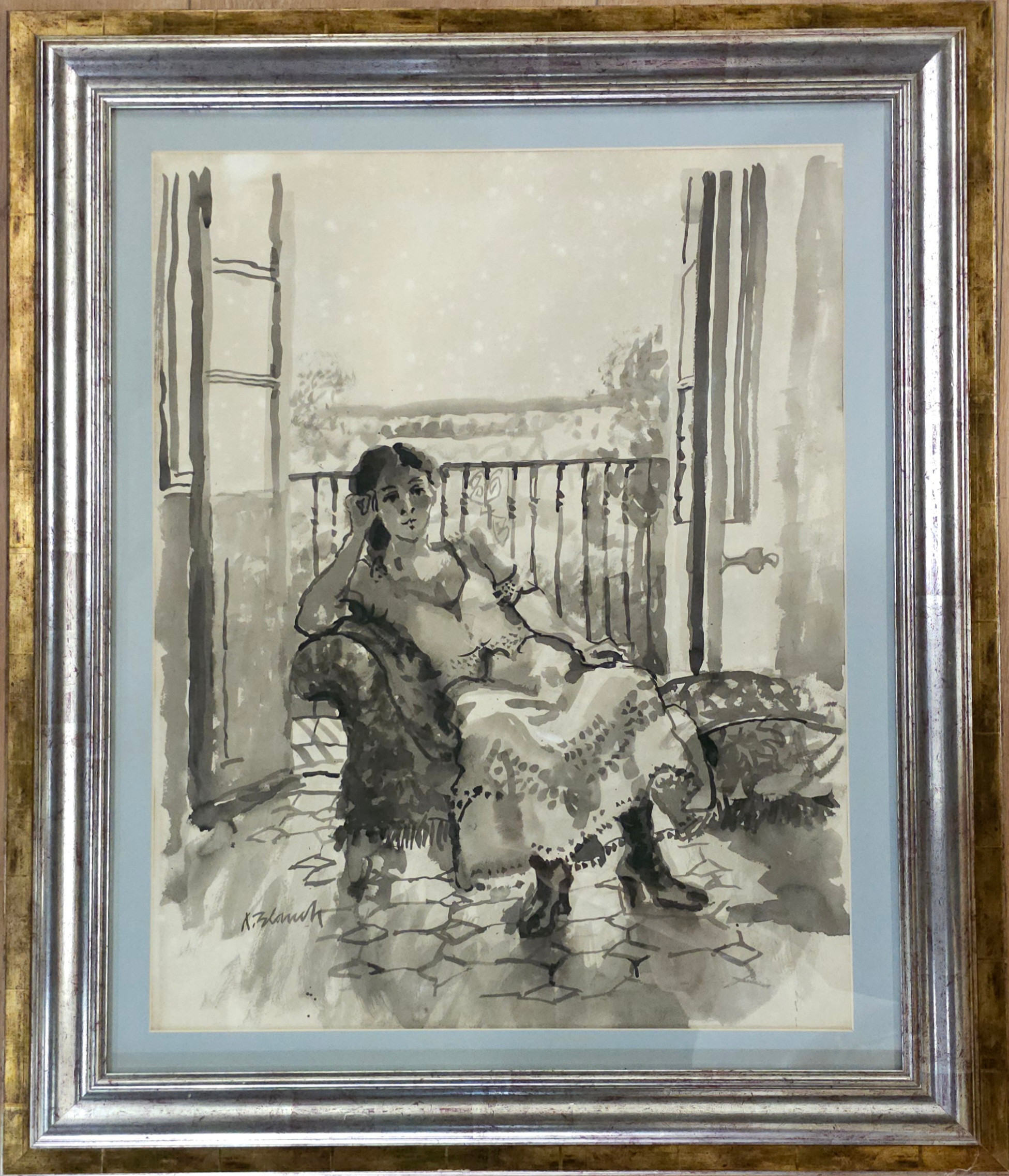4362911. XAVIER BLANCH PLA. „Siddende kvinde“ akvarel.