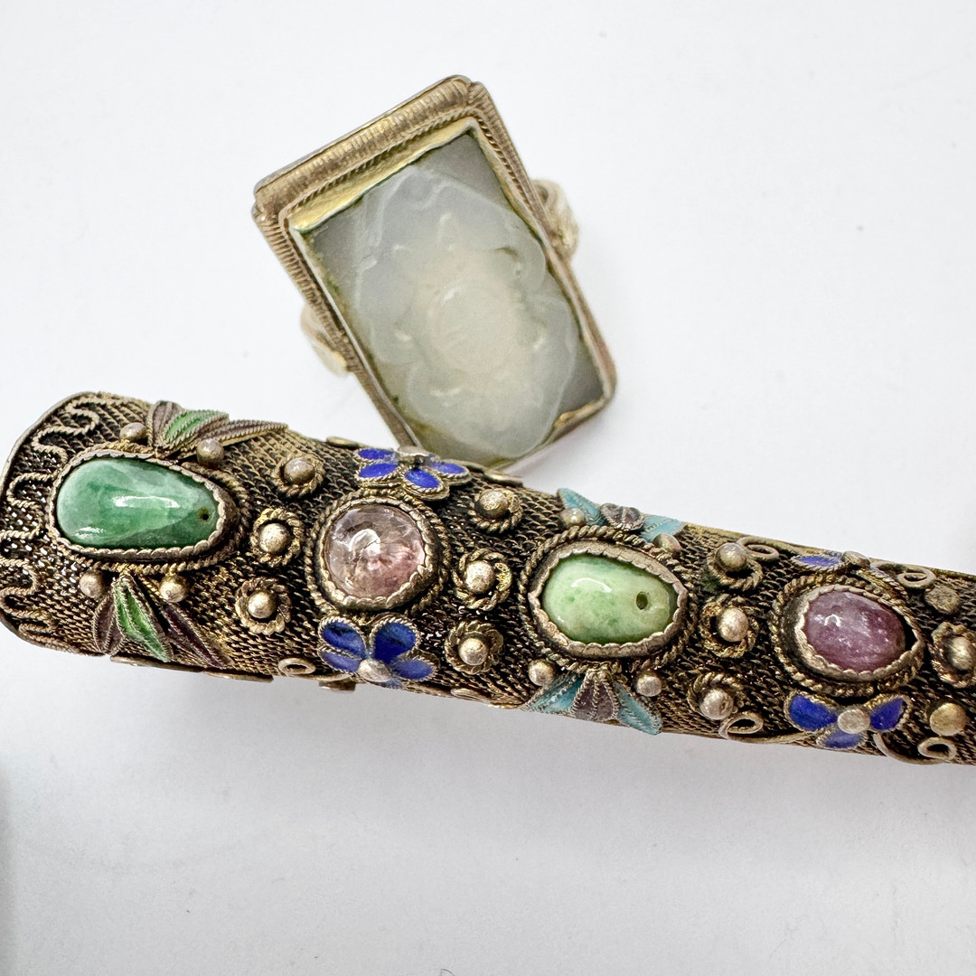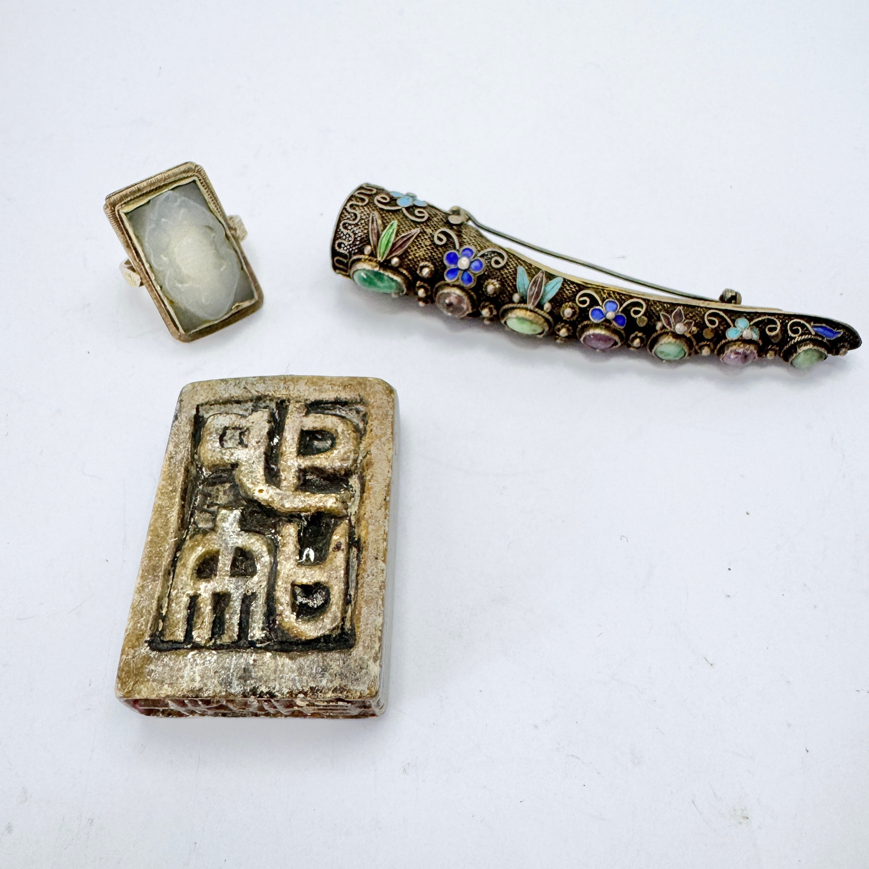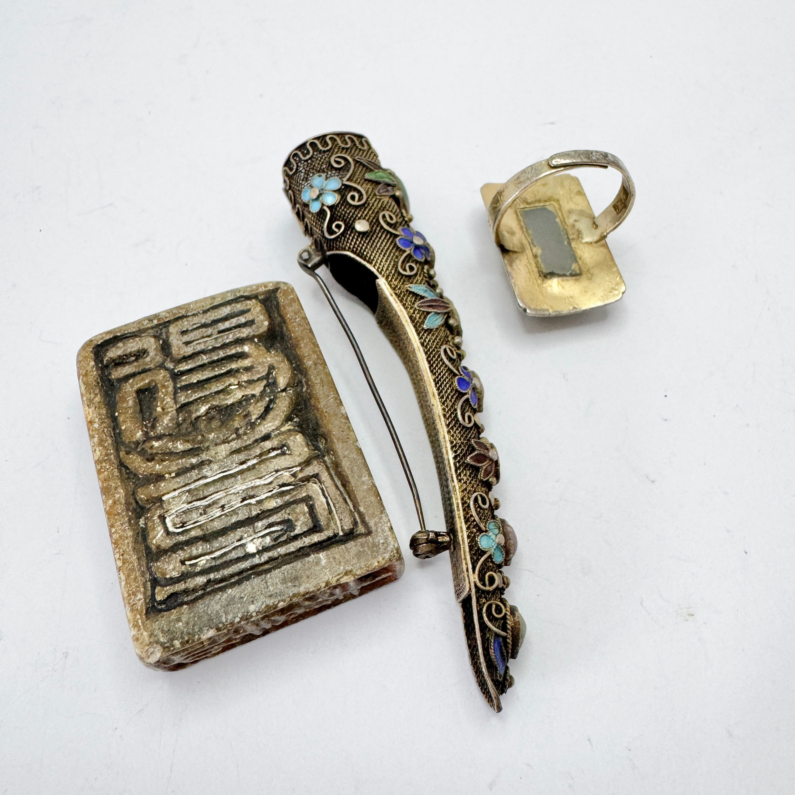 4362920. Ring, broche og segl. Kina. Delvis sølv.
