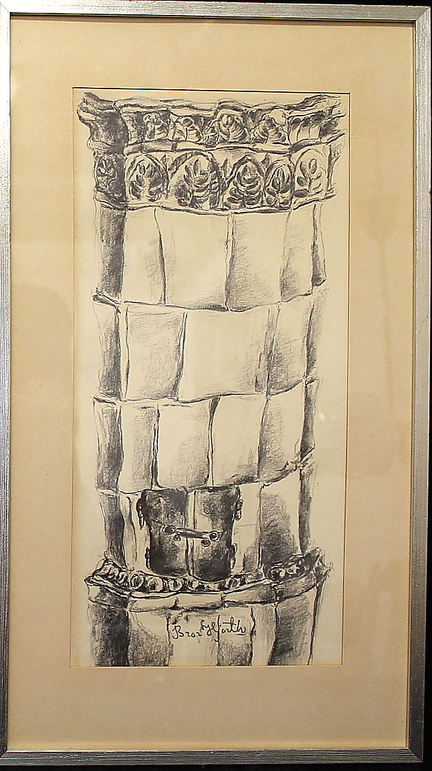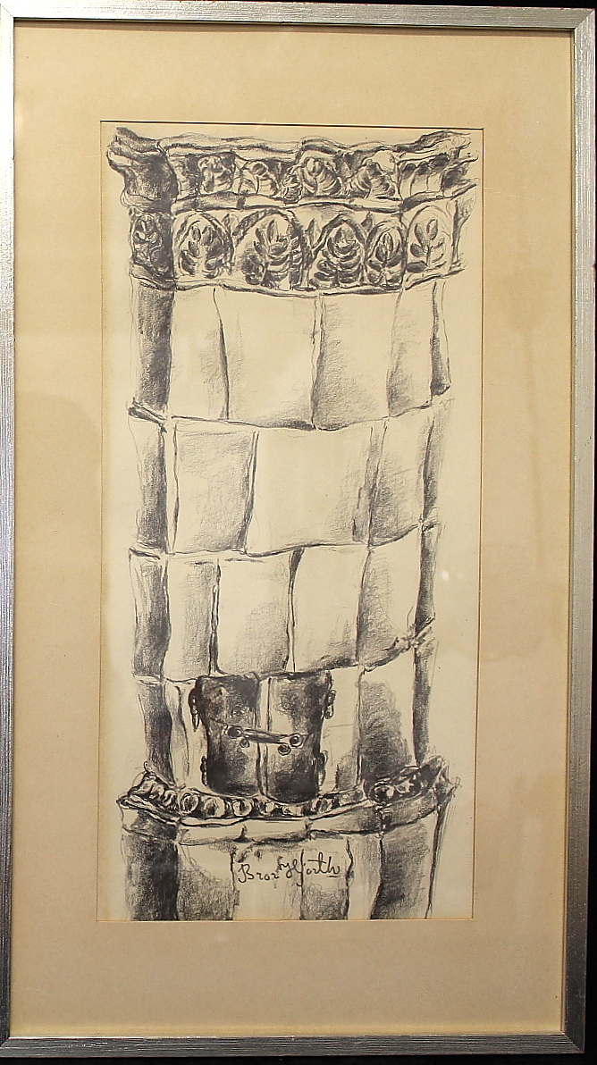 436297. BROR HJORT. tegning, kakkelovn, sign.