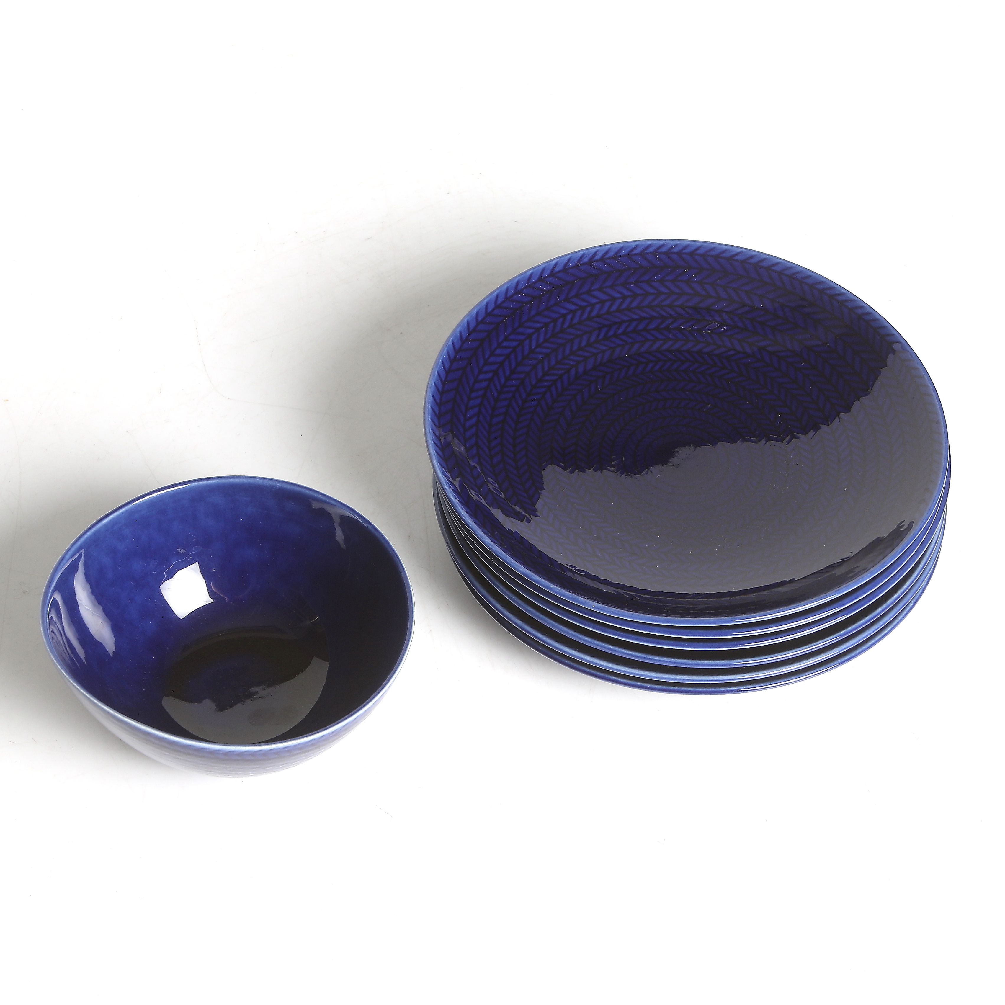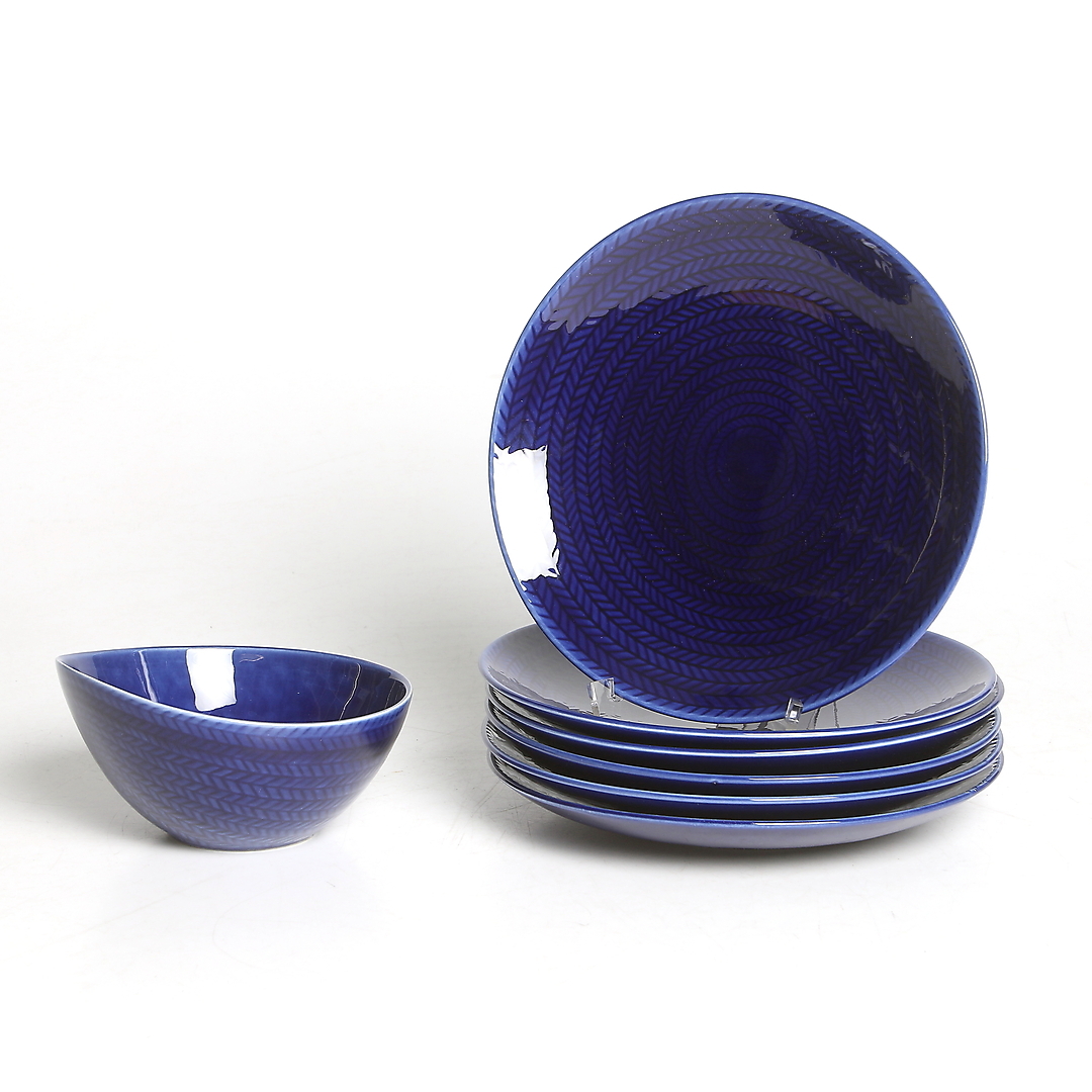 436351. SERVICEDELE, 7 dele, "Blue Fire", Hertha Bengtsson, Rörstrand.