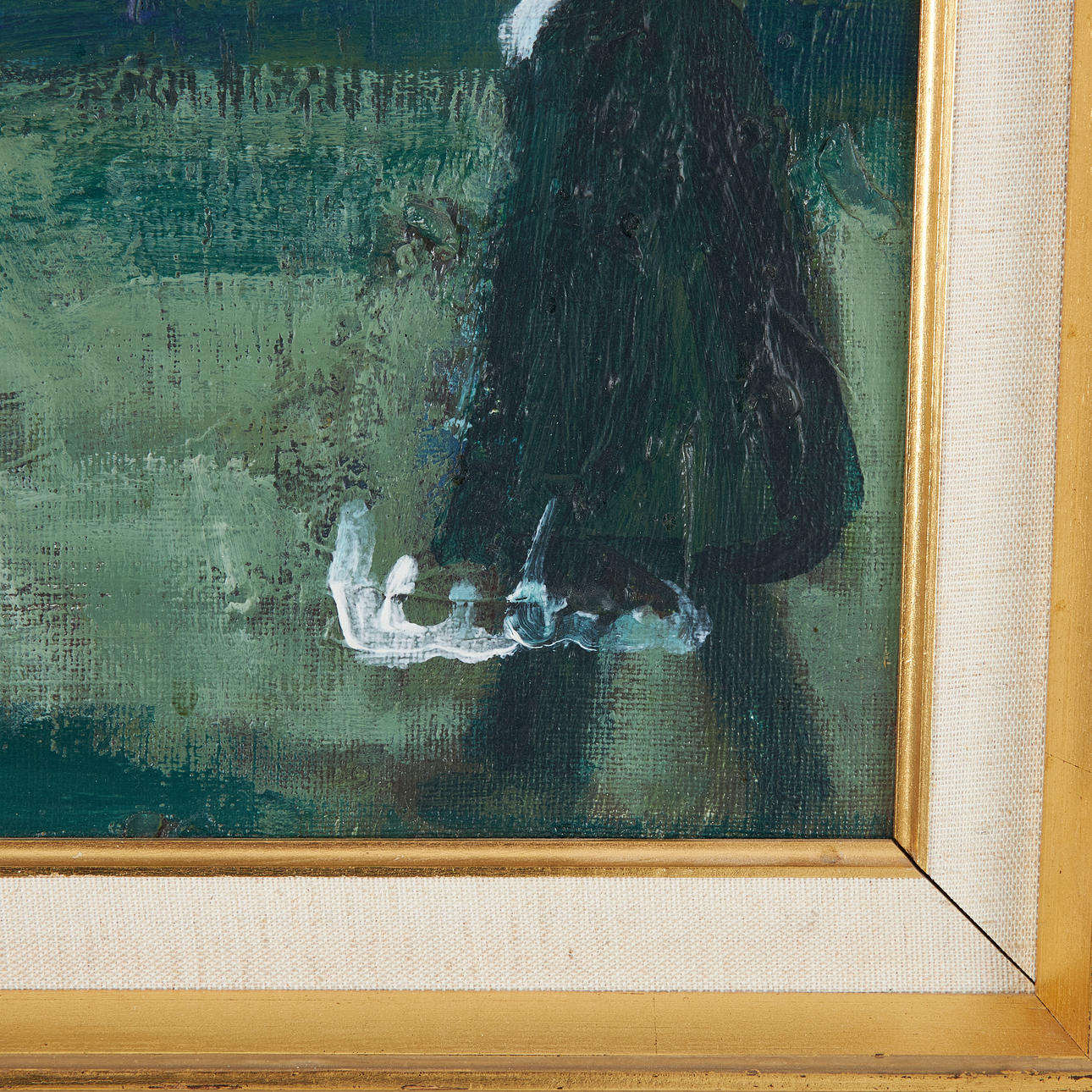 4363994. OIDENTIFIERAD KONSTNÄR. Figurkomposition, olie på lærred, signeret.