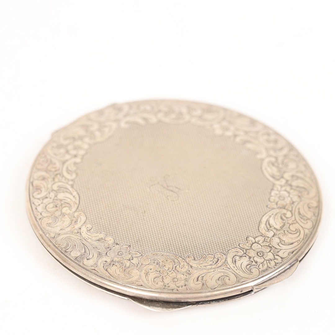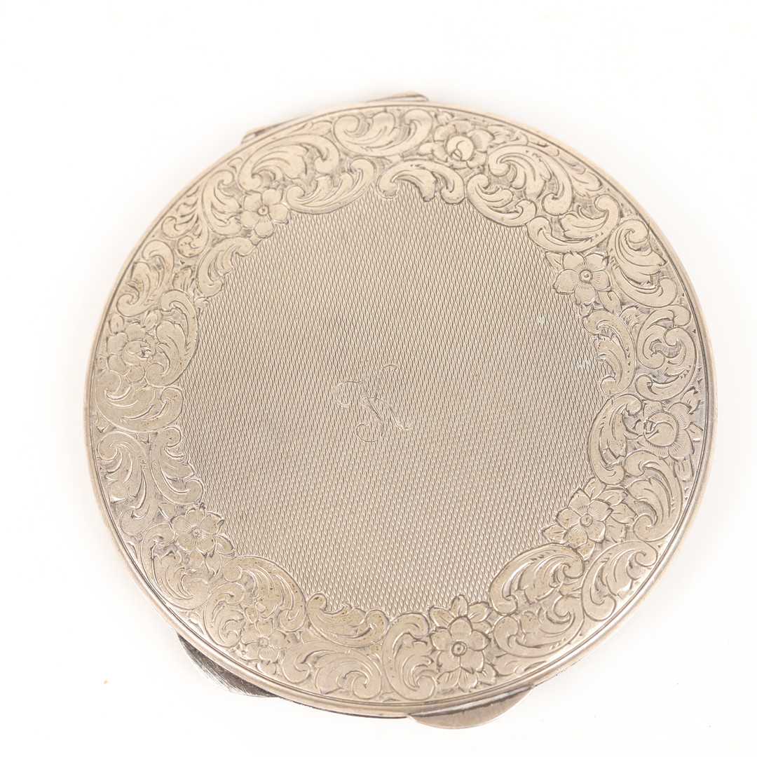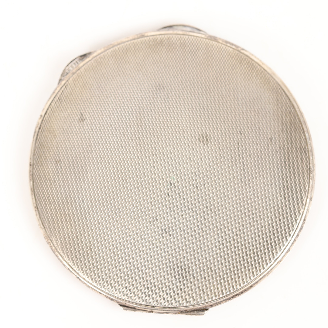 4364170. PULVERKASSE, sølv med indgraveret indretning.