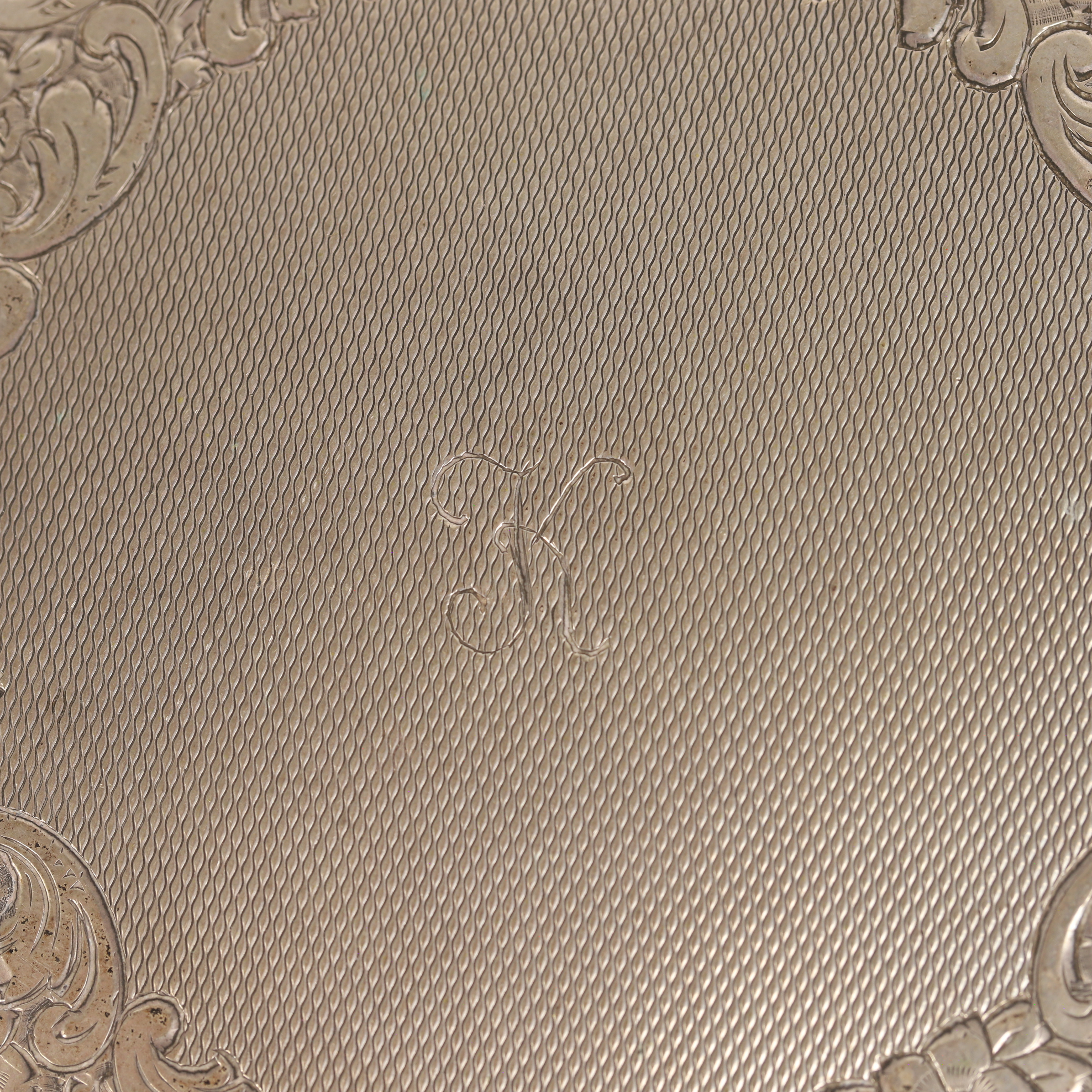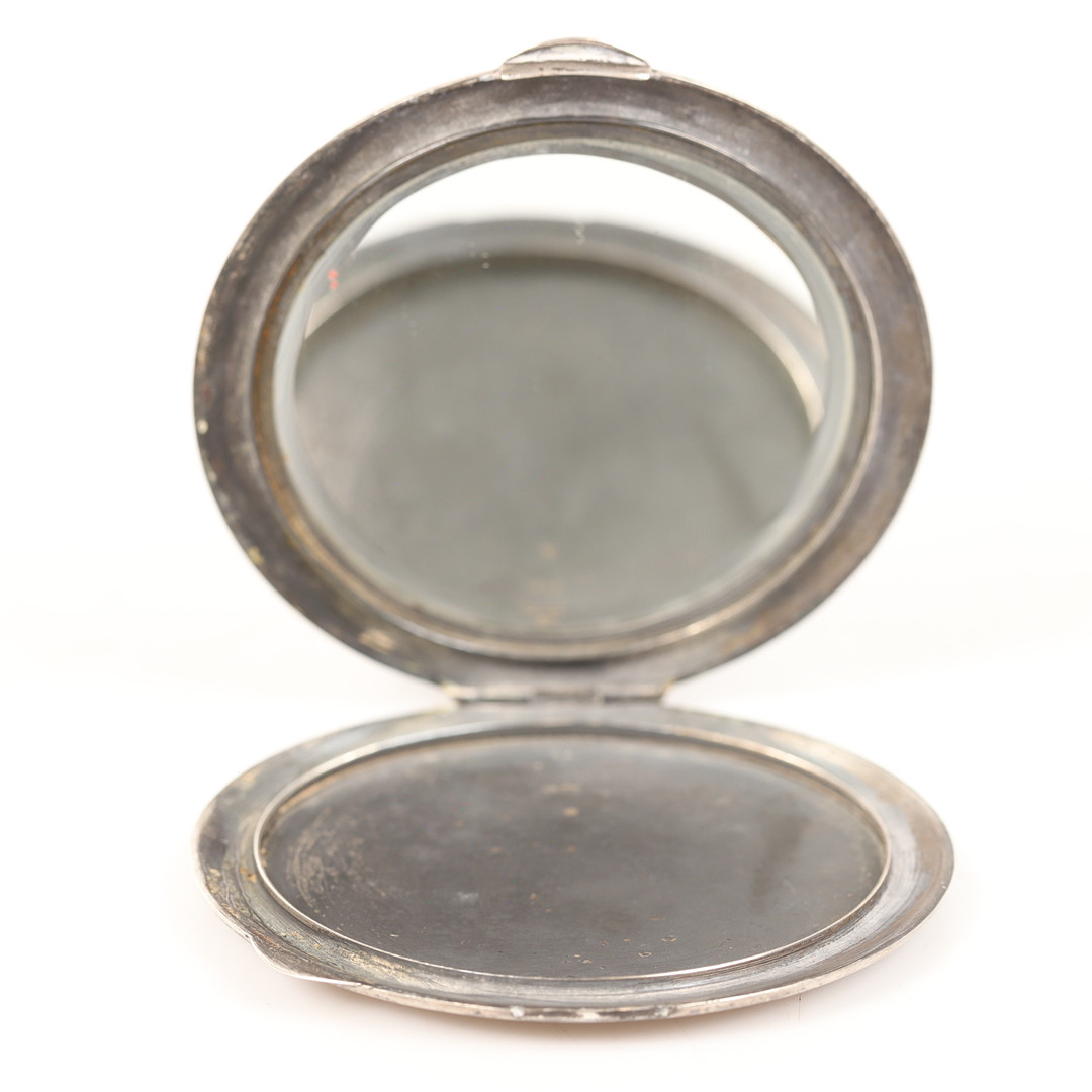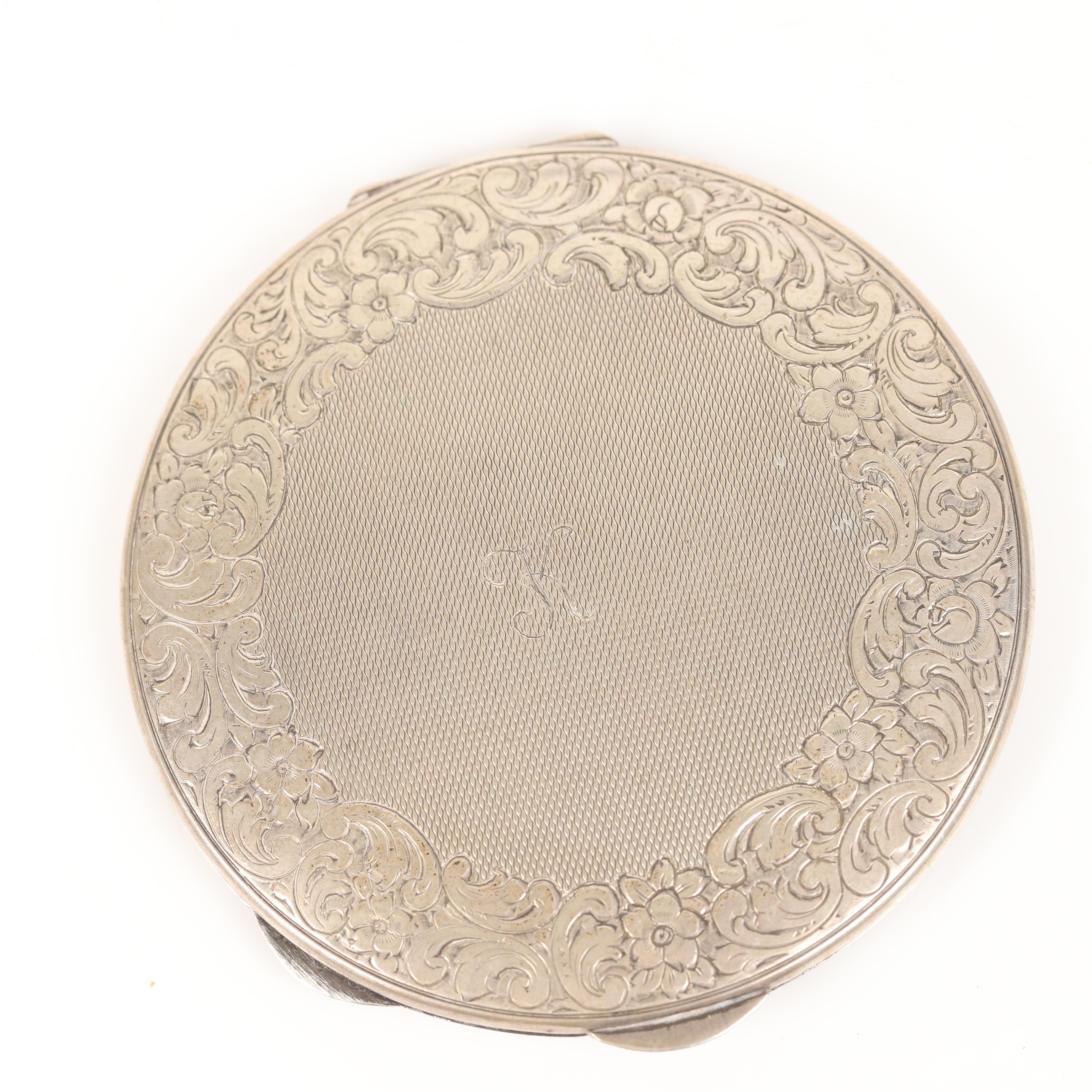 4364170. PULVERKASSE, sølv med indgraveret indretning.