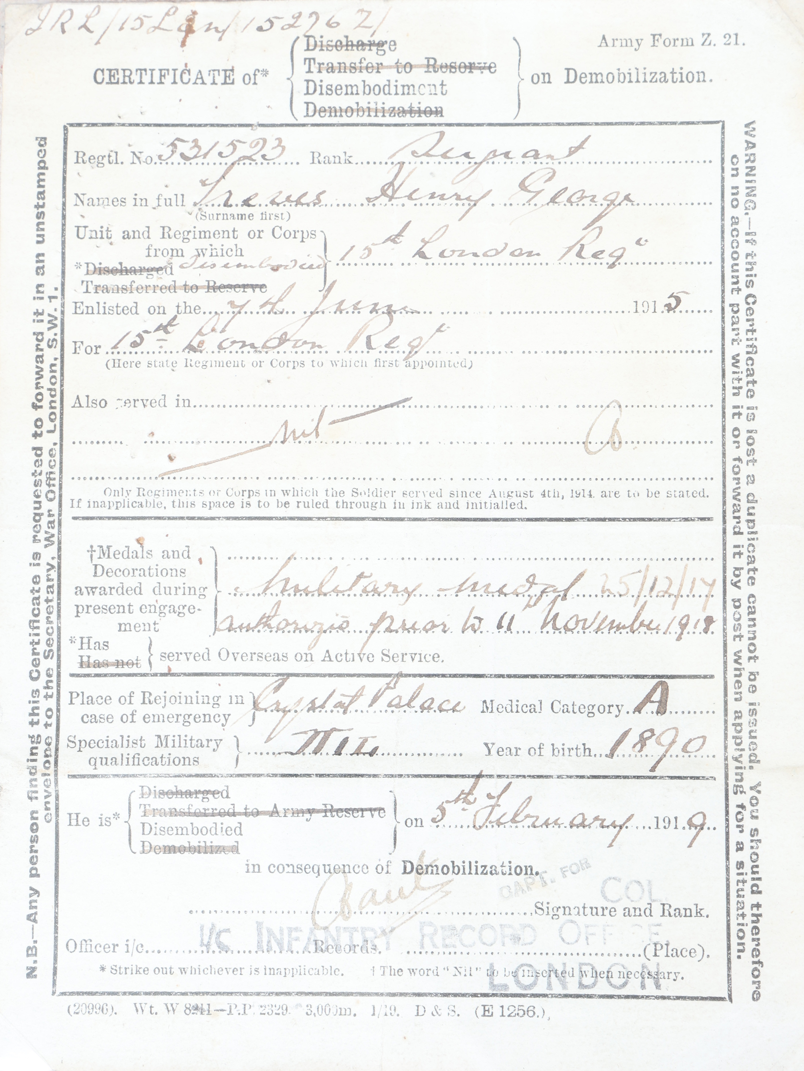 4364505. WW1 GRUPPERING, LONDON-REGIMENT.