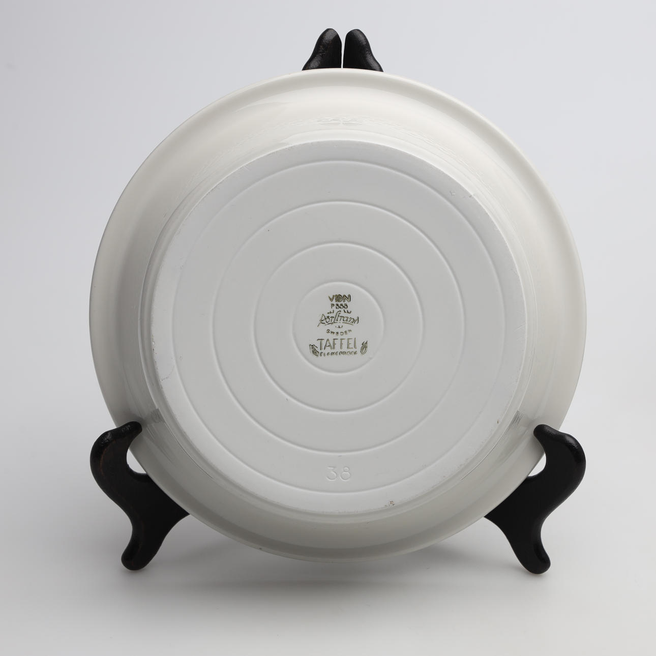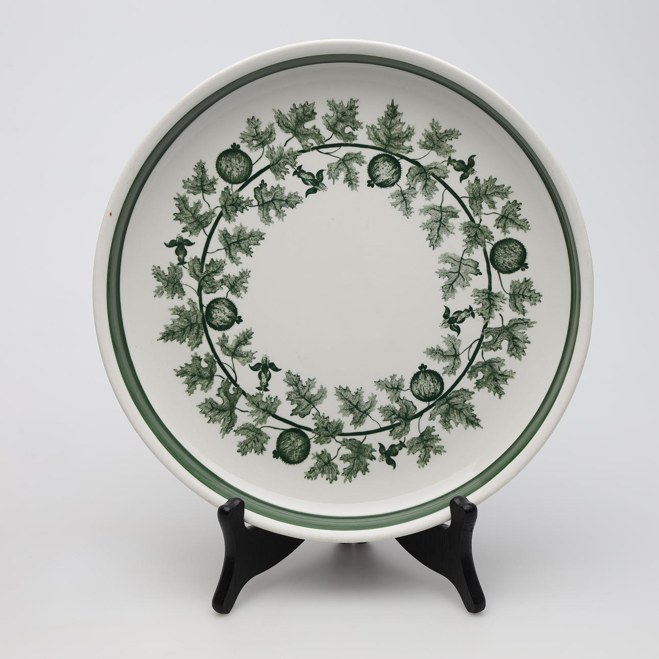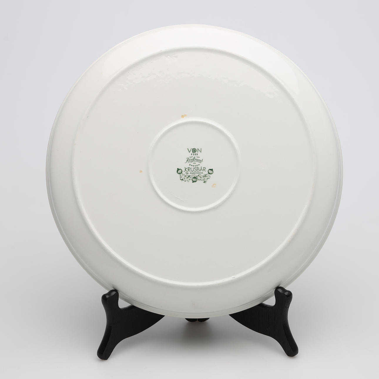 1 „Stikkelsbær“ underkop, Rörstrand, diameter 26,5 cm. 1 stykke form, „Bord“, Rörstrand, diameter 24 cm. 1 carot, „Kajsa“, Rörstrand, højde 6 cm.