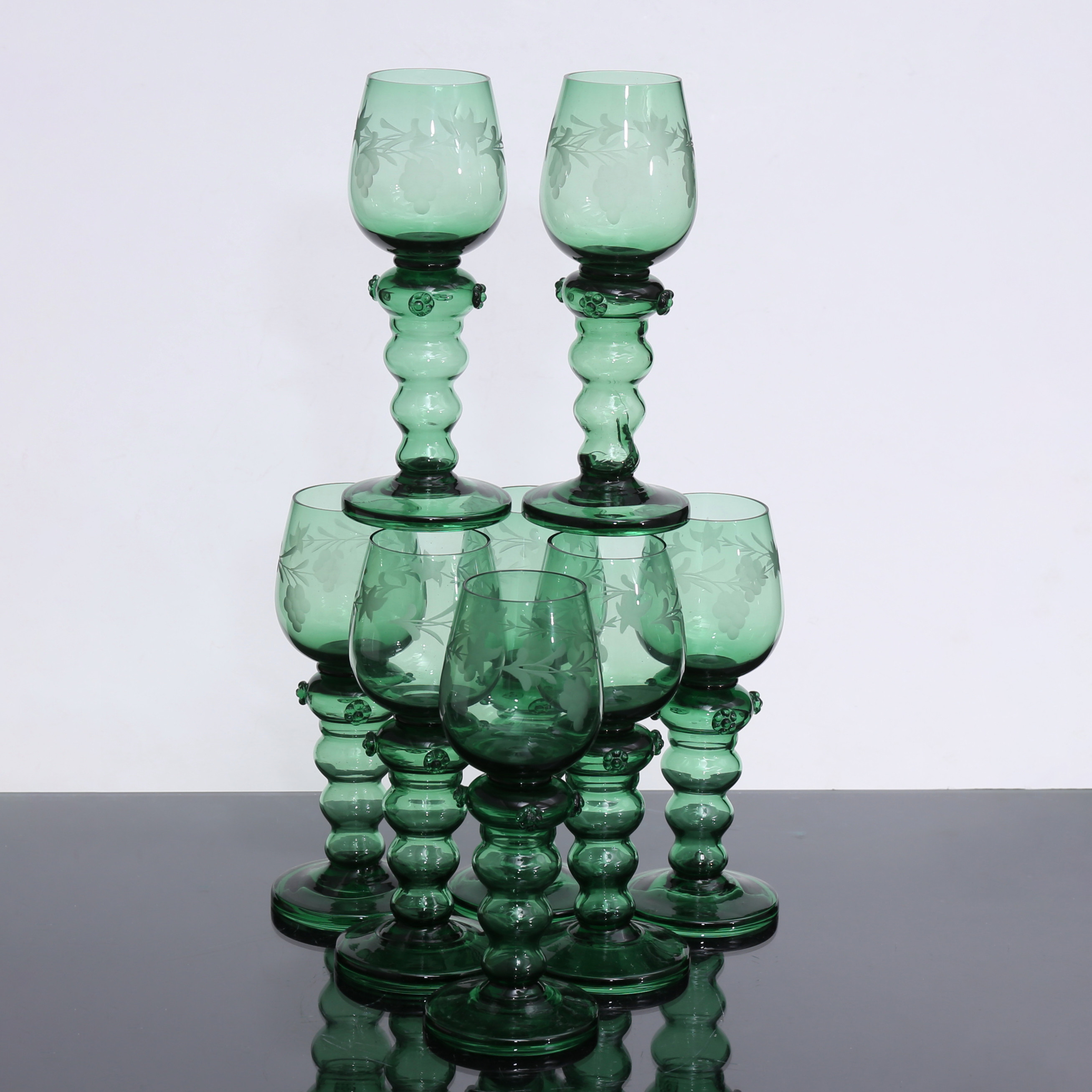 4364706. STROPPER, 8 stk., grønne glas, 20. årh.