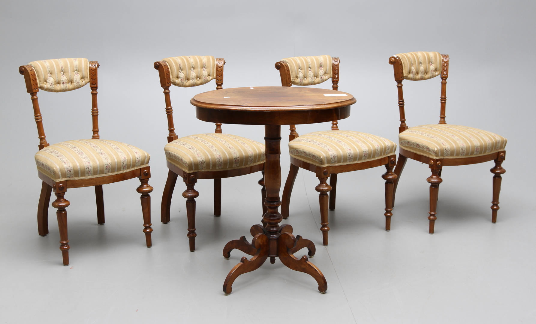 43648. STOLE, 4 stk, og bord, 1800-tallet.