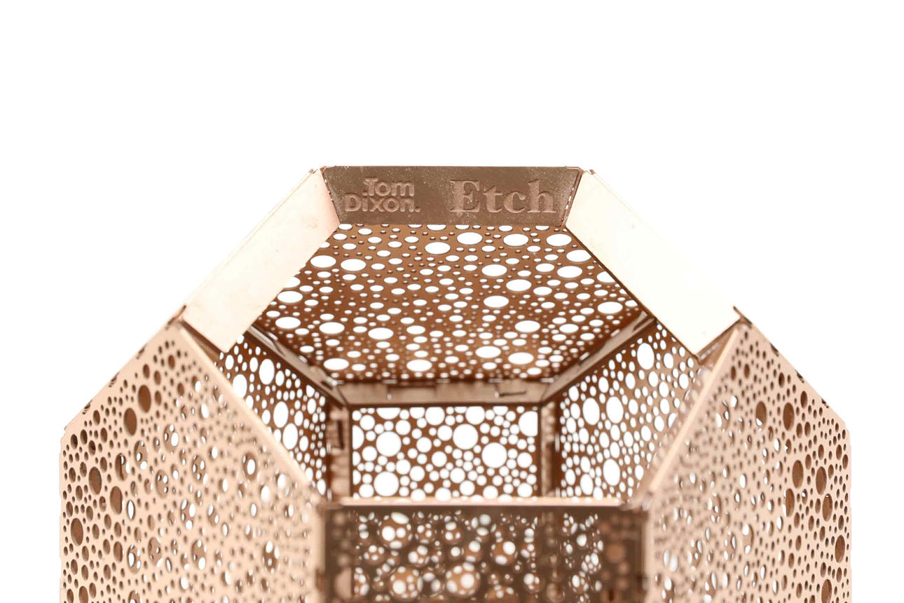 4365422. TOM DIXON. lys lanterne, „Etch“, perforeret metal, moderne.