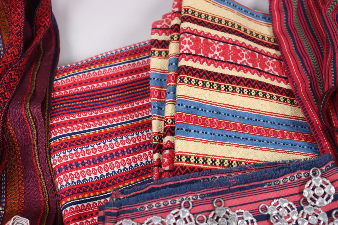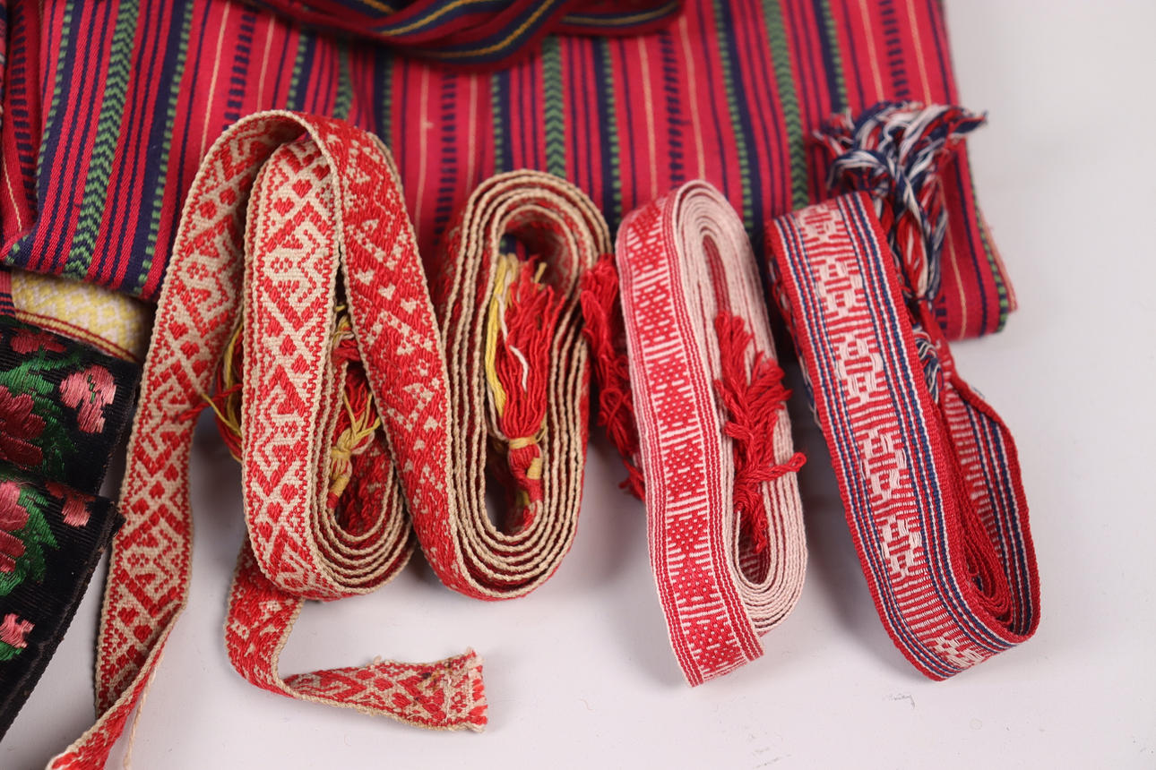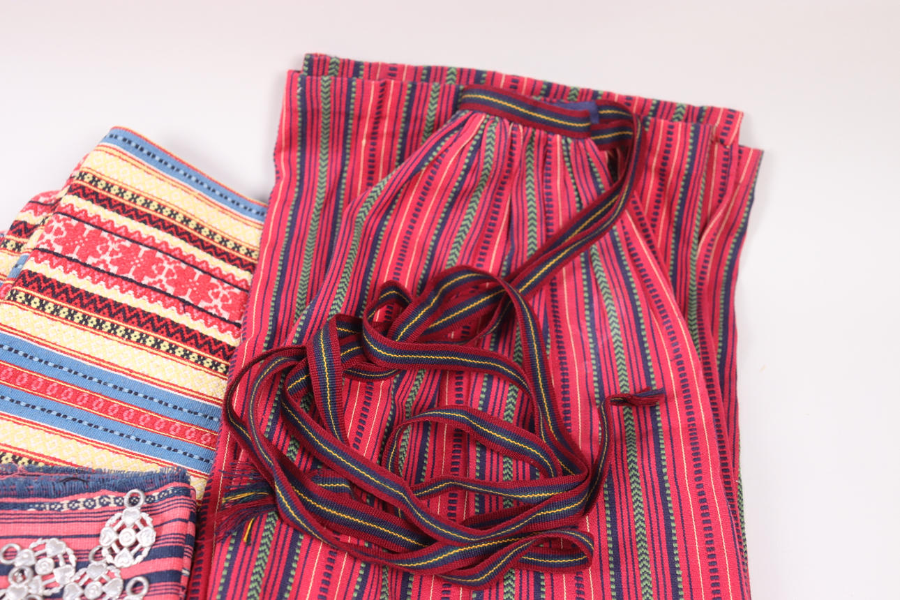 4365768. FORKLÆDER, tekstiler, bånd m.m. til folkedragter.