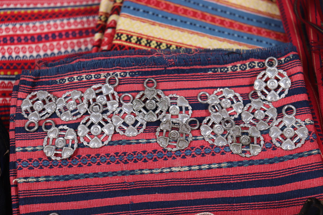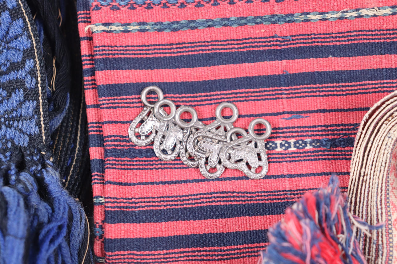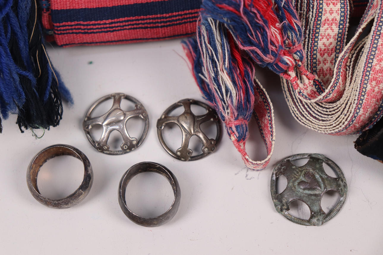 4365768. FORKLÆDER, tekstiler, bånd m.m. til folkedragter.