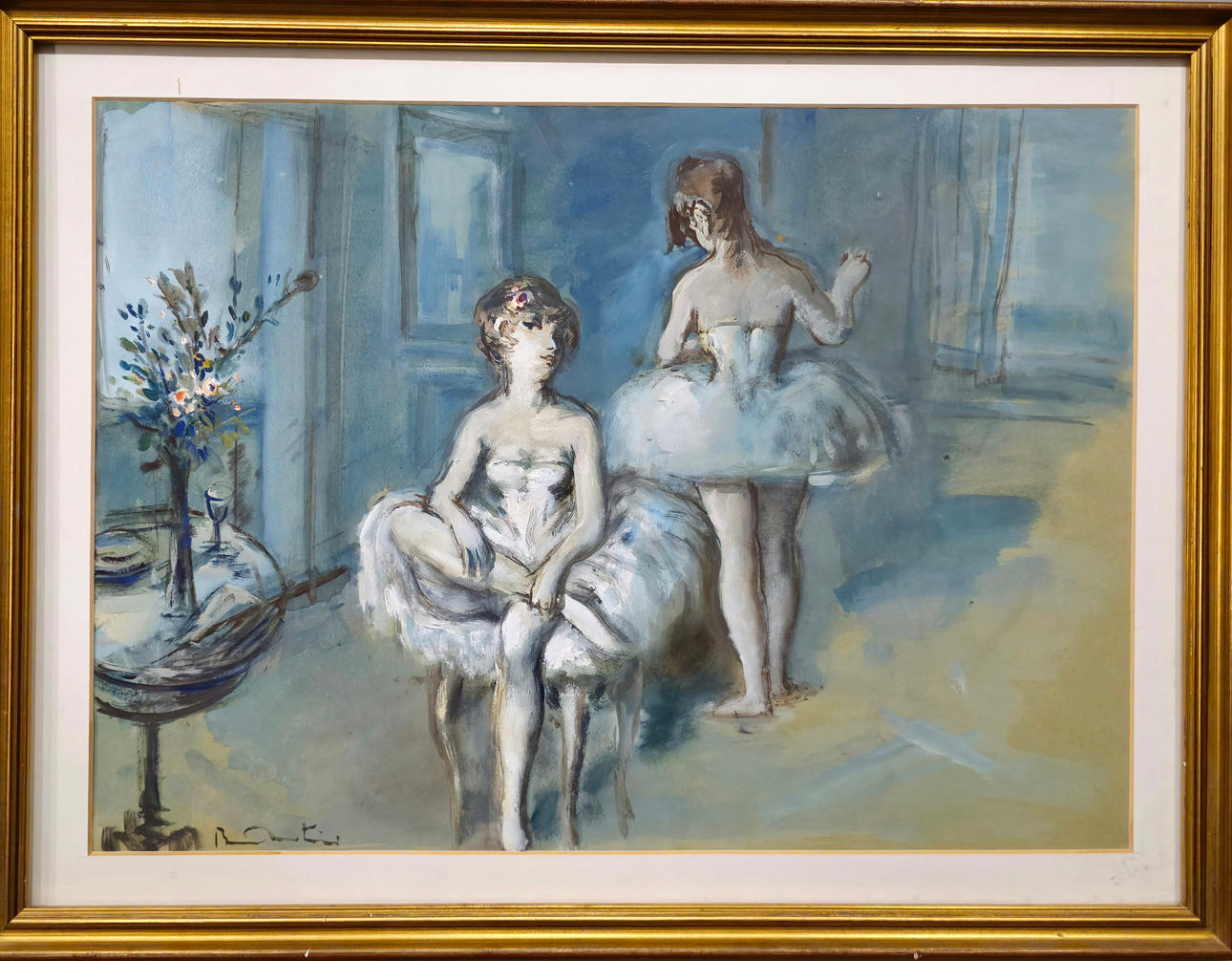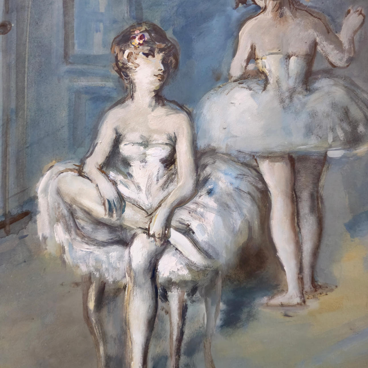 4365825. BALLETDANSERE. OLIE PÅ PAPIR. ULÆSELIG UNDERSKRIFT.
