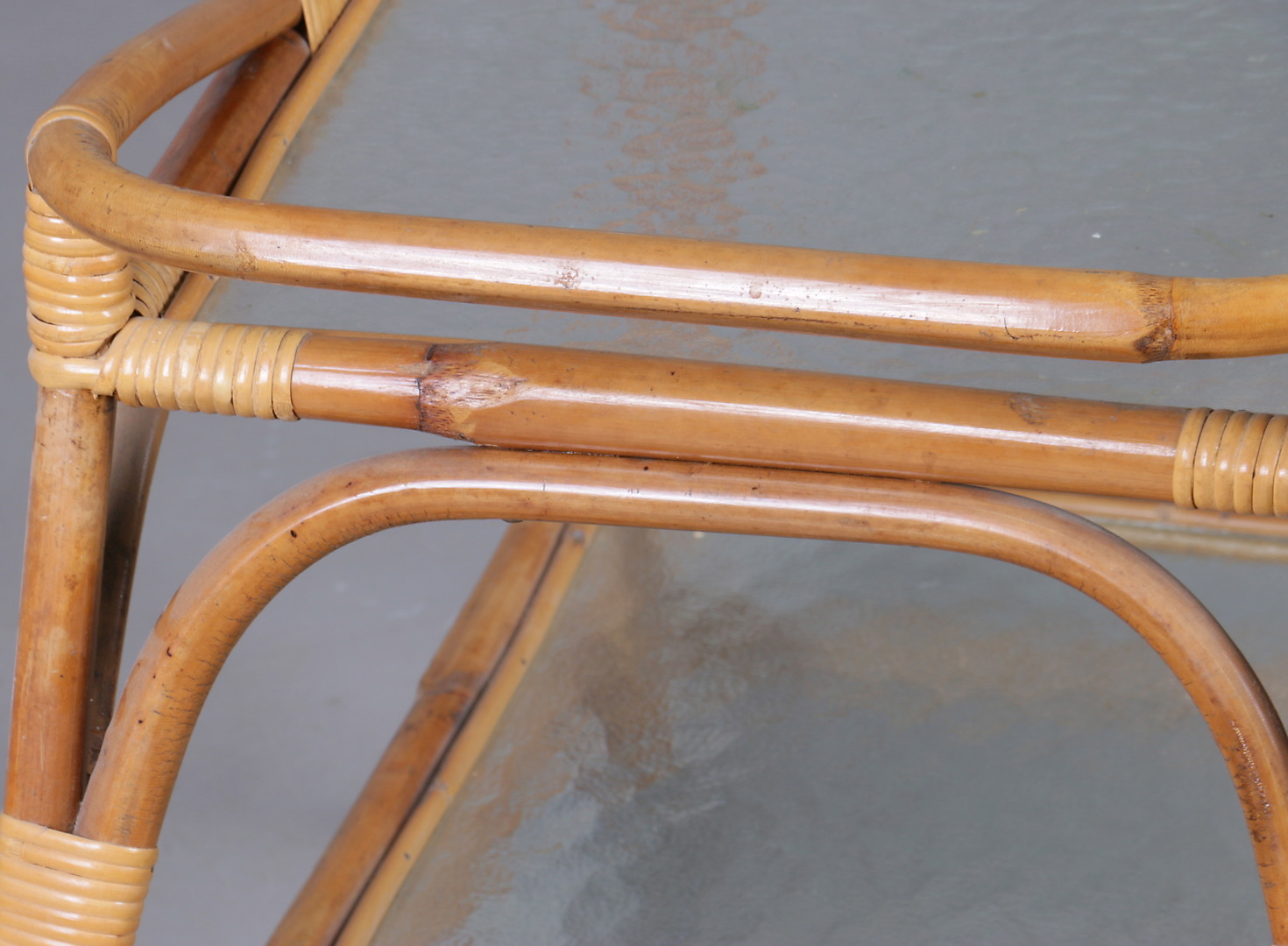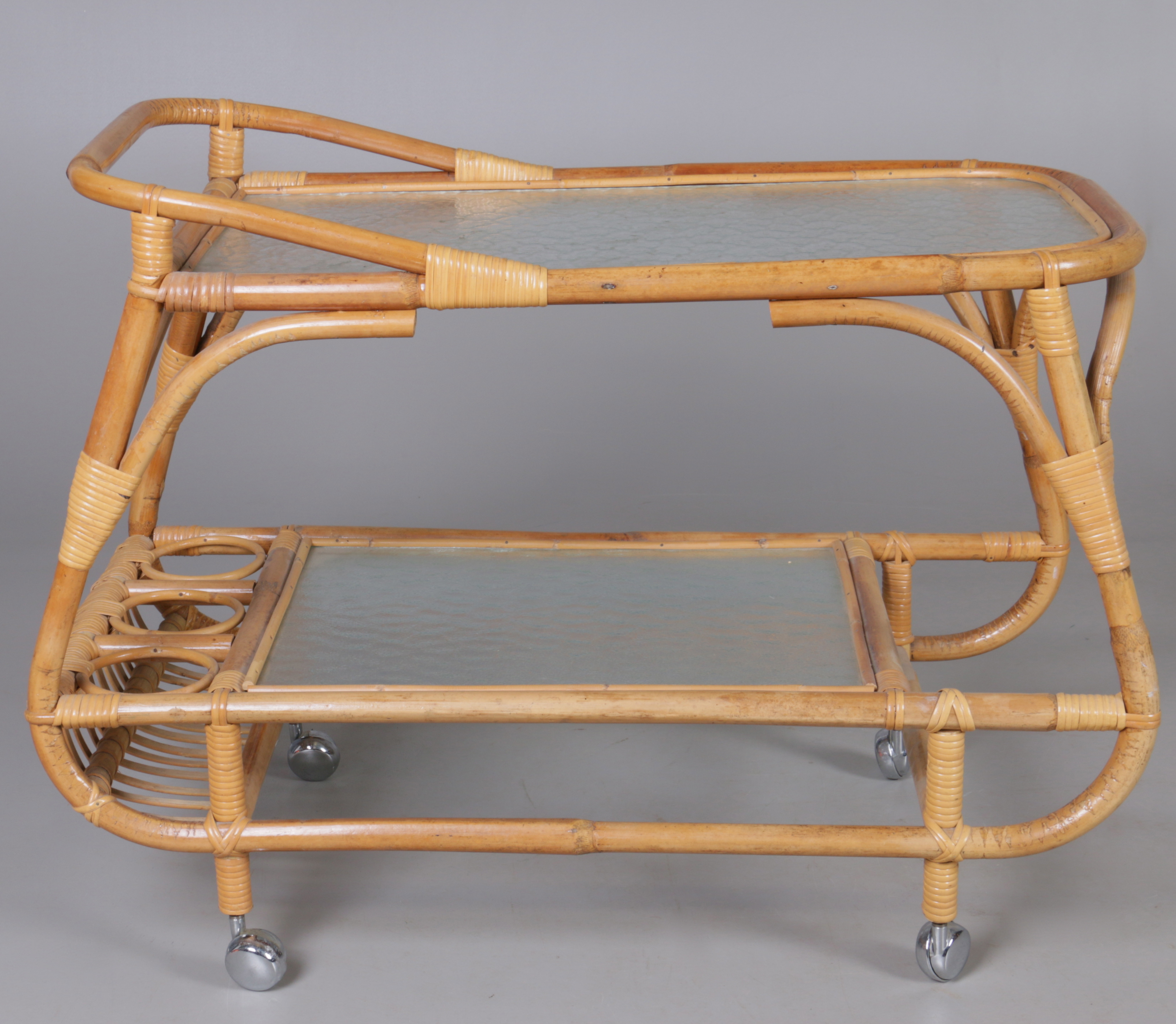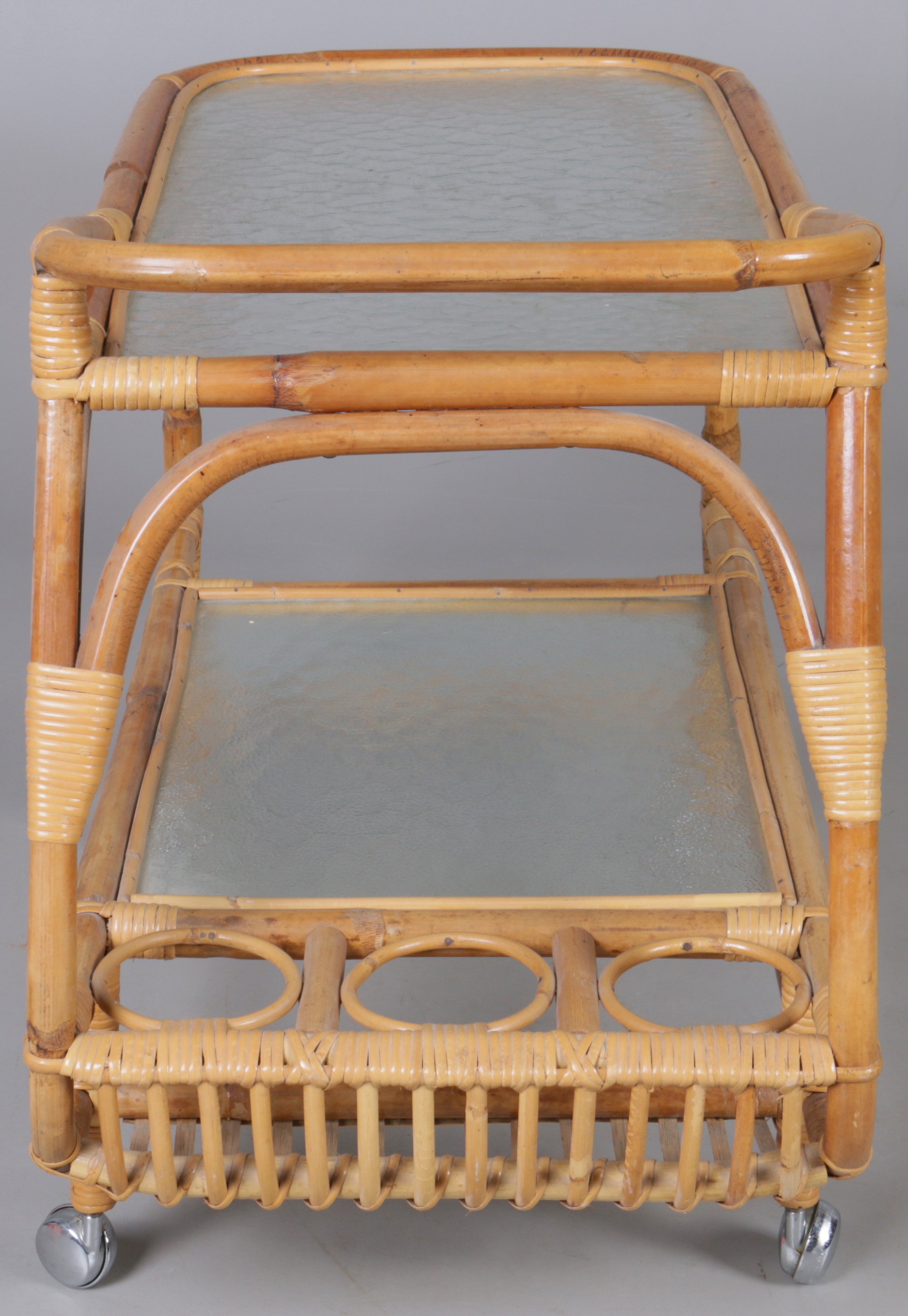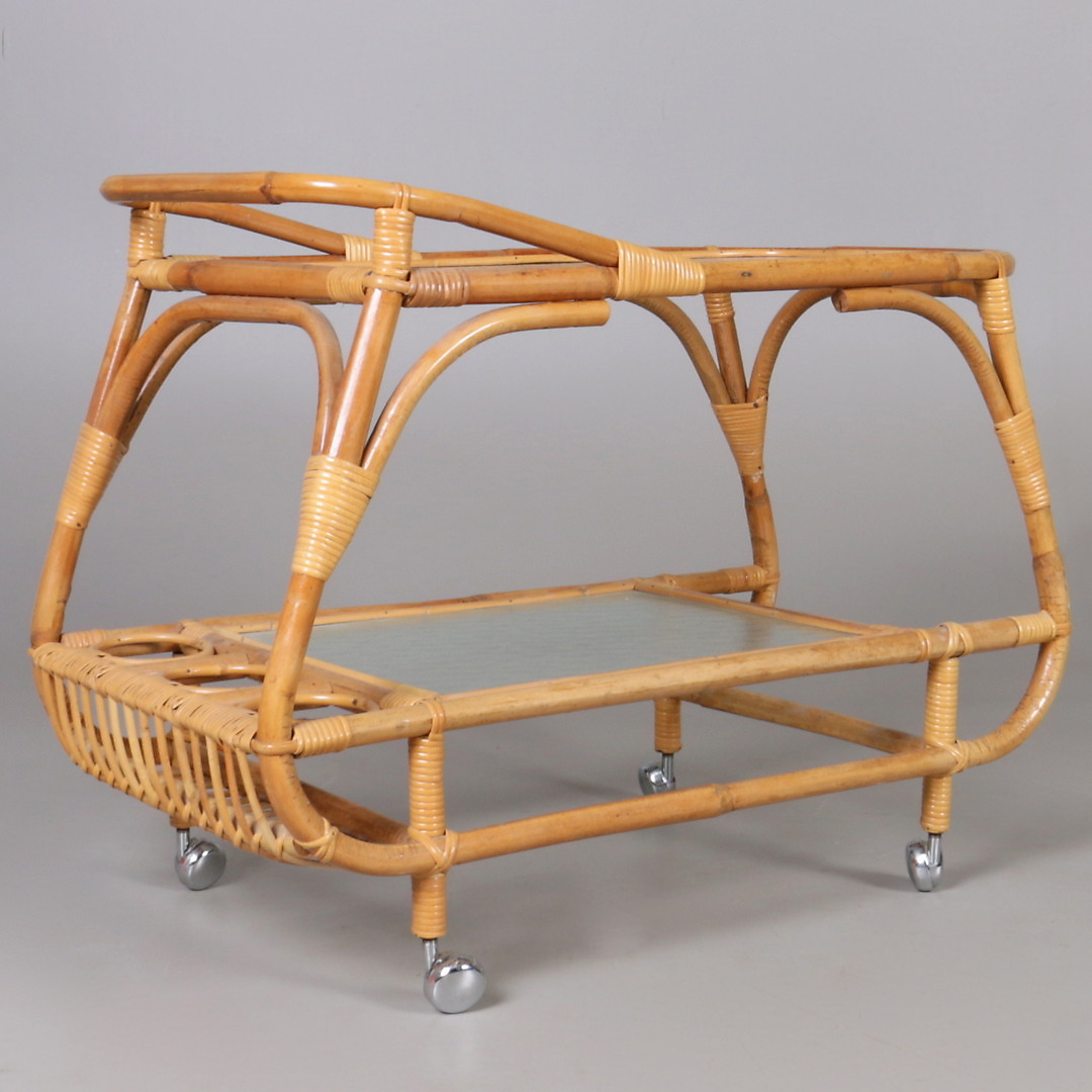 436626. SERVINGSVOGN, rattan og glas, 20. århundrede.