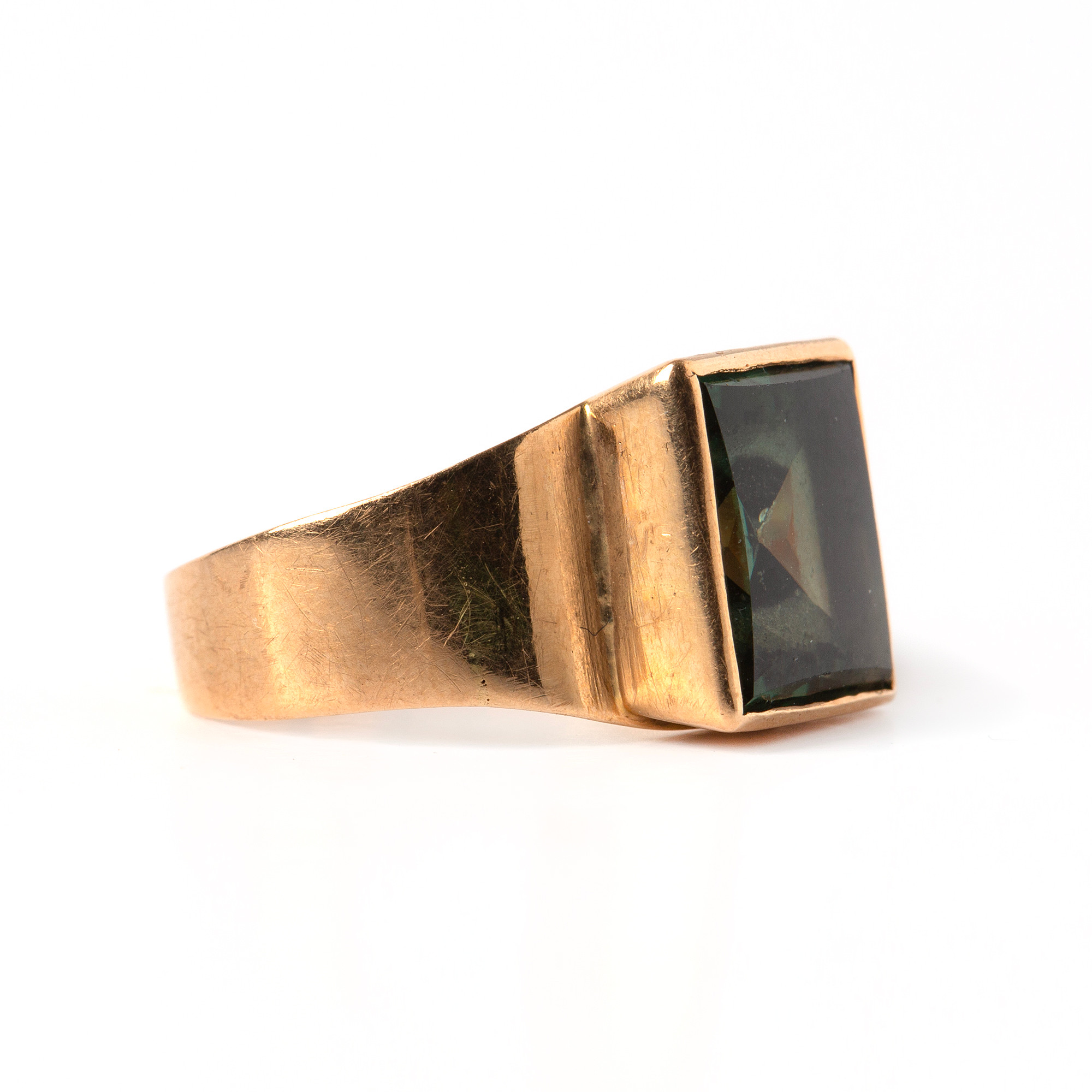 4366264. RING, 18K guld med syntetisk grøn spinel.