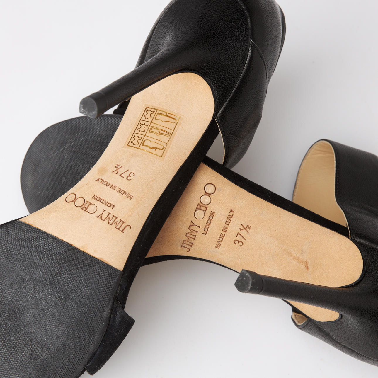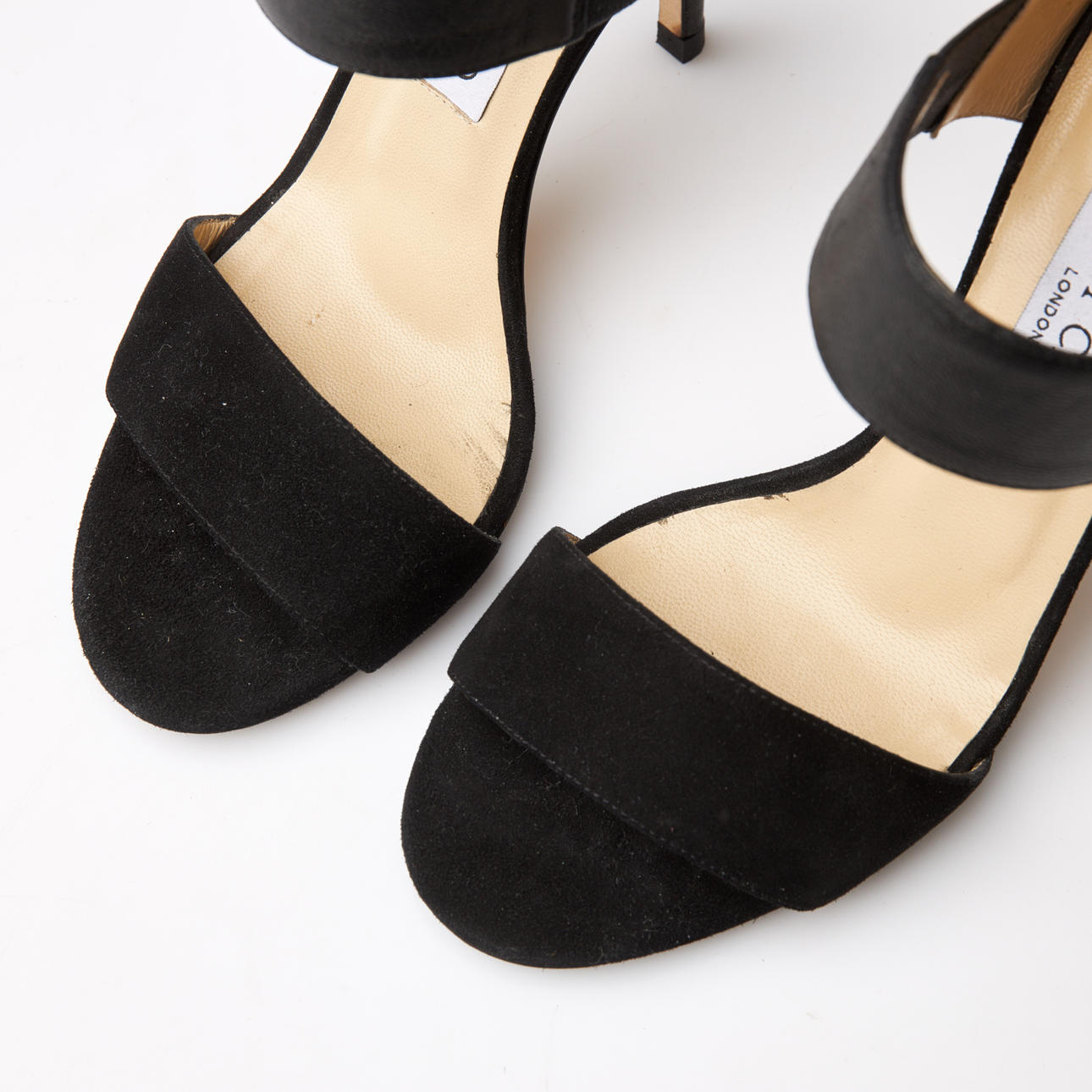 4366676. JIMMY CHOO, Sandaler, sort ruskind og læder.