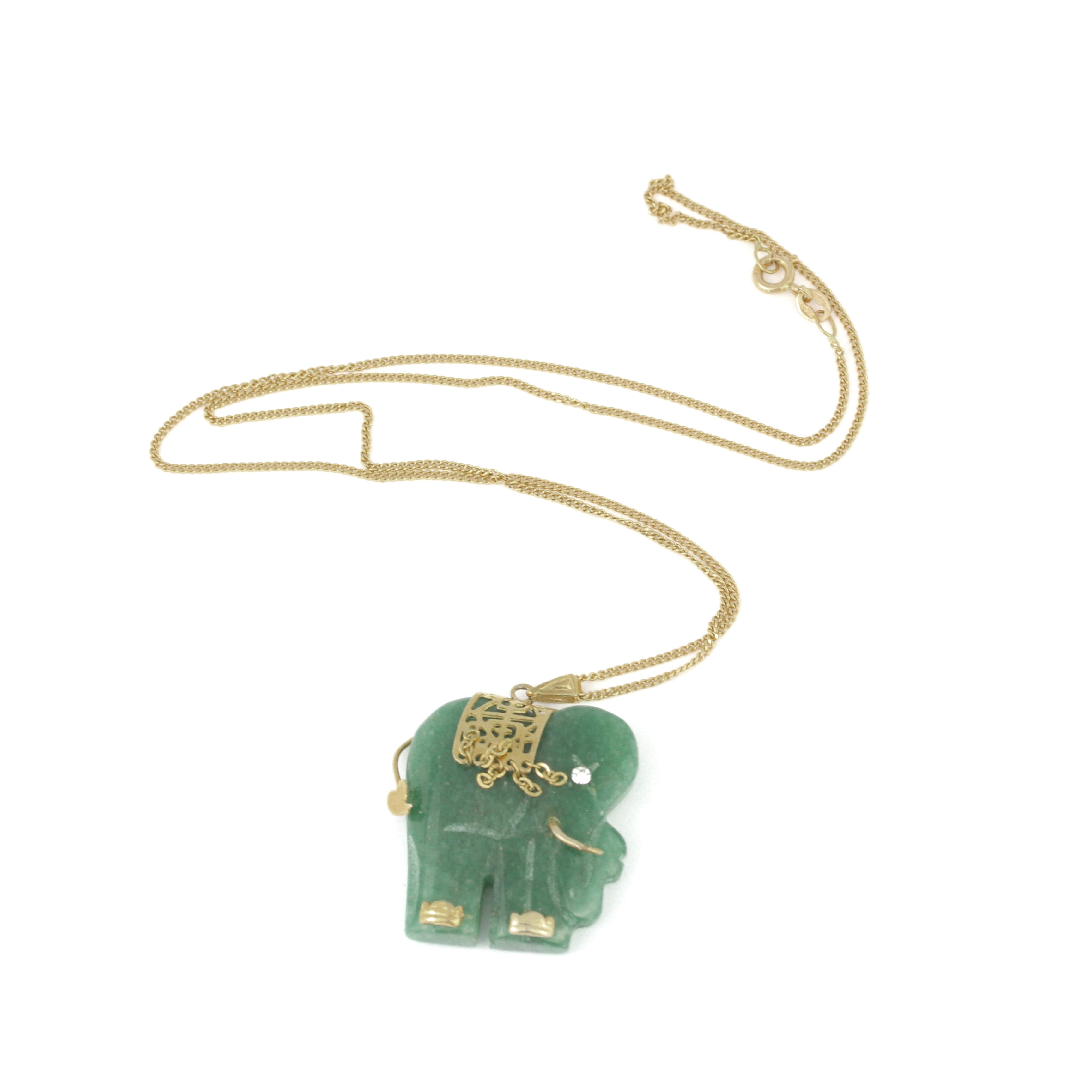 4366992. GULD OG JADE ELEFANT HALSKÆDE.