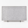 Gråt tekstil, dybsyet polstring, ben i sortlakeret metal, mål ca. 133 x 210 cm.