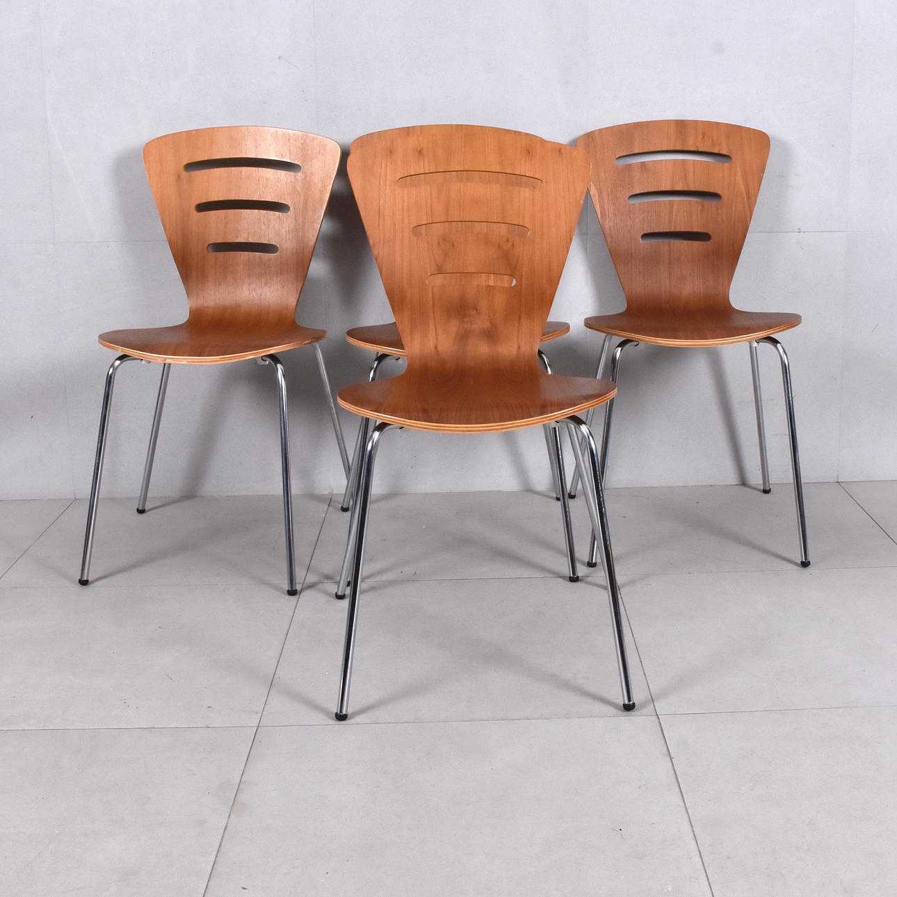 Et sæt af fire moderne „Simone stol“ stole.