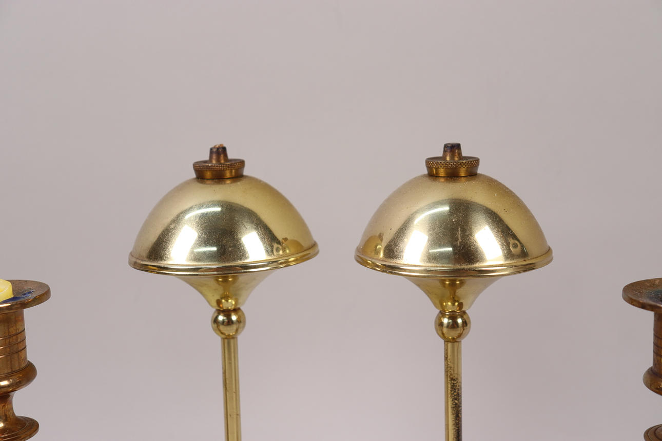 4369330. Messinglysestager og Hejl, Danmark olielamper, i alt 6 stk.