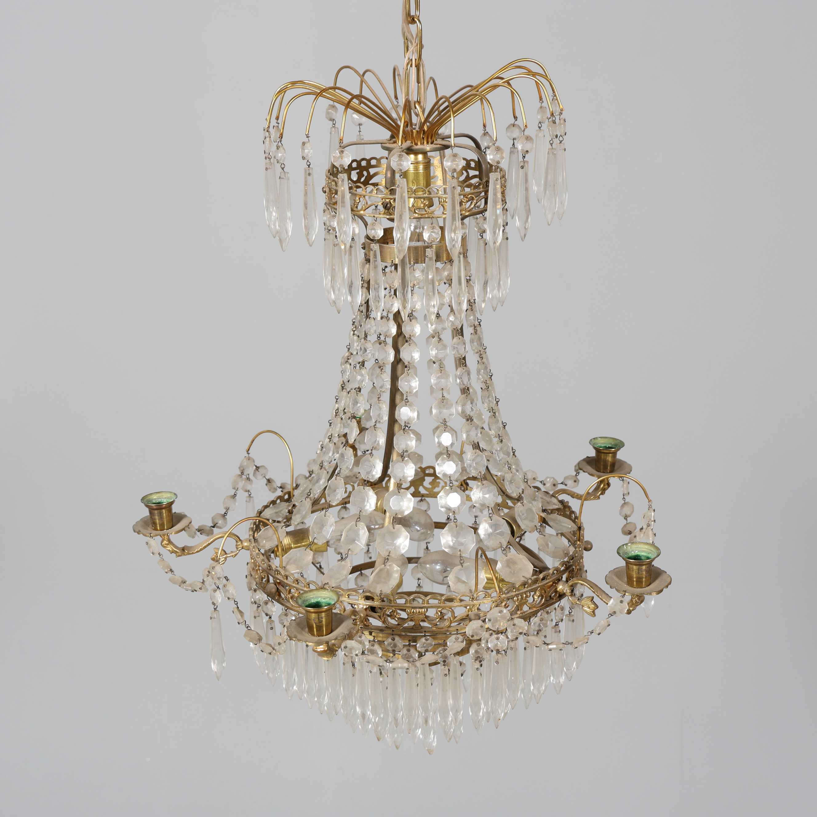 4369636. En lysekrone i empirestil, elektrificeret.