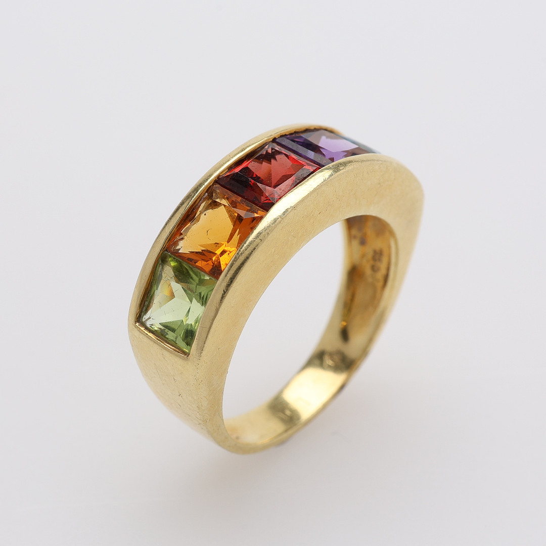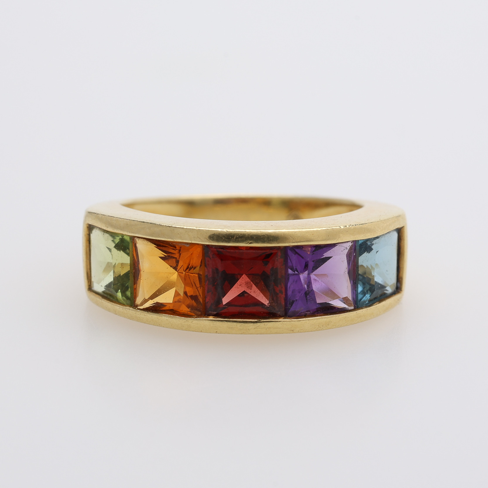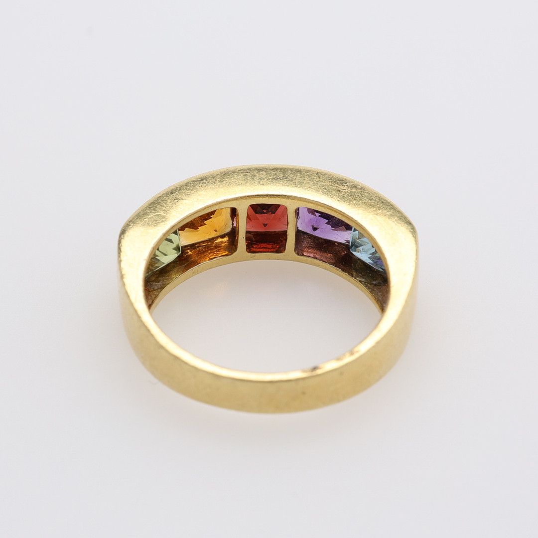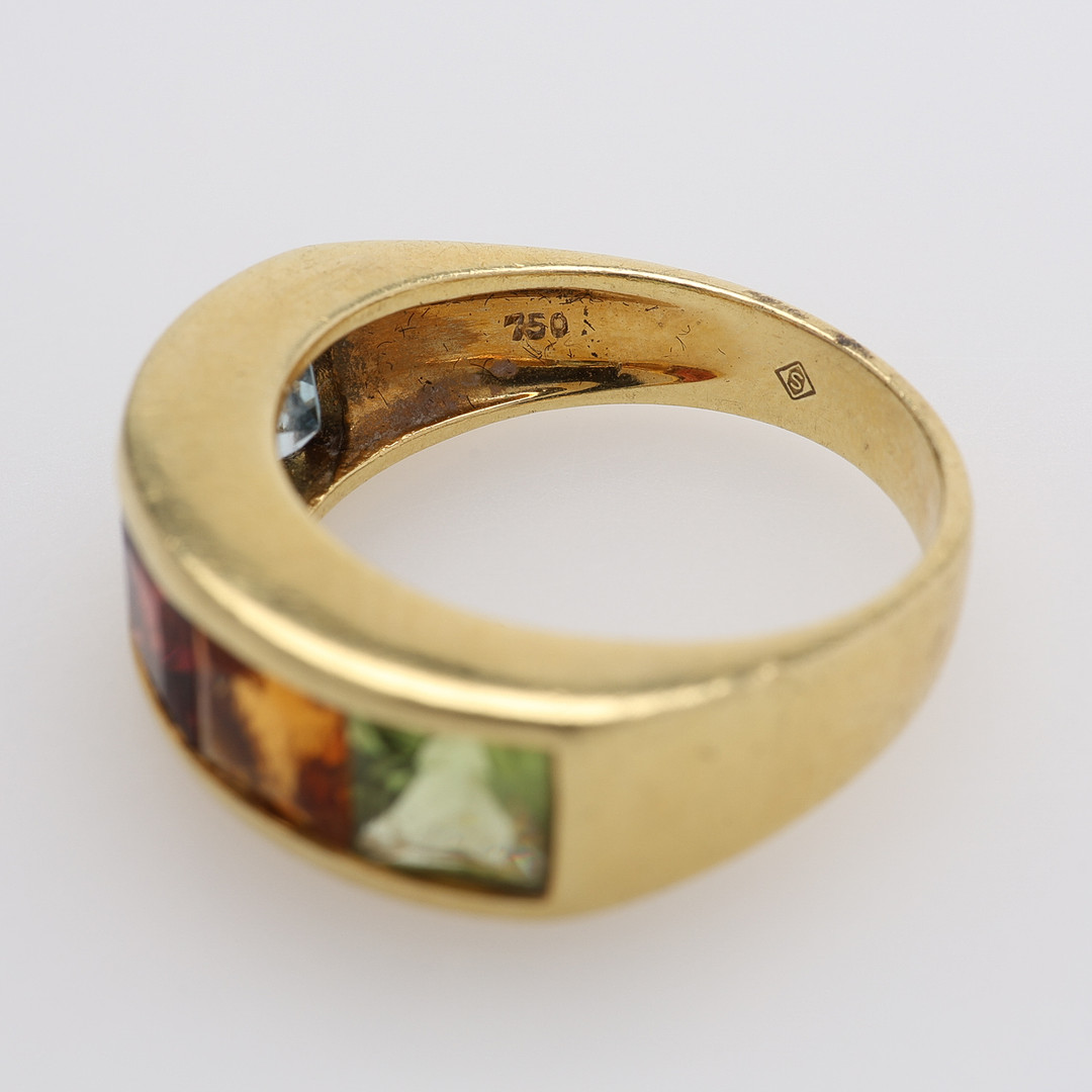 4370967. RING, 18K GULD & FLERFARVEDE ÆDELSTEN, Ca. 6,7 g.