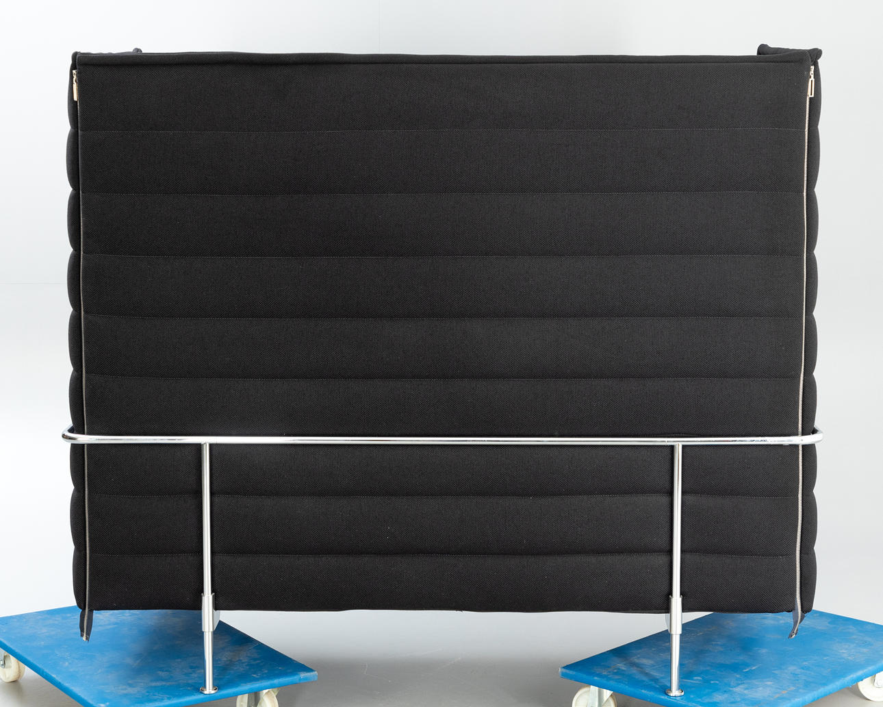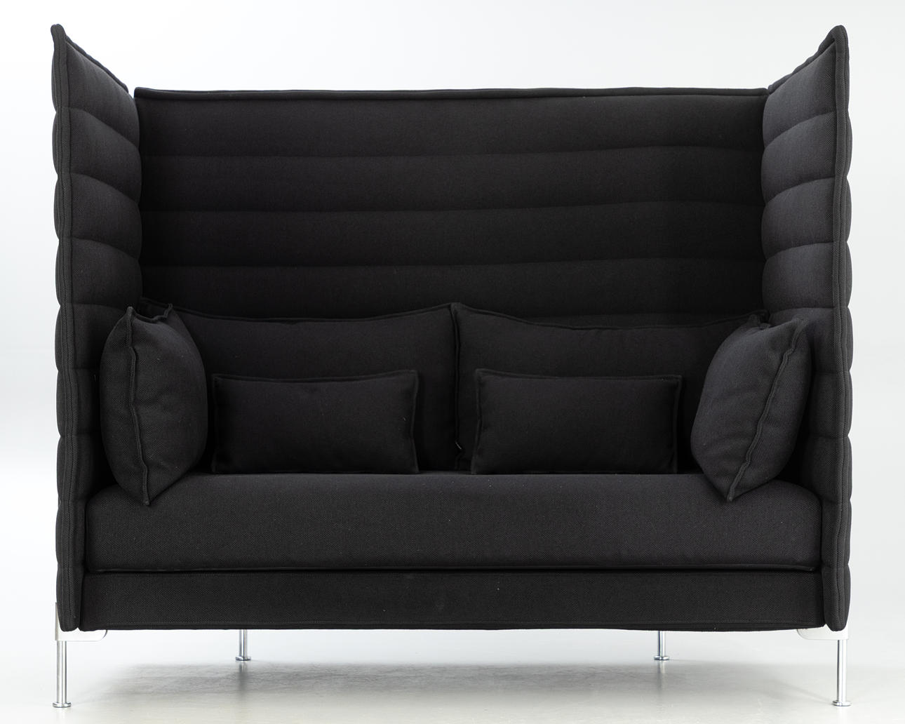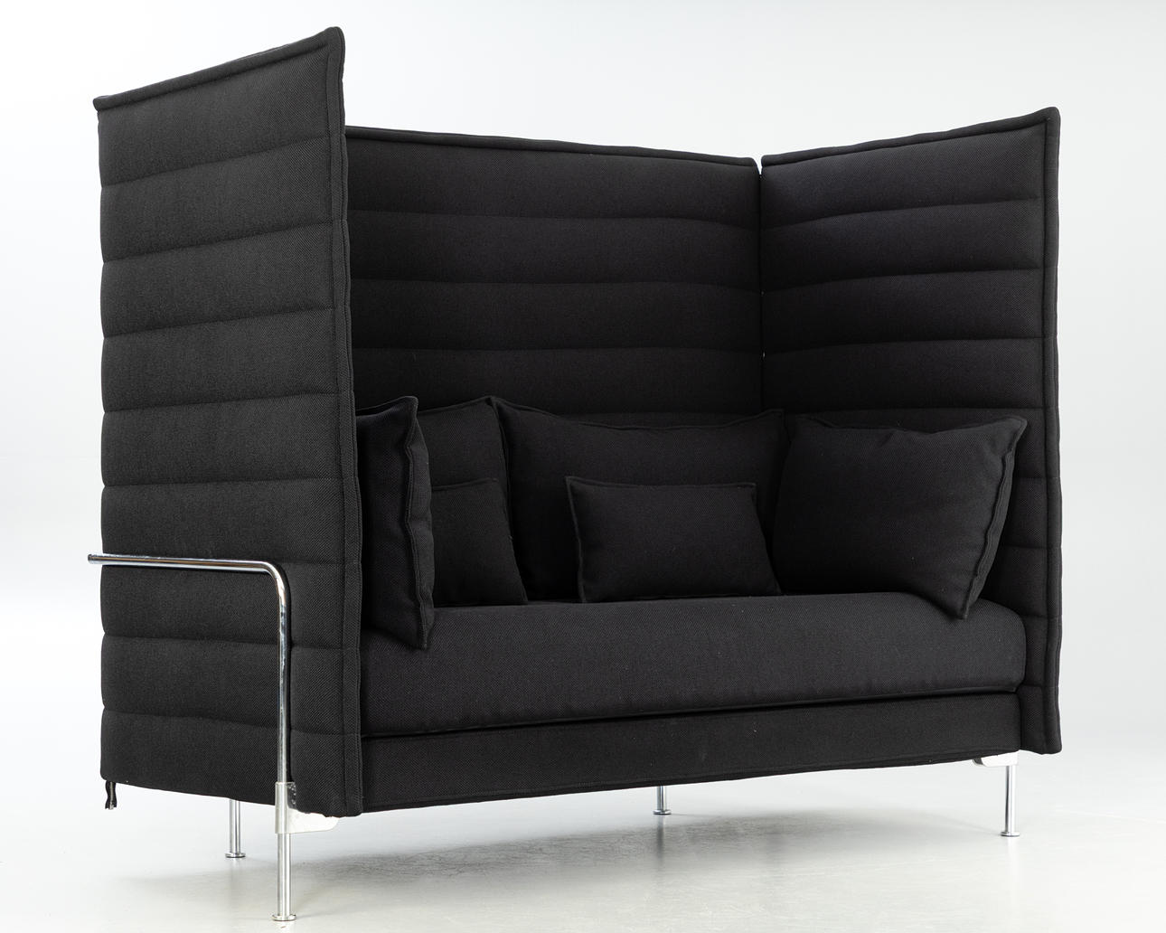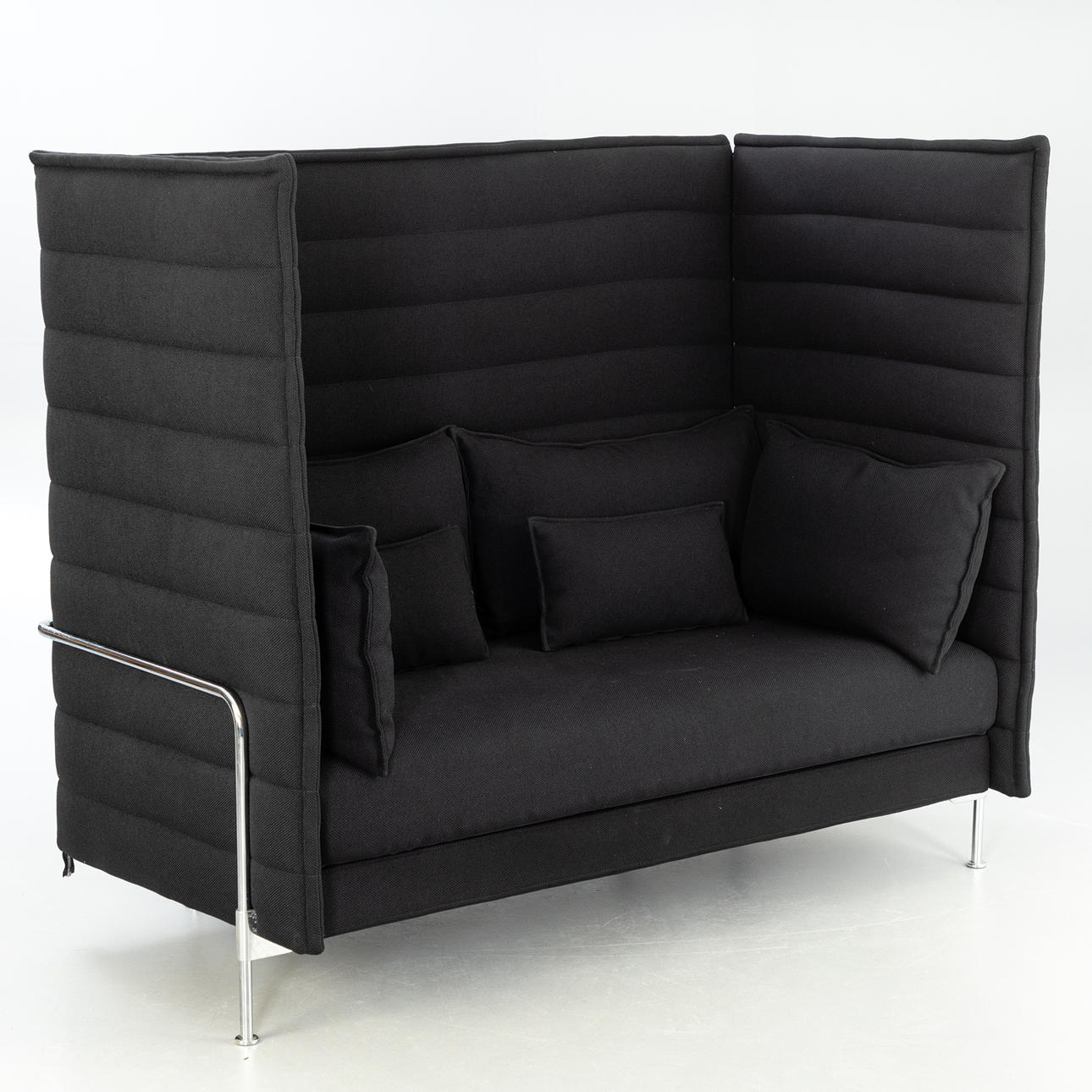 Sofa 'Alcove' af Ronan & Erwan Bouroullec til Vitra. Udkast: 2006 Højglans stålrørrammekonstruktion, høje side- og bagpaneler forbundet med lynlåse og løse polstrede puder, sort polstring.