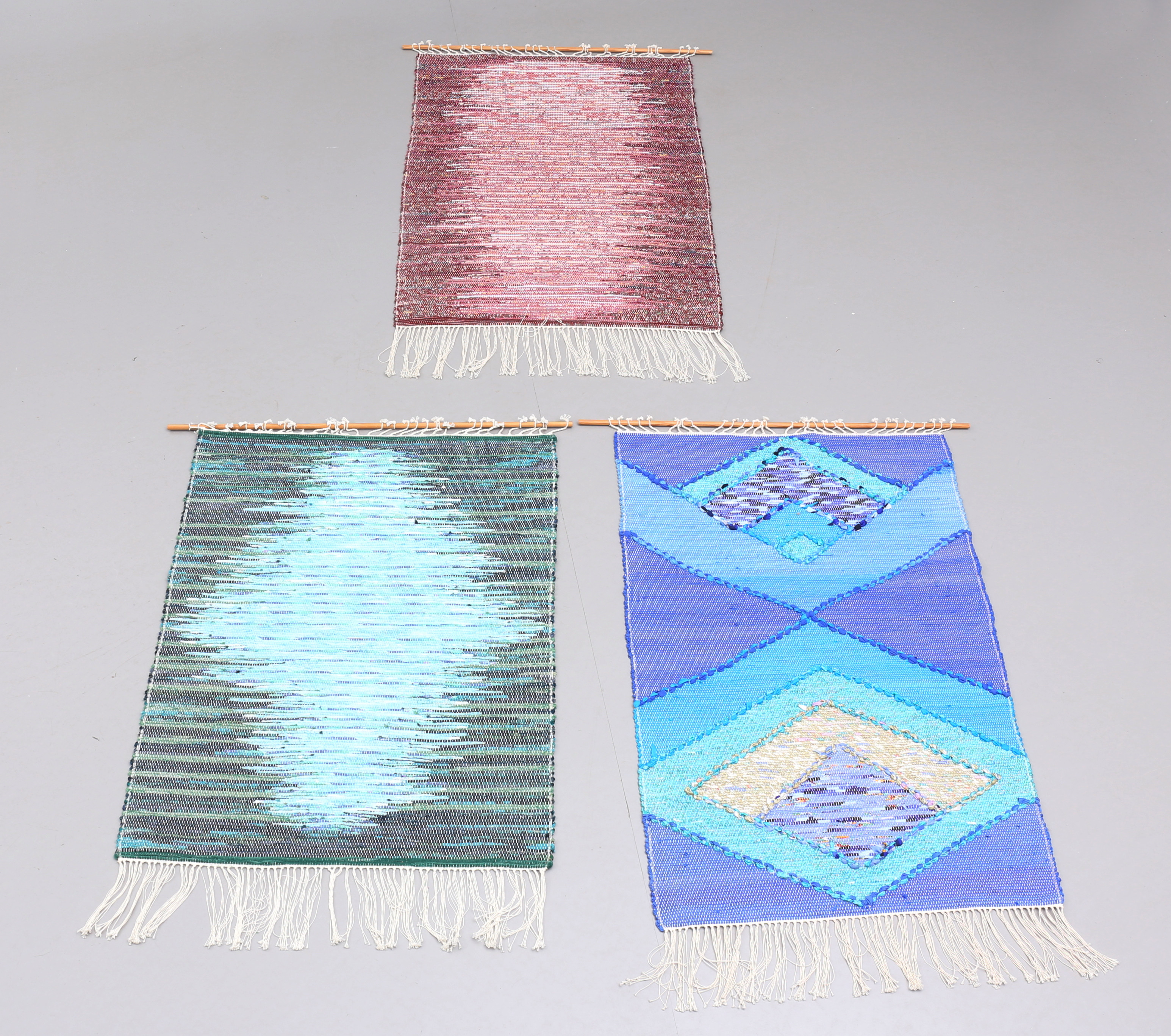 4372112. Vægbeklædning, 3 stk., kludtæpper.