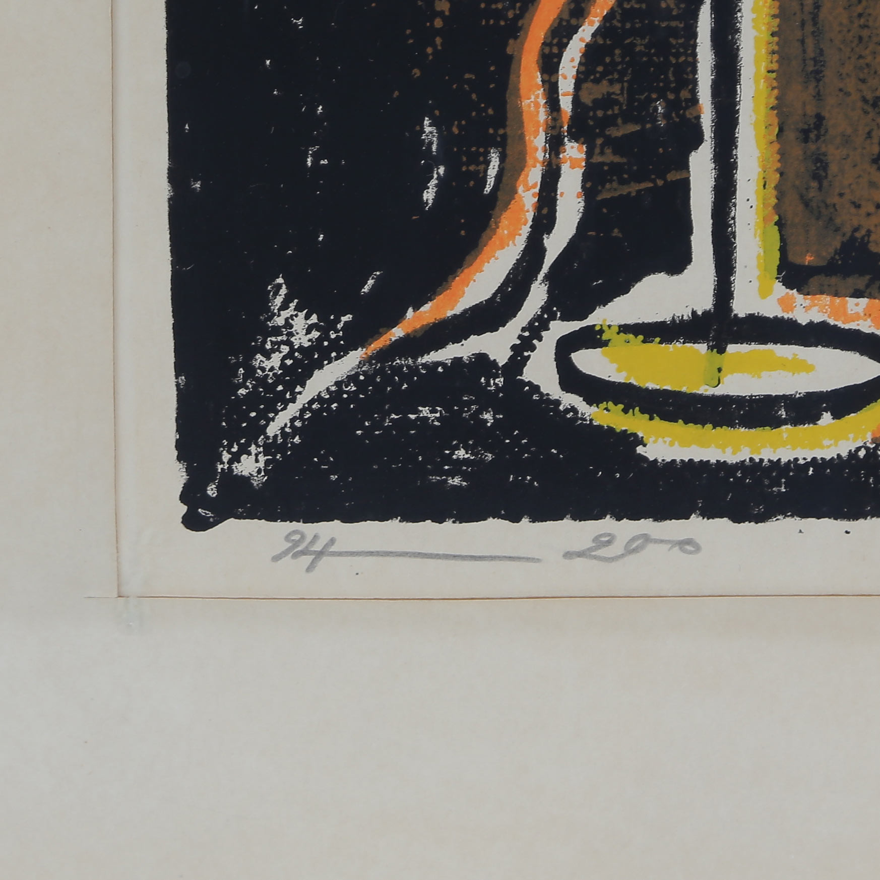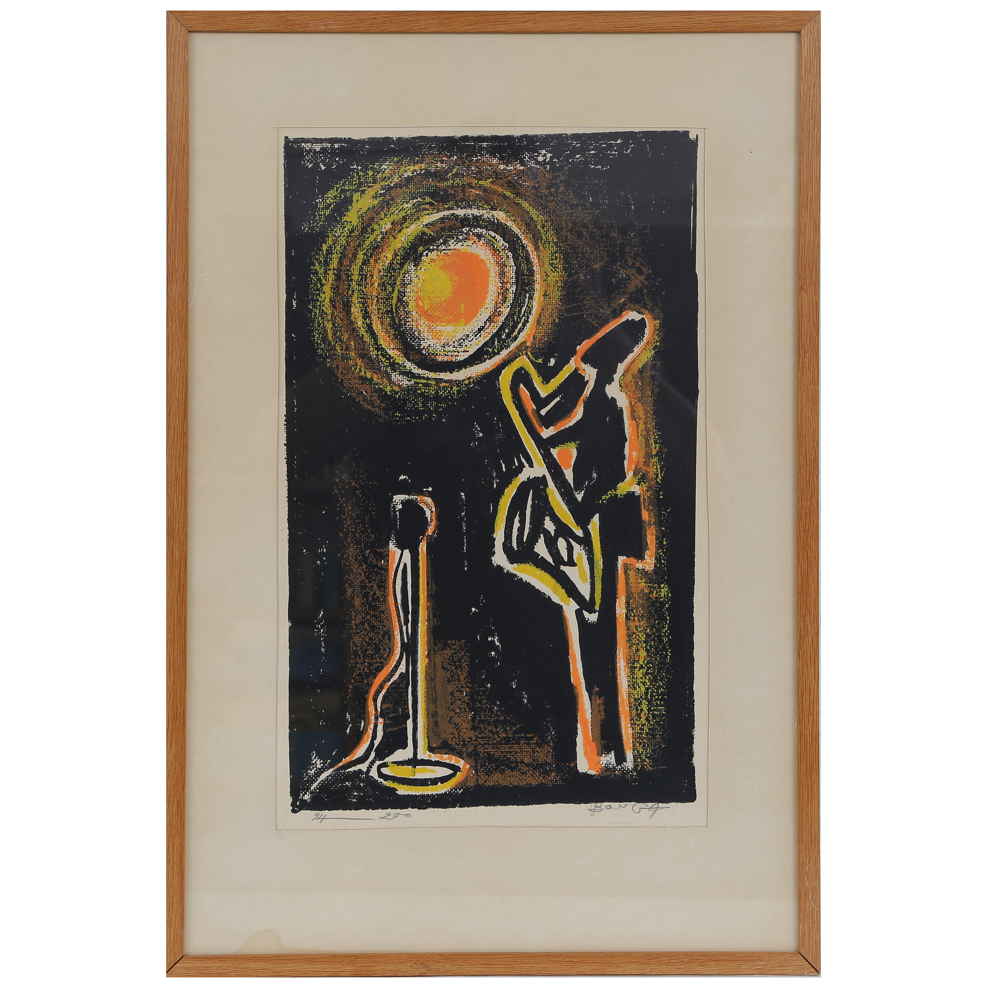 4372199. UIDENTIFICERET KUNSTNER „SAXOFON“ LITOGRAFI, SIGNERET.