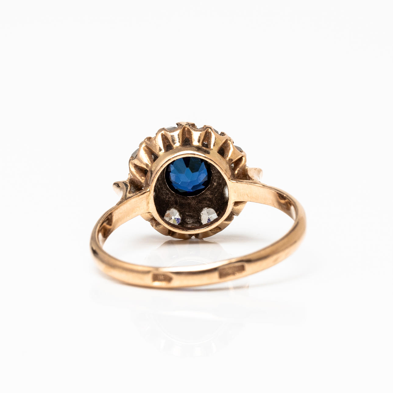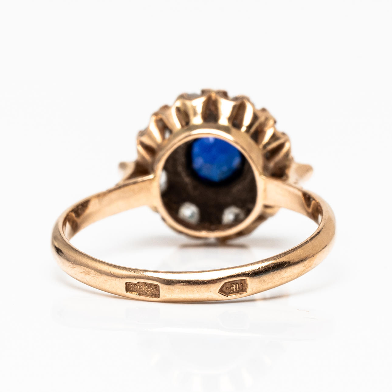 4372264. CARMOSÉ RING, guld, 14k med blå og hvide sten, sovjetisk stempel.