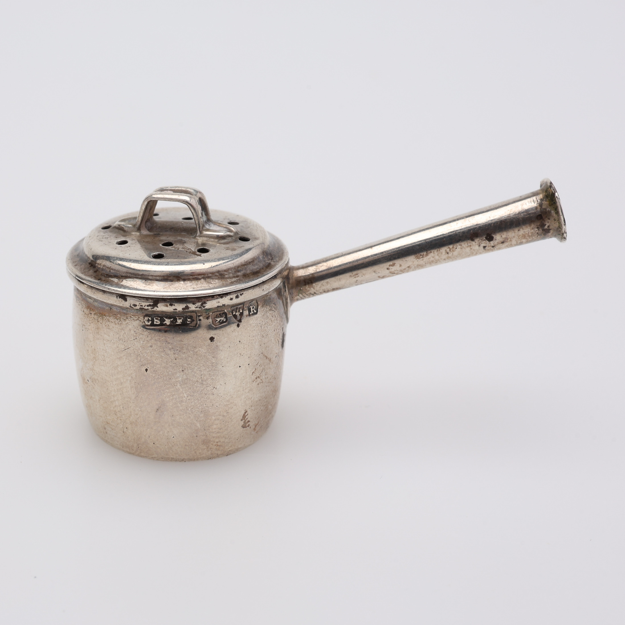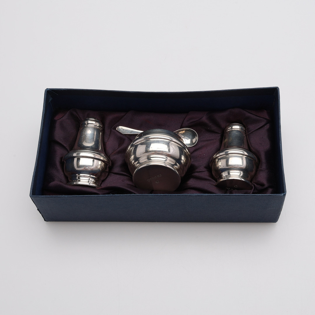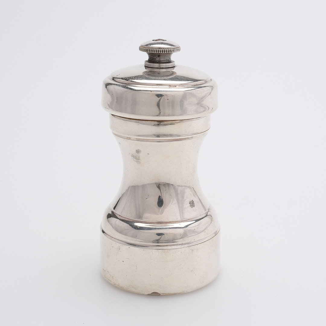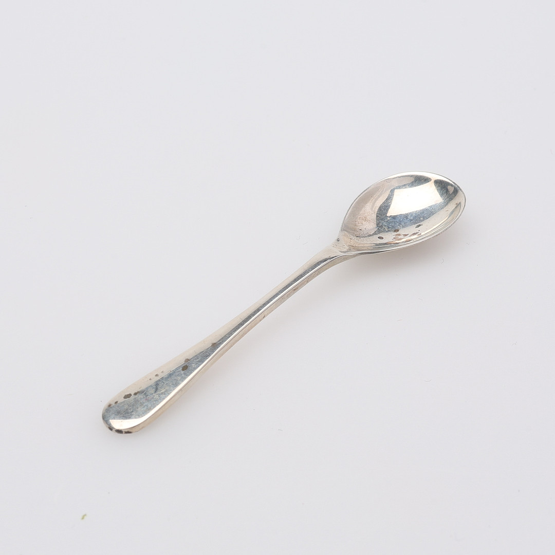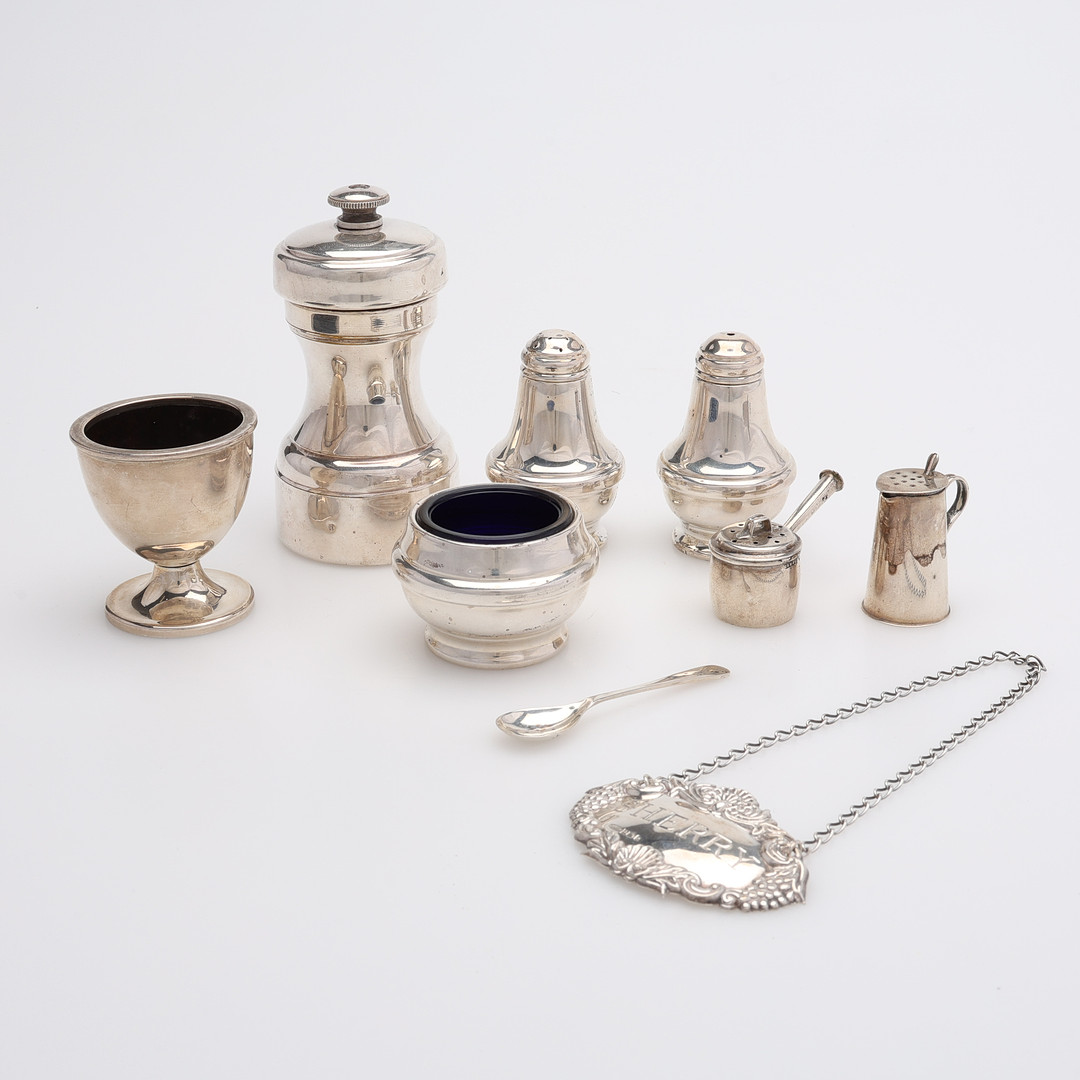 4372454. KØKKENRELATEREDE SØLVGENSTANDE, 9 STYKKER, SAMLET VÆGT Ca. 282 g.