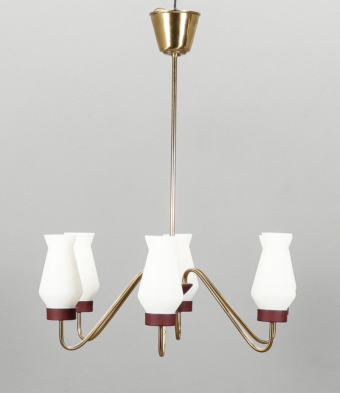 LOFTSLAMPE, 6 lysarme, midten af 1900-tallet.