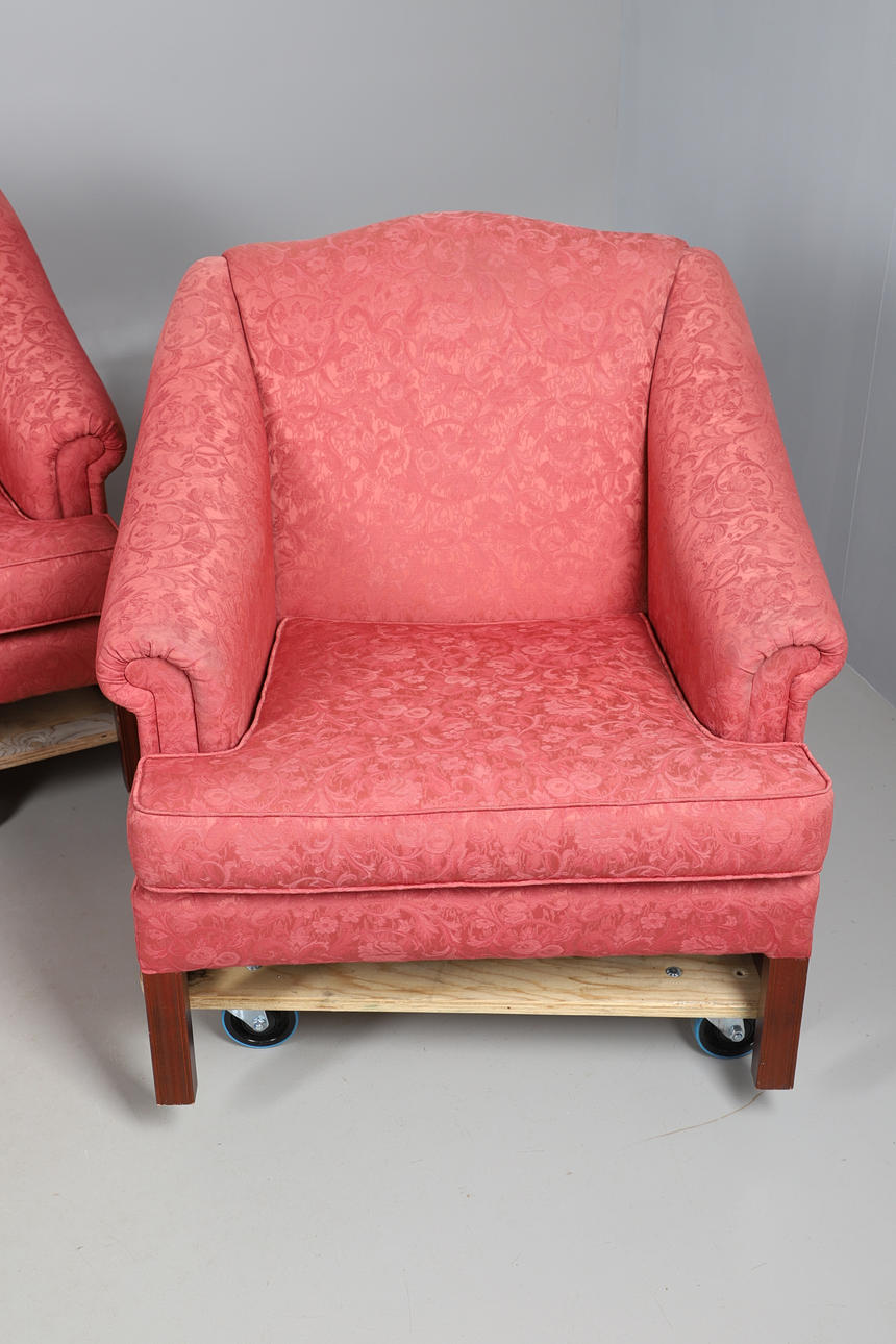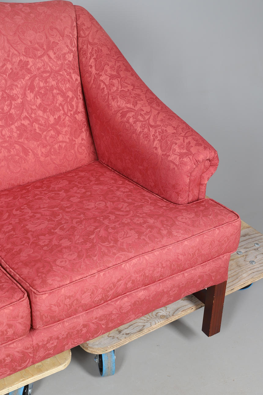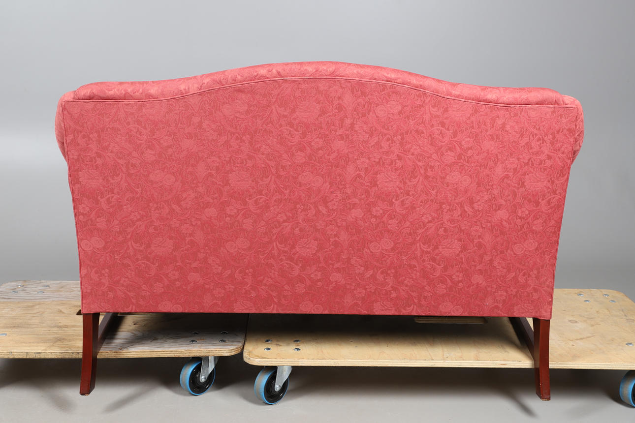 To-personers sofa måler Højde 86cm x Bredde 135cm x Dybde 80cm, Sædehøjde 43cm, sammen med to andre lænestole af forskellig form. (3).