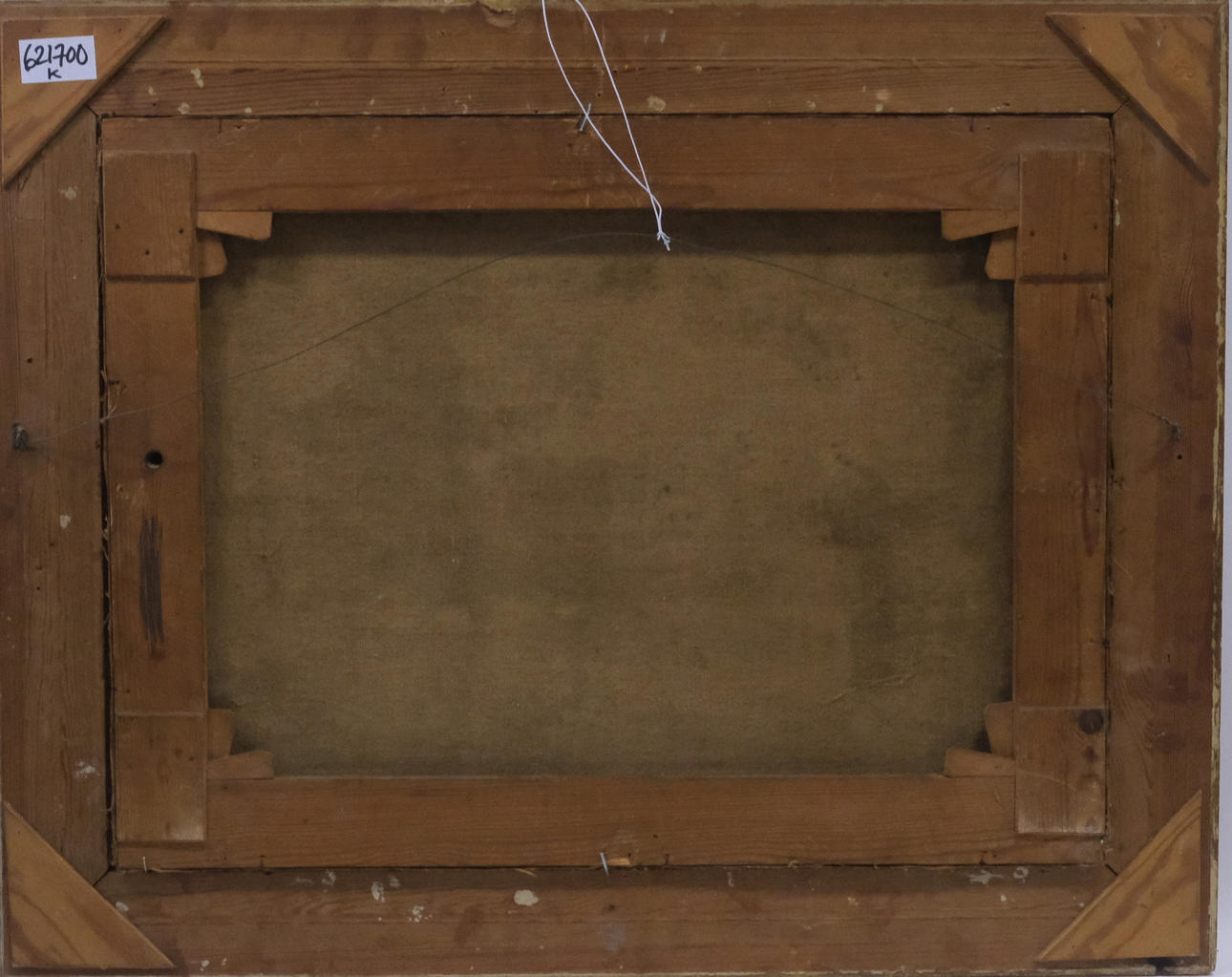 Foret på lærred, snavset og dårligt vasket, ramme med pastellagskader.
