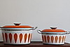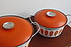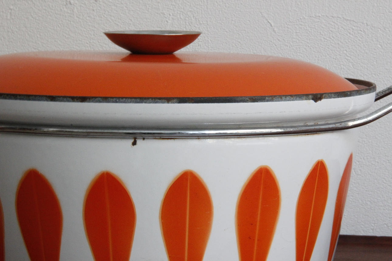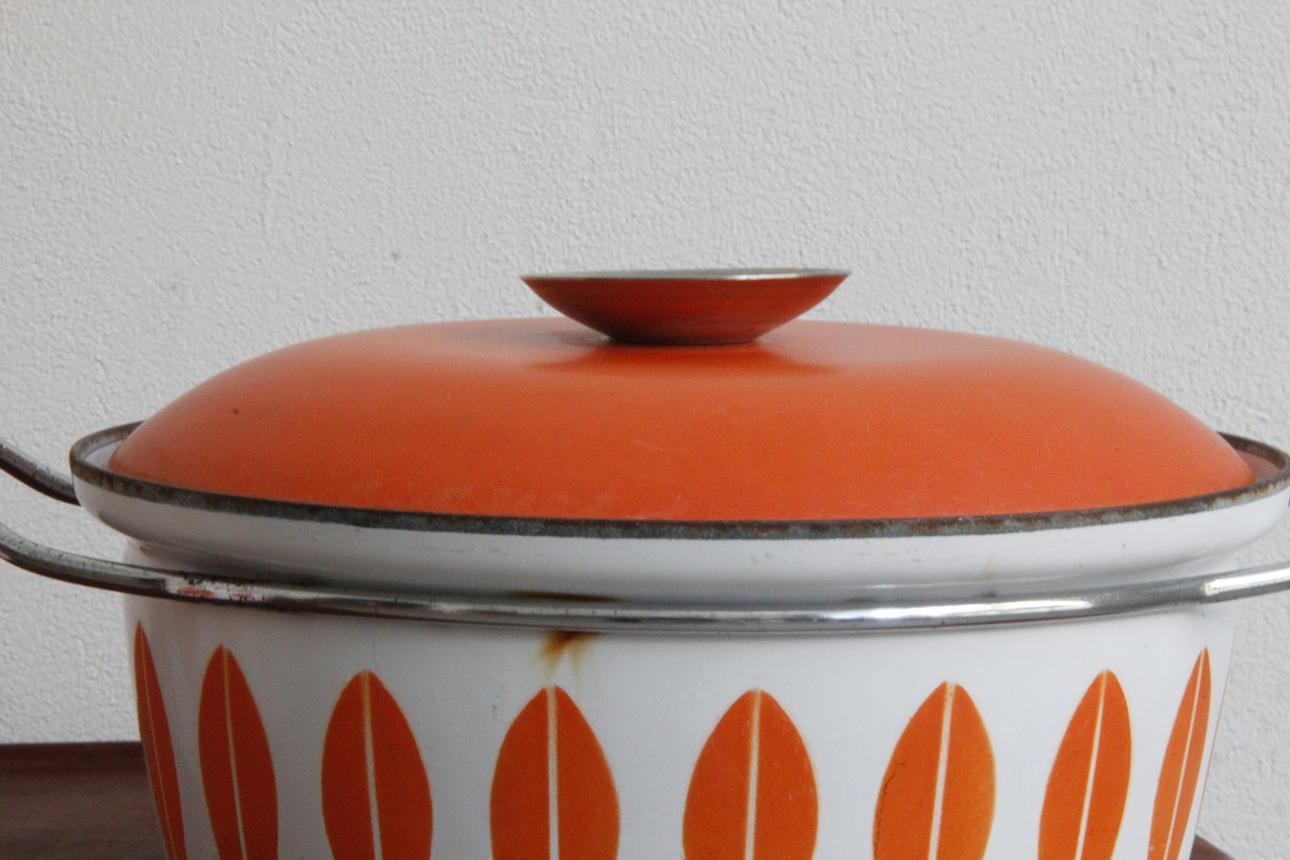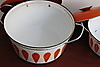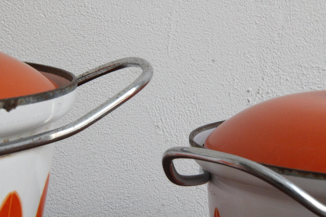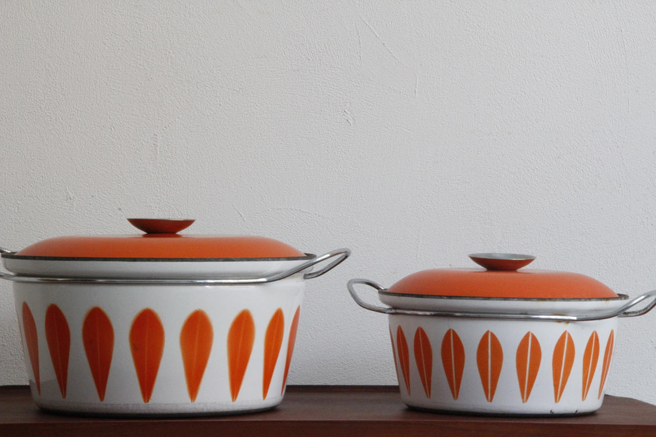 Klassiske emaljepotter fra Cathrineholm Størrelse Ø: 22 og 27 cm.
