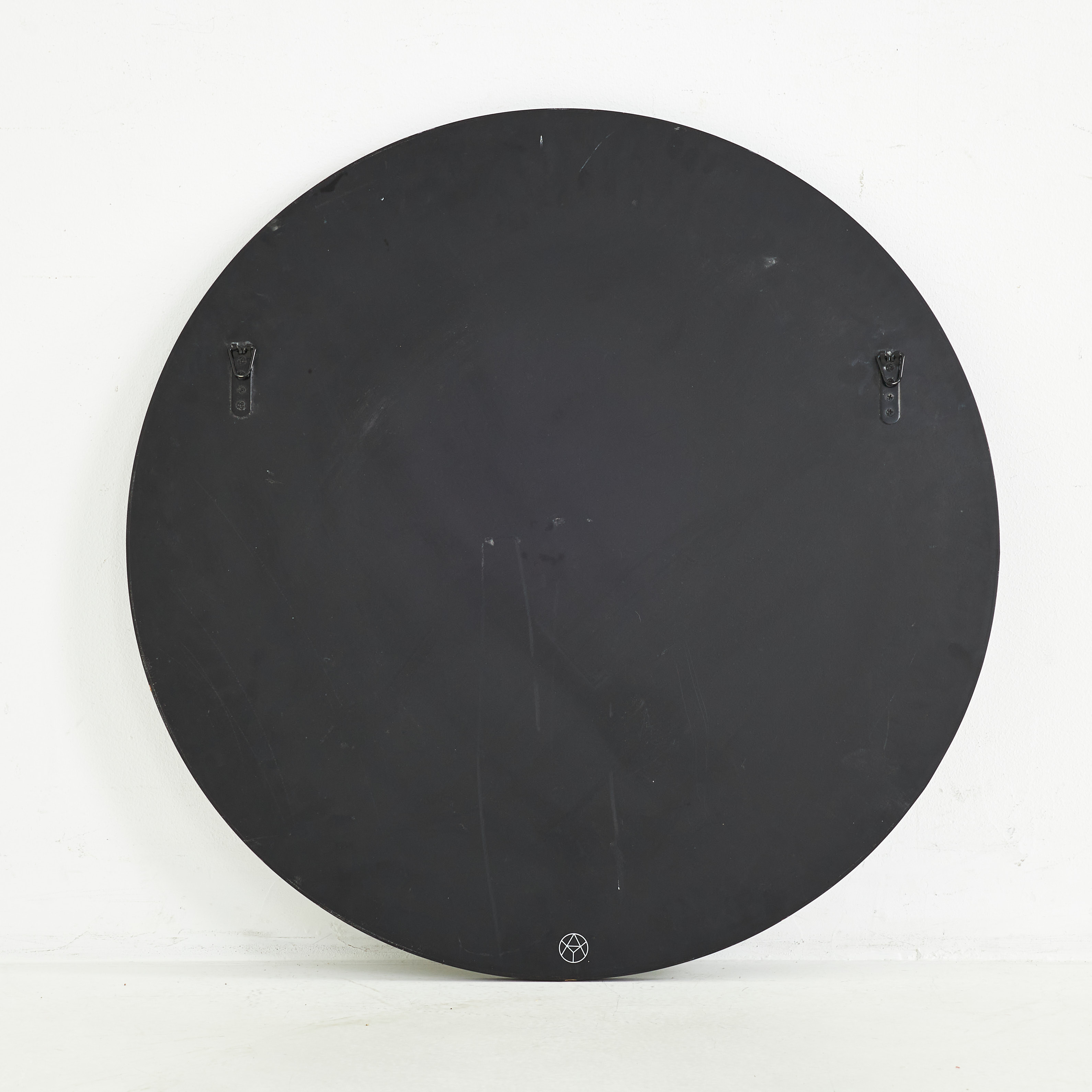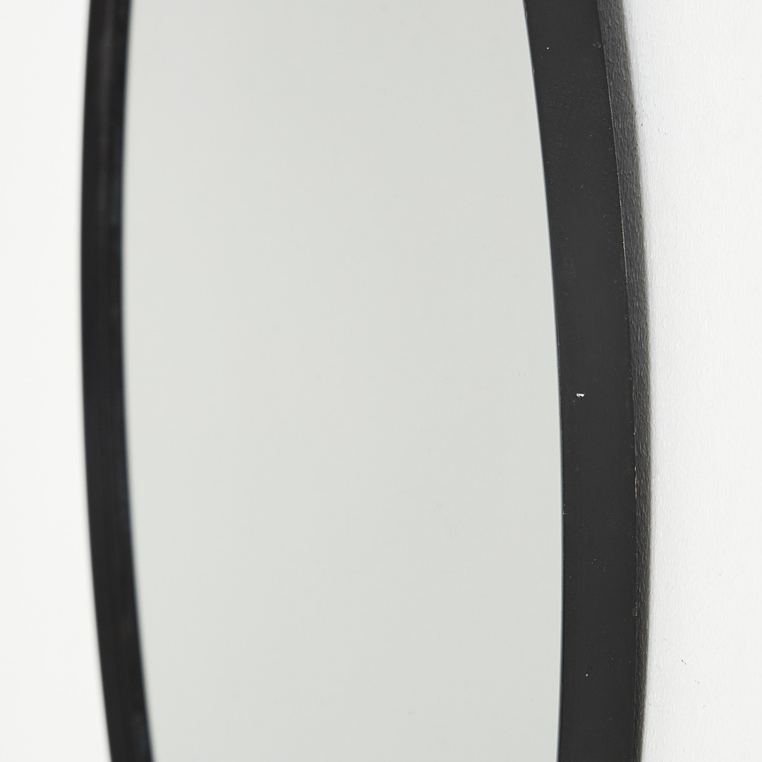 4374199. Spejl, 21. århundrede, rund model, sort lakeret ramme.