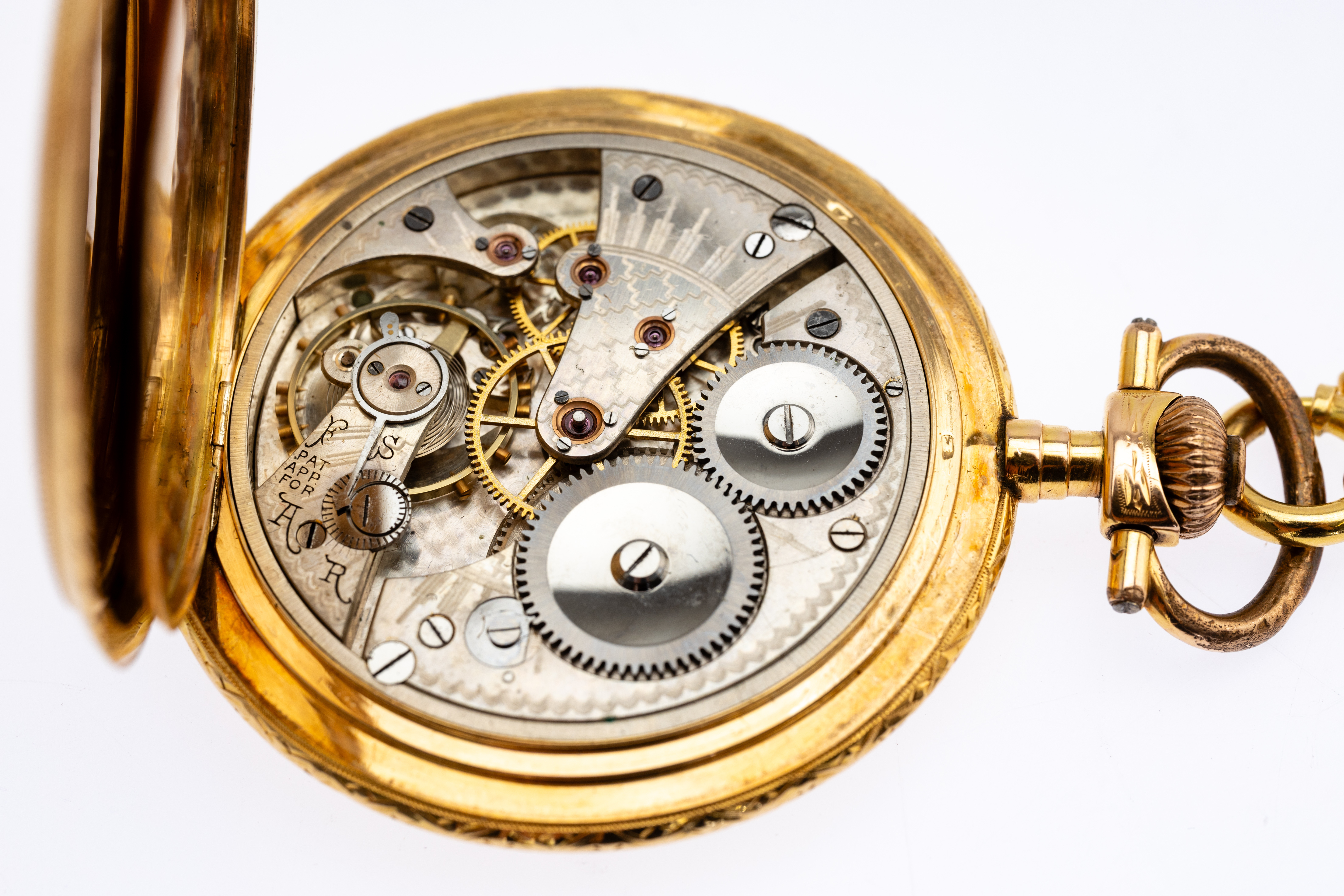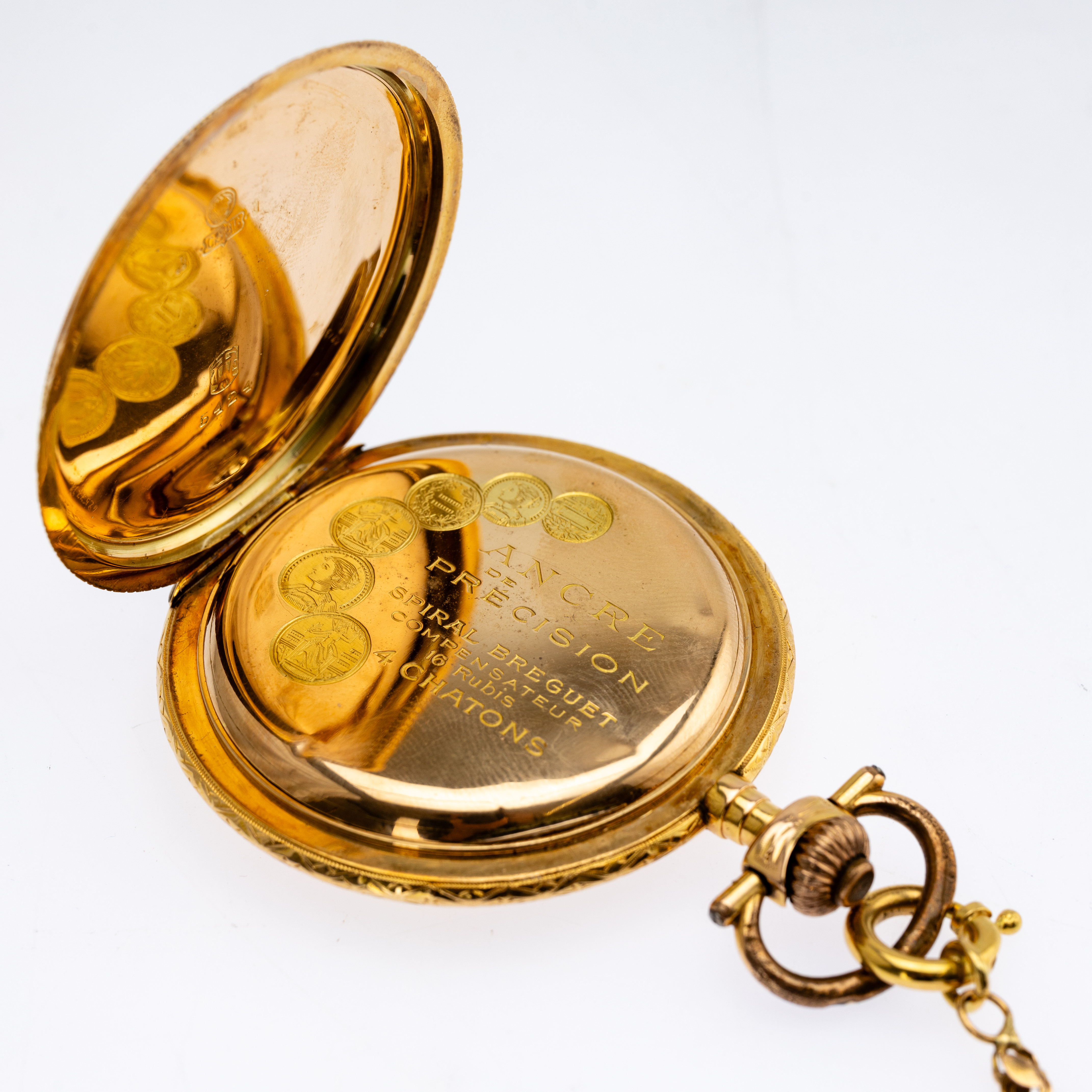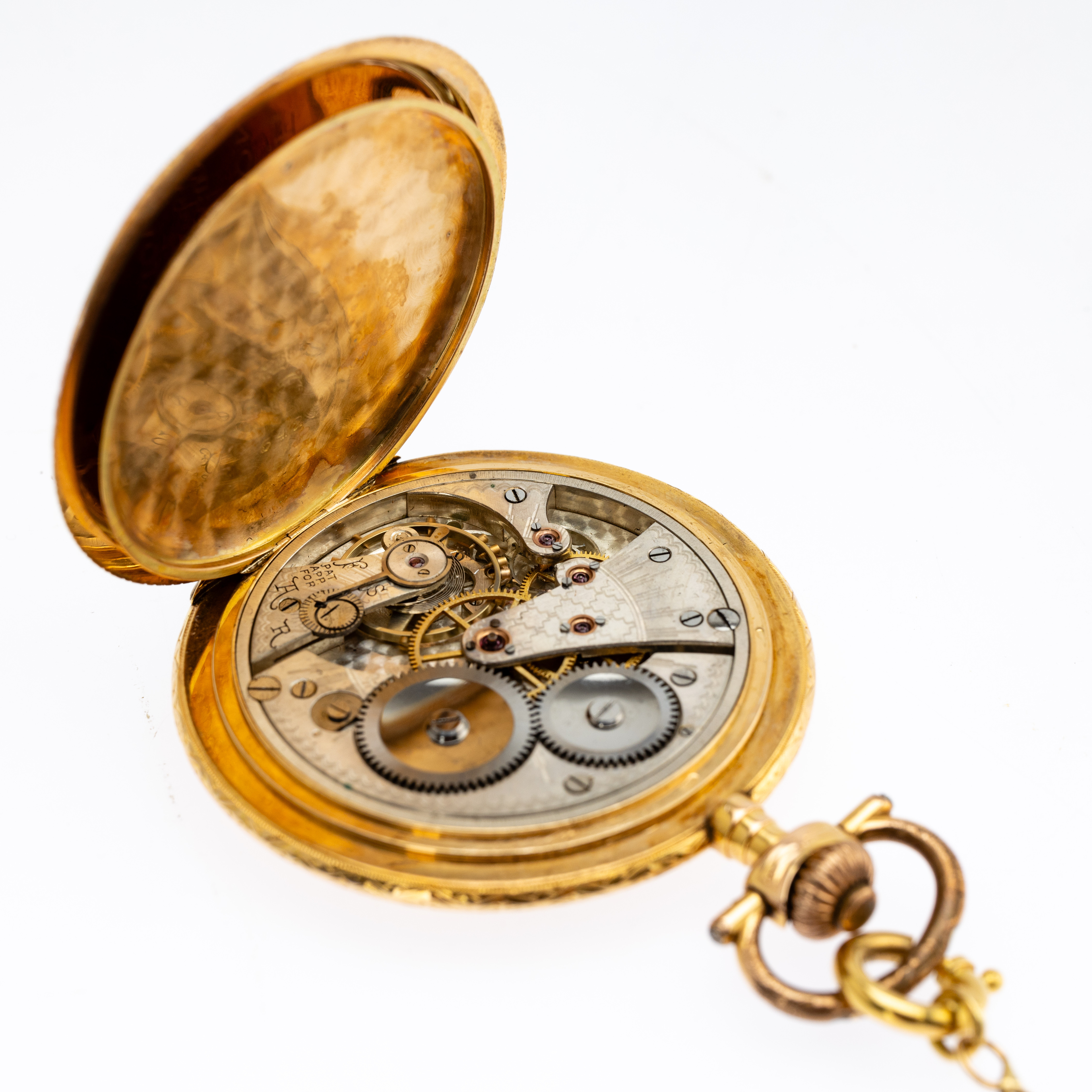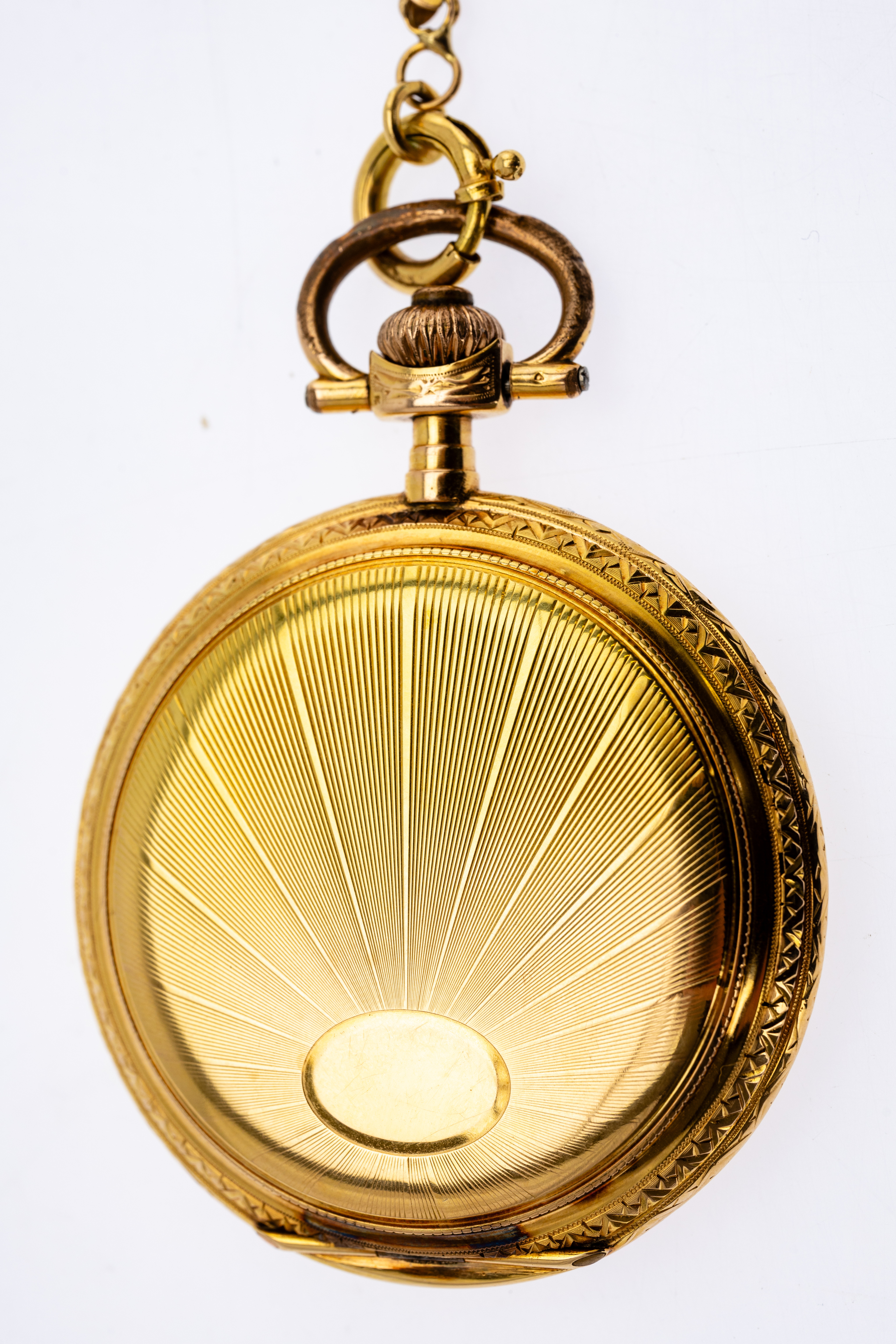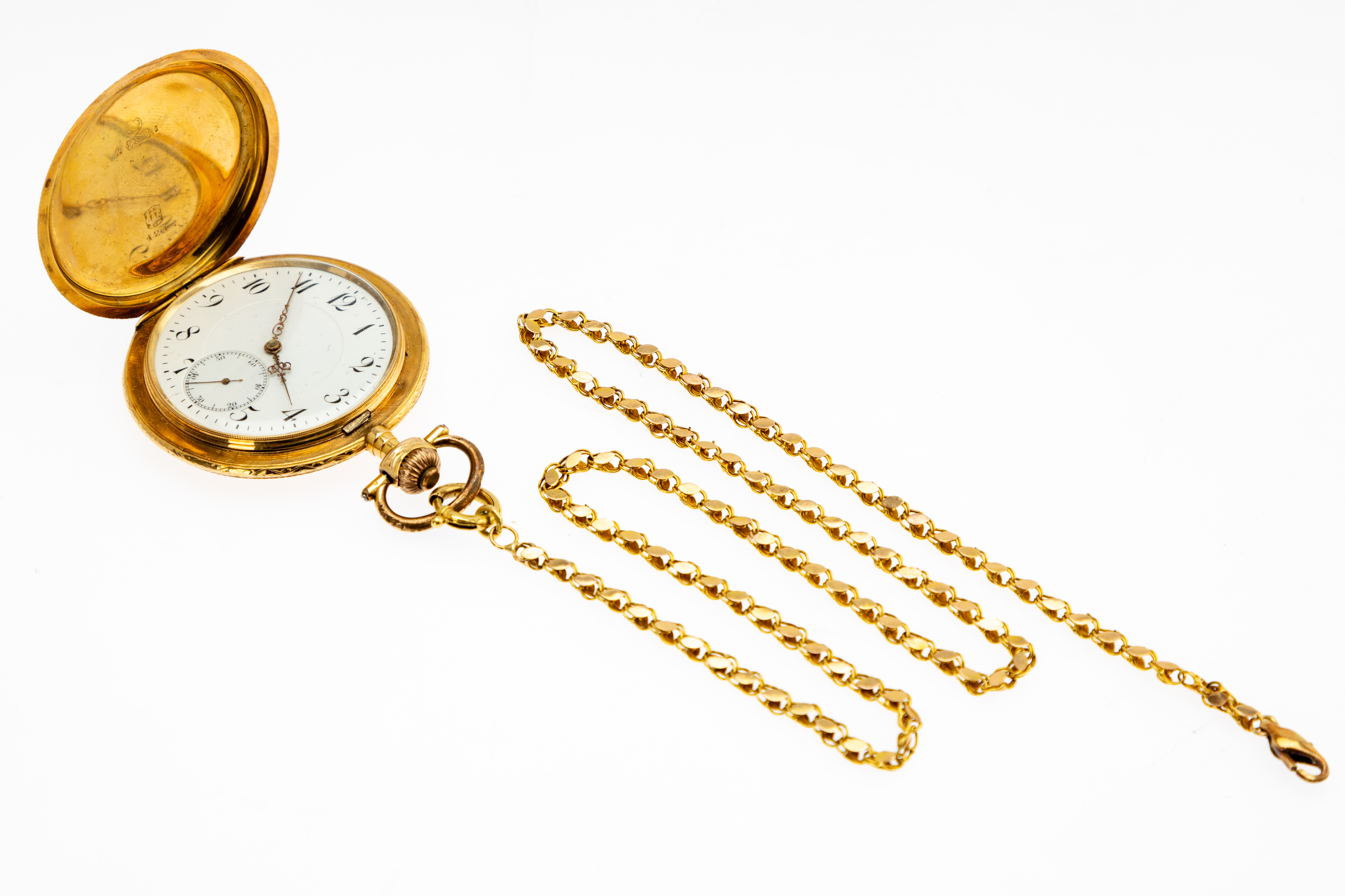 4374285. 585 guld lommeur med kæde.
