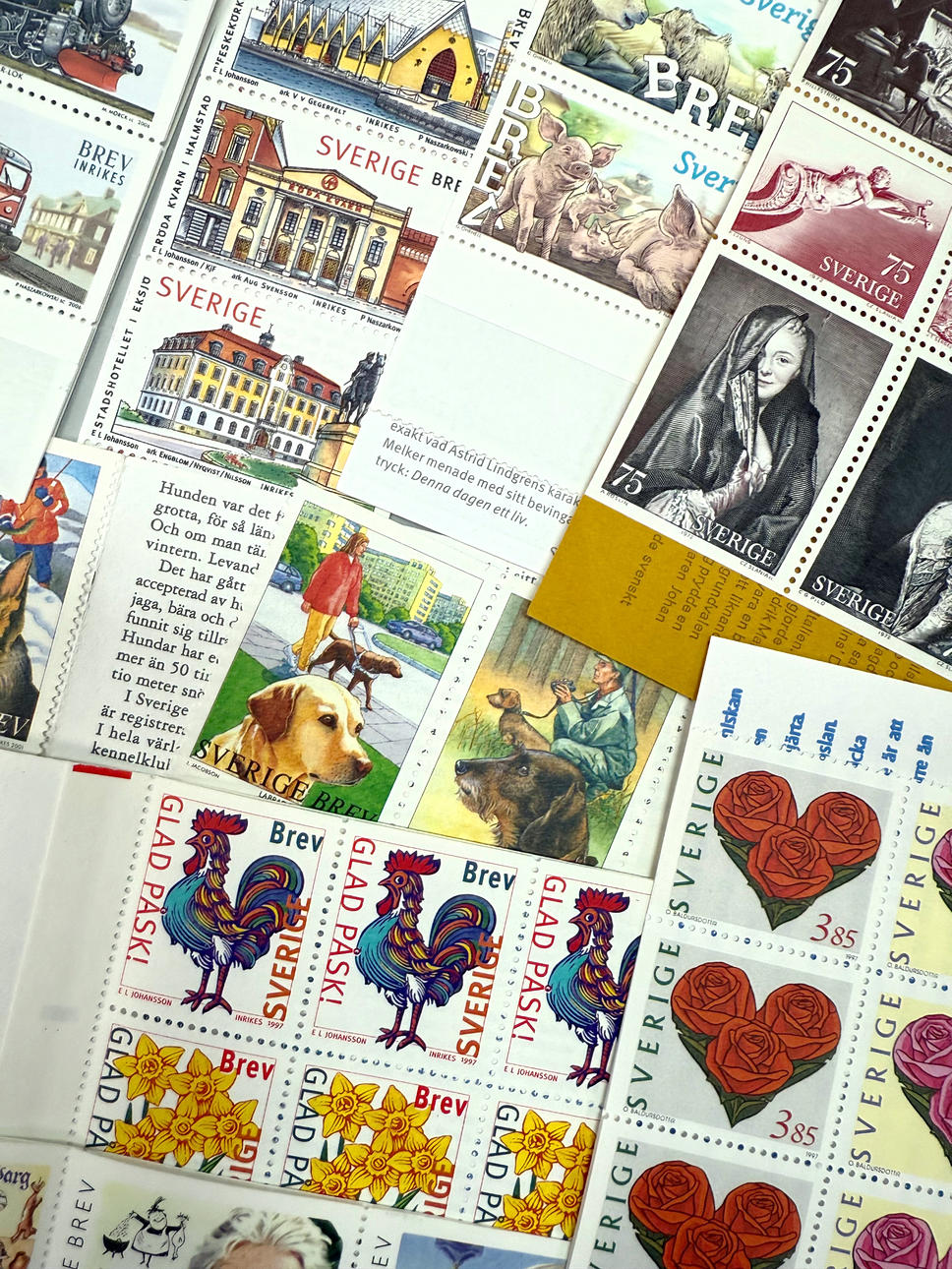 Tilgængelig ca. 300stk ustemplet, de fleste stadig gyldige som porto -pålydende værdi ca. 5000sek.