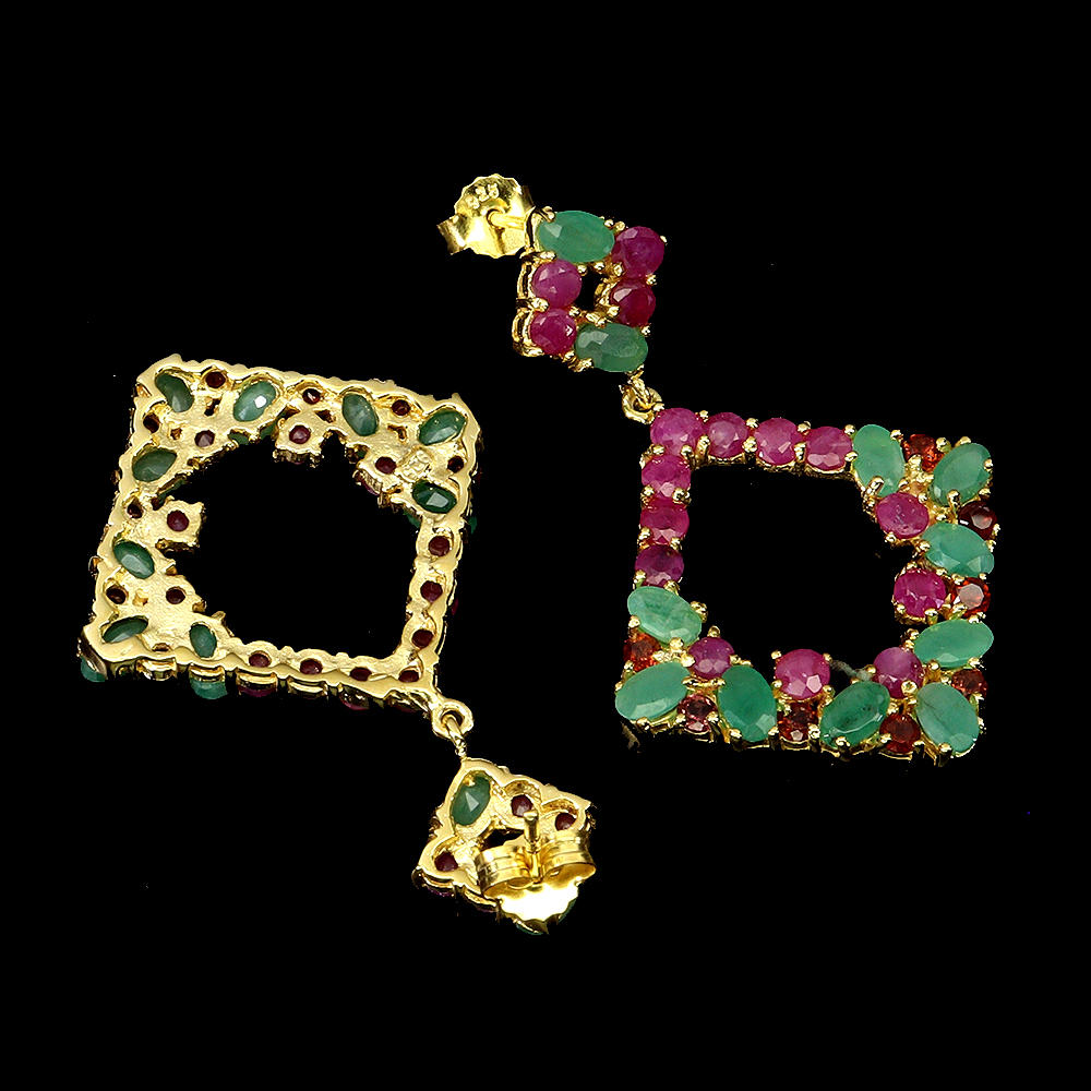 4374808. RUBIN OG SMARAGD SØLV ØRERINGE.