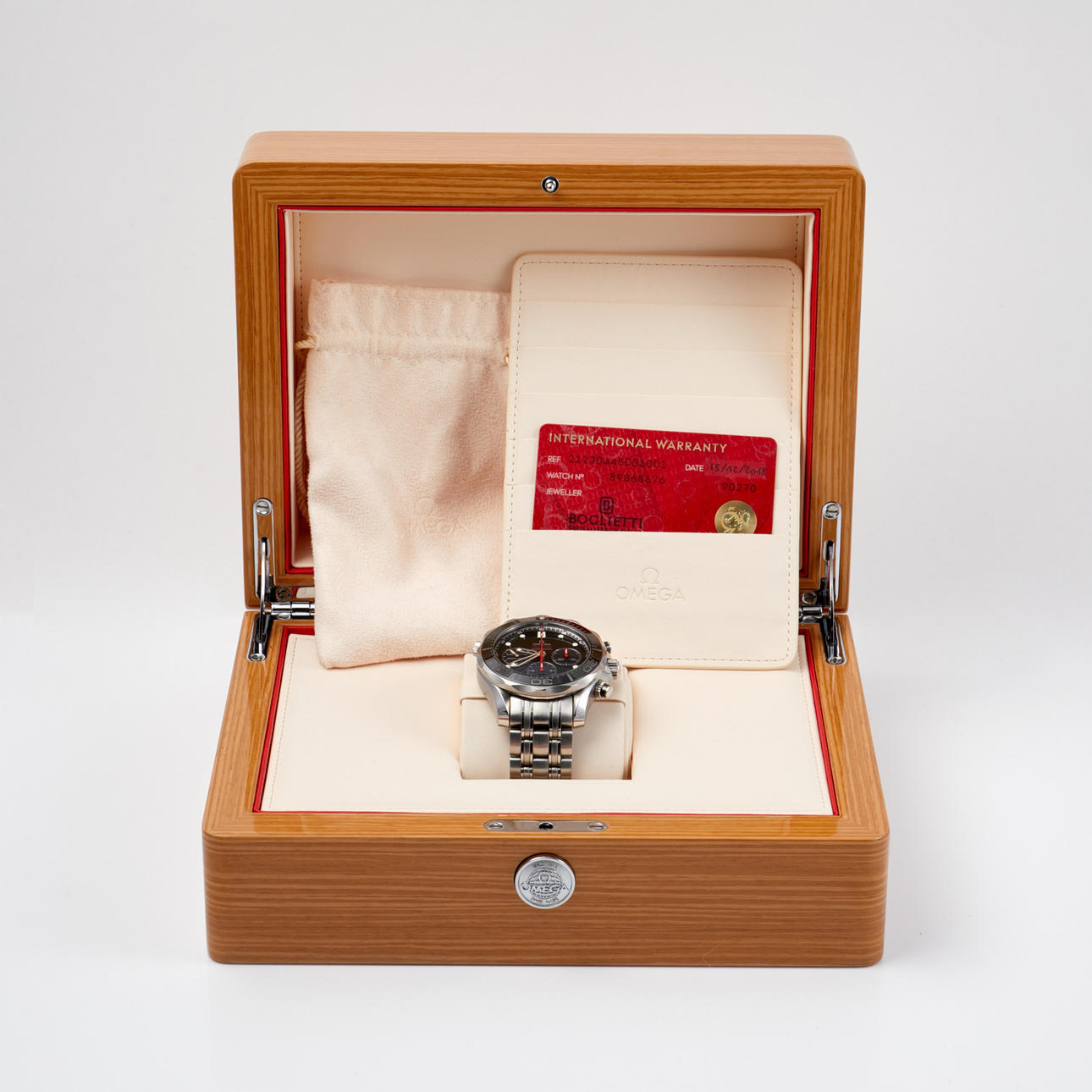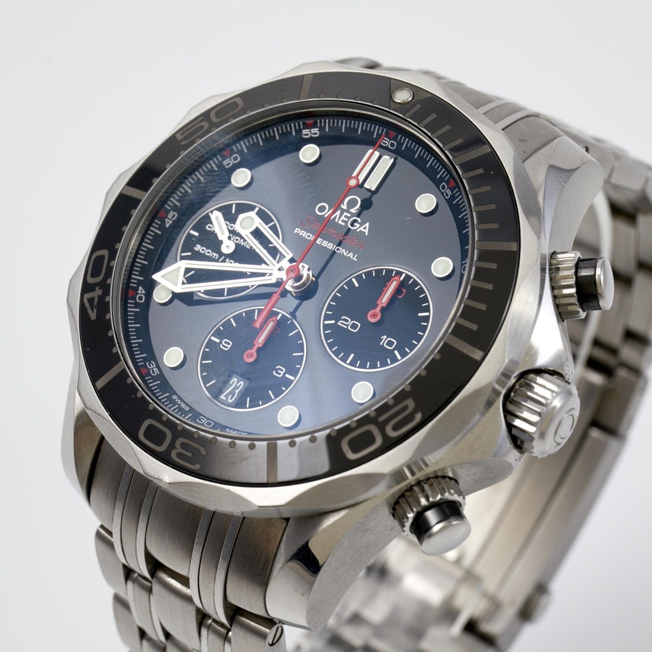 Automatisk, safirglas, dato, kronograf, ref nr. 212.30.44.50.01.001, løbenr. 89868676, cal 3330, original armbånd, foldelås, diameter 44, certifikat, kasse, papir.