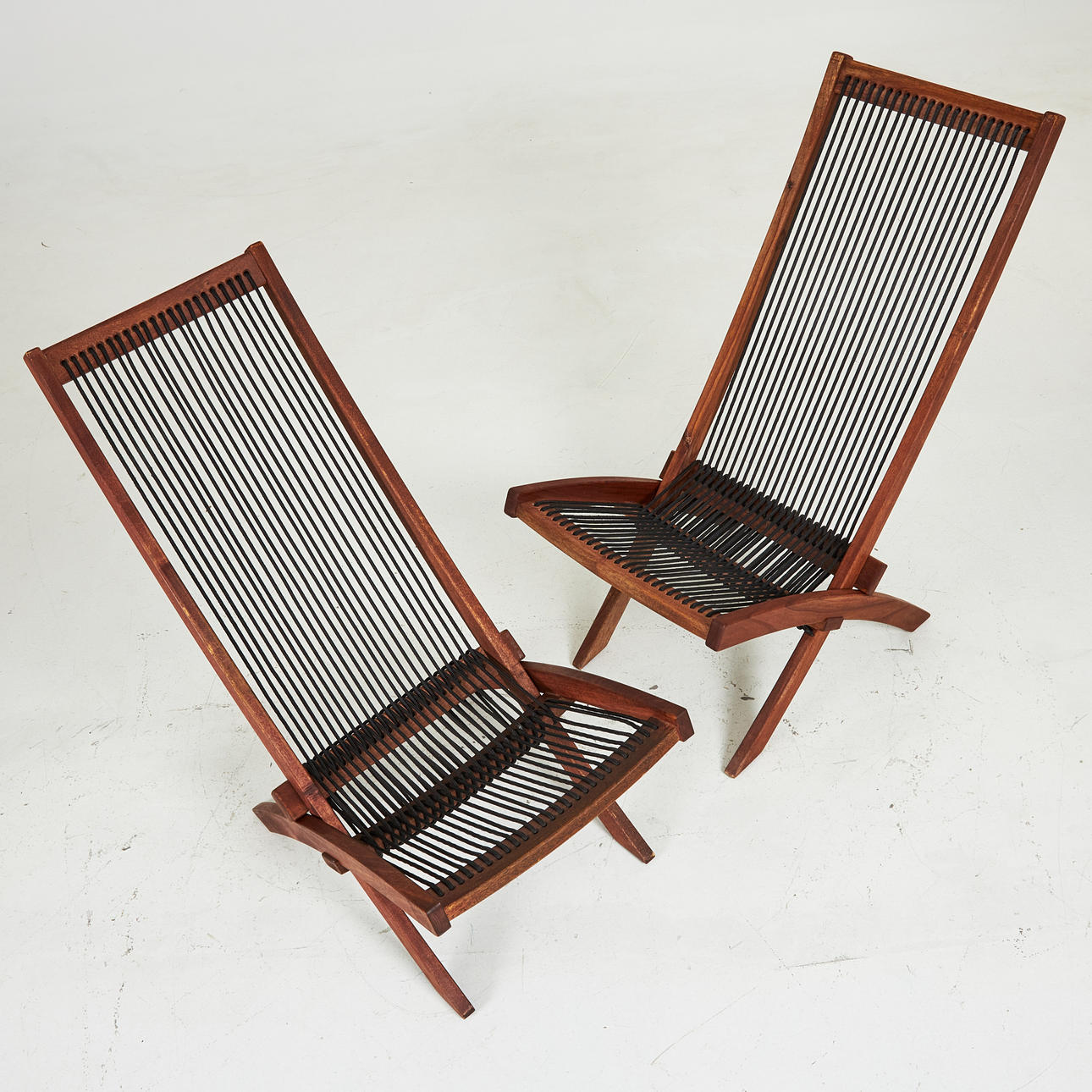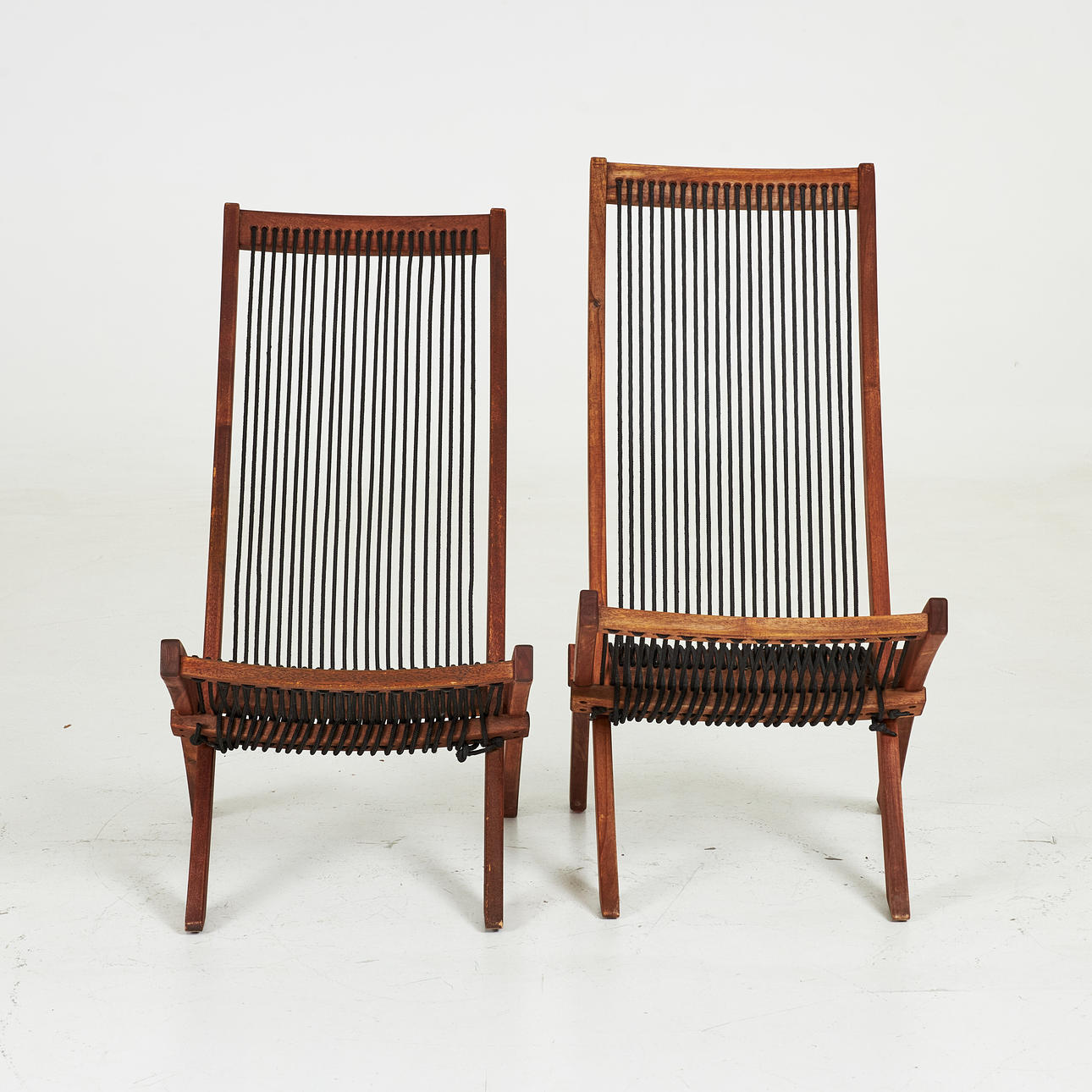 4375169. HAVESTOLE, 1 par, Moderne, bejdset hårdttræ og snor.