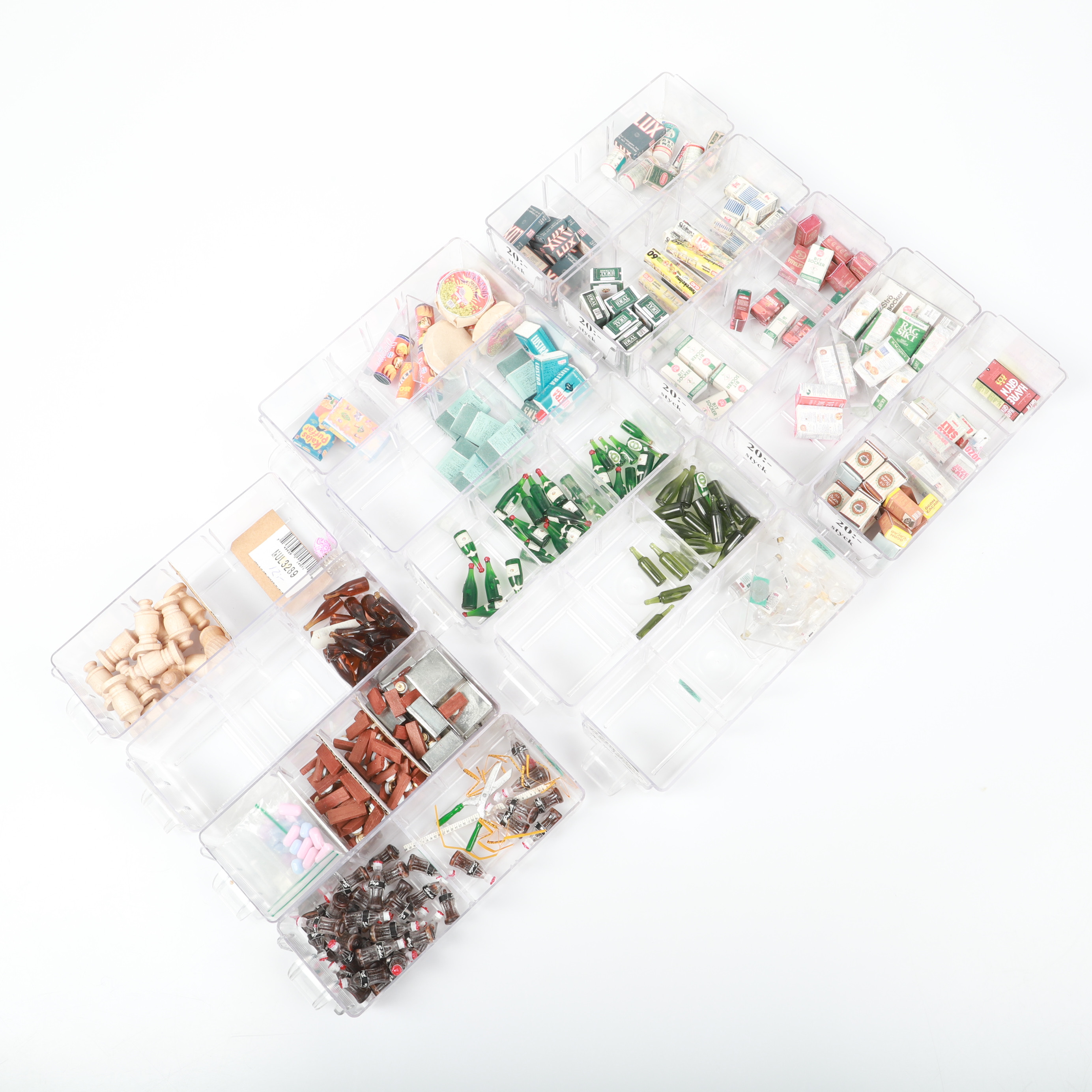 4376634. DOCKE- ELLER VISNINGSSKABMINIATURER, 2 SORTIMENTSKABE.