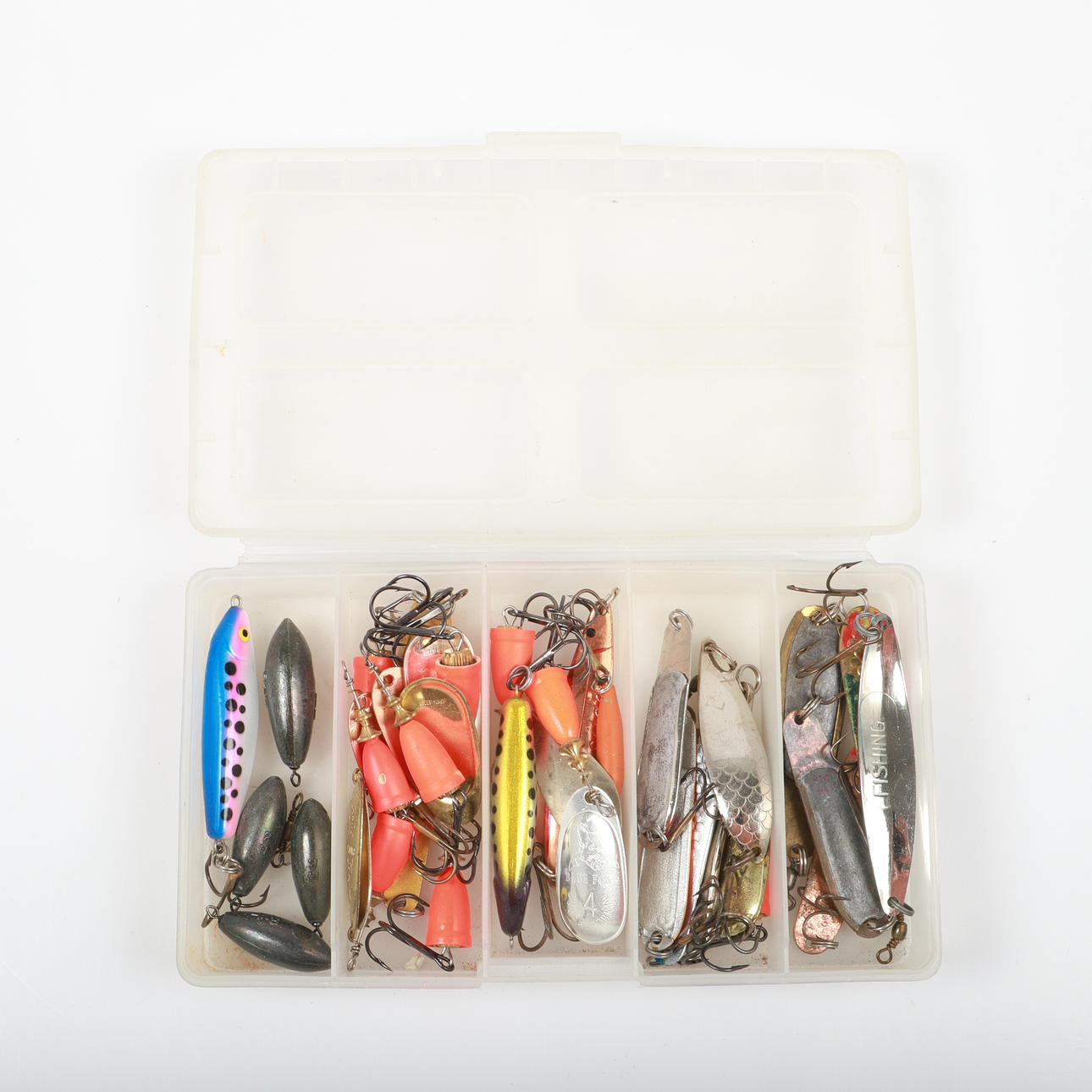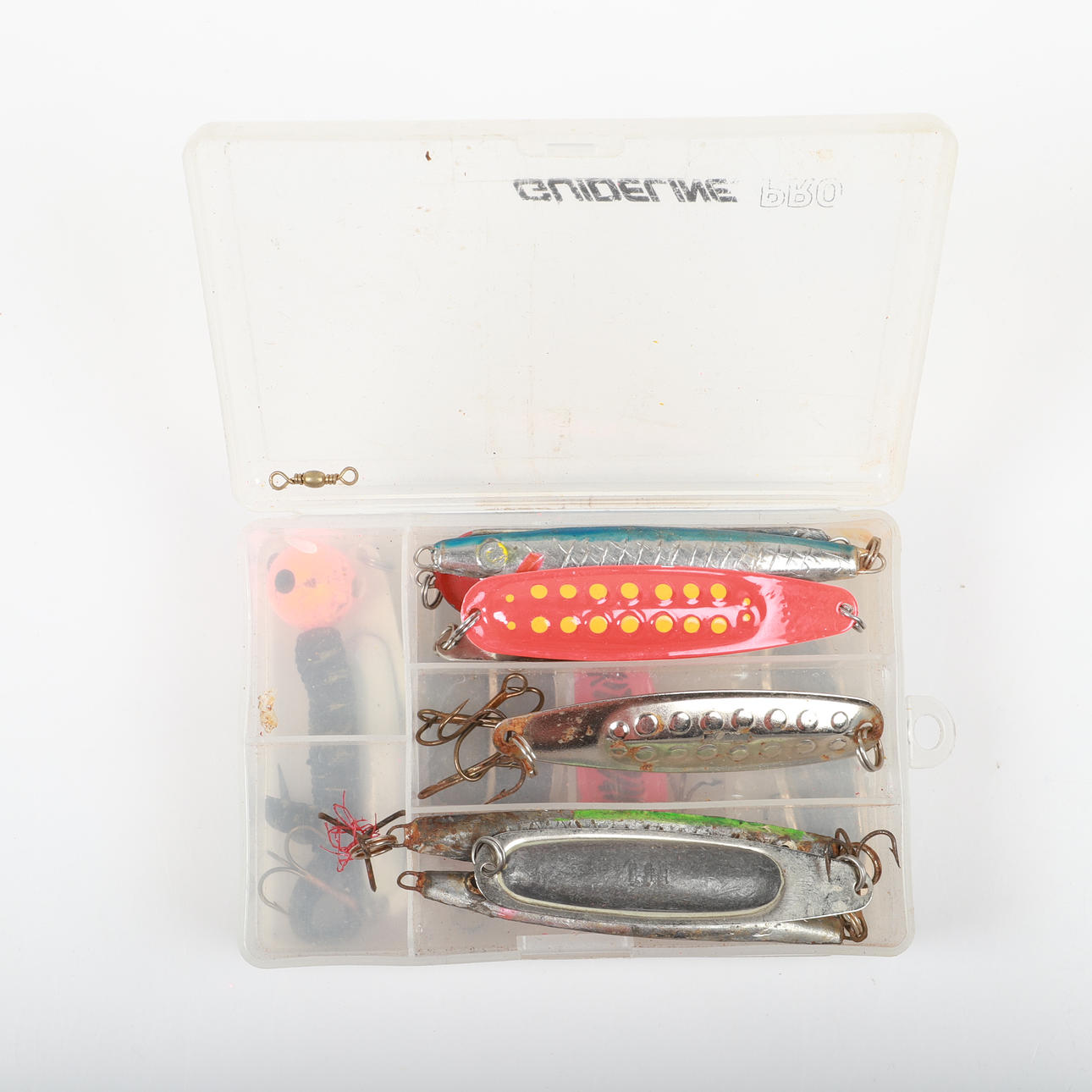 1 fiskekasse, længde 31, bredde 38, højde 13 cm.