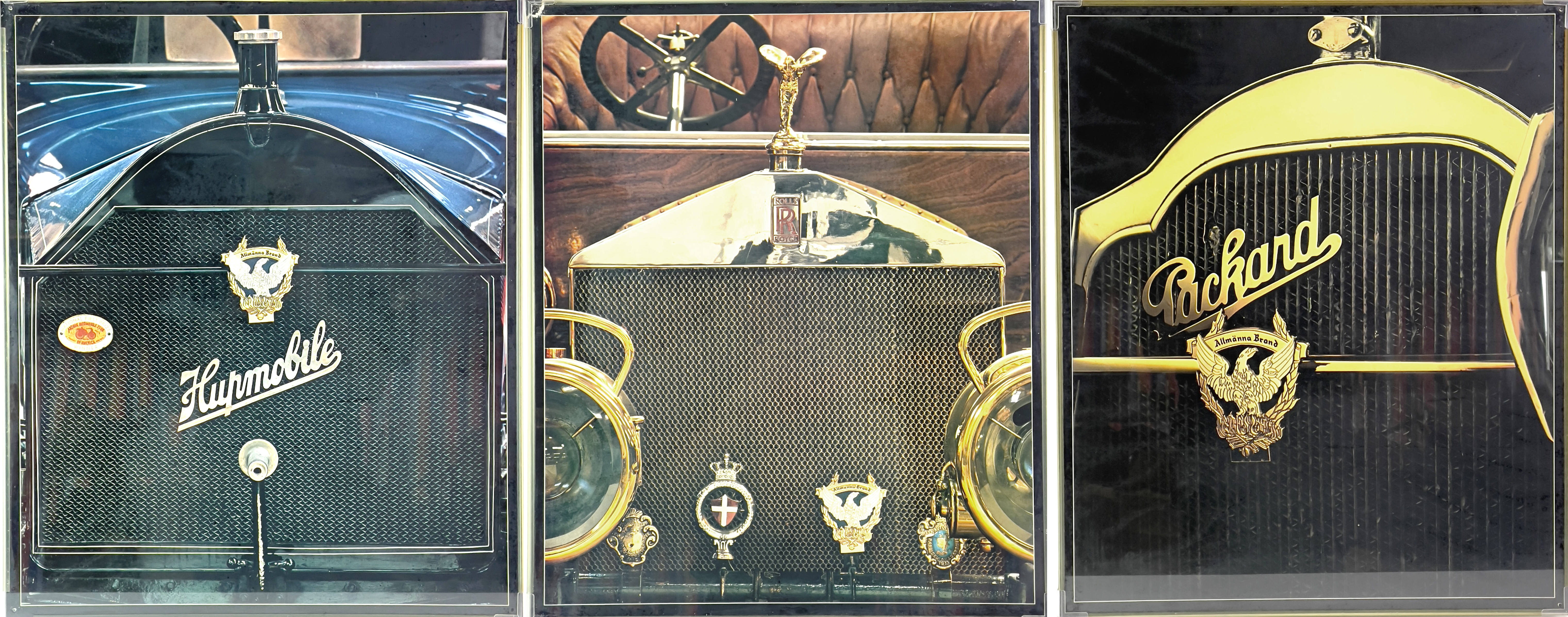 4377159. Tre plakater, Rolls-Royce, Hupmobile og Packard.