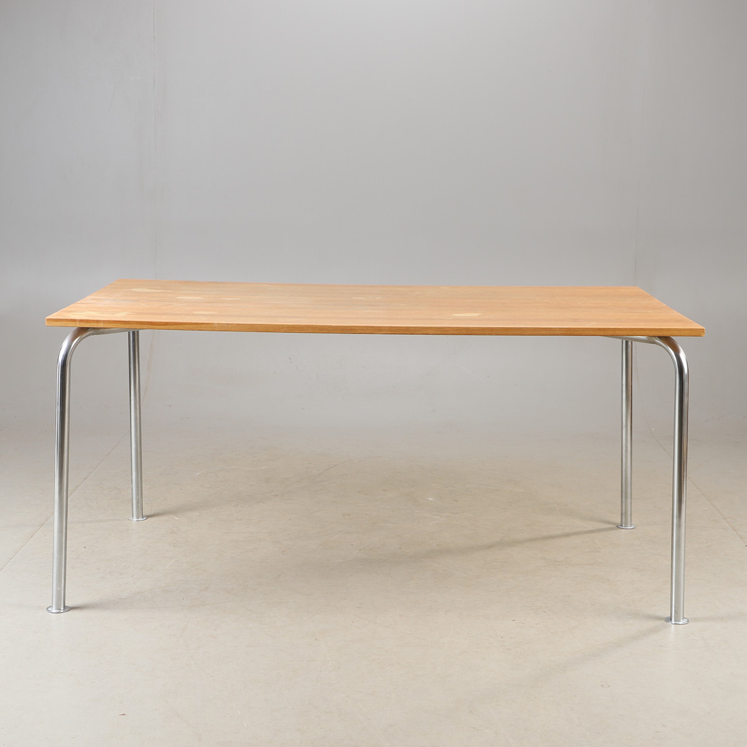 4377344. SPISEBORD, fyrretræ med forkromede ben.
