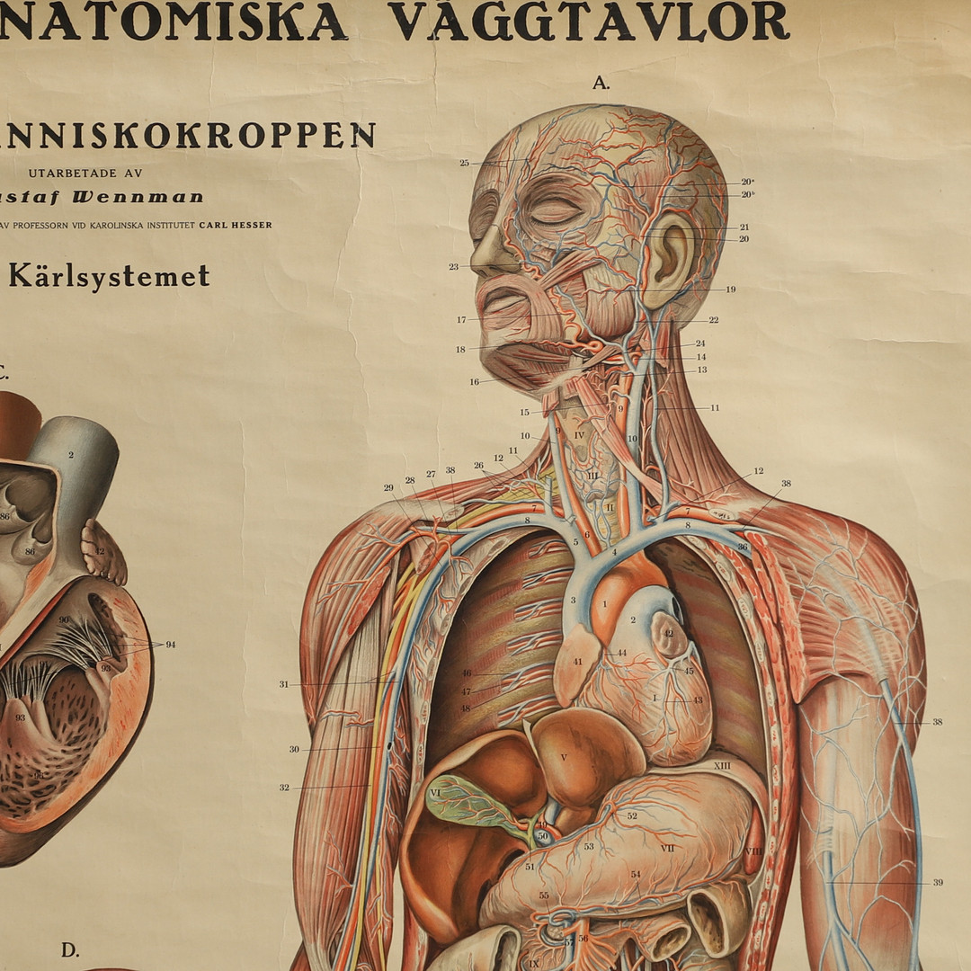 4377652. GUSTAF WENNMAN. ANATOMISK VÆGPANEL AF MENNESKEKROPPEN, V Vaskulært system.