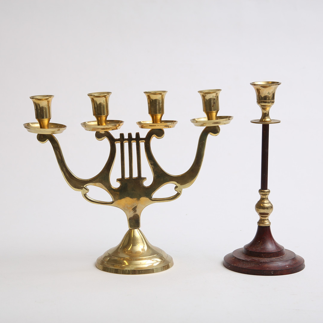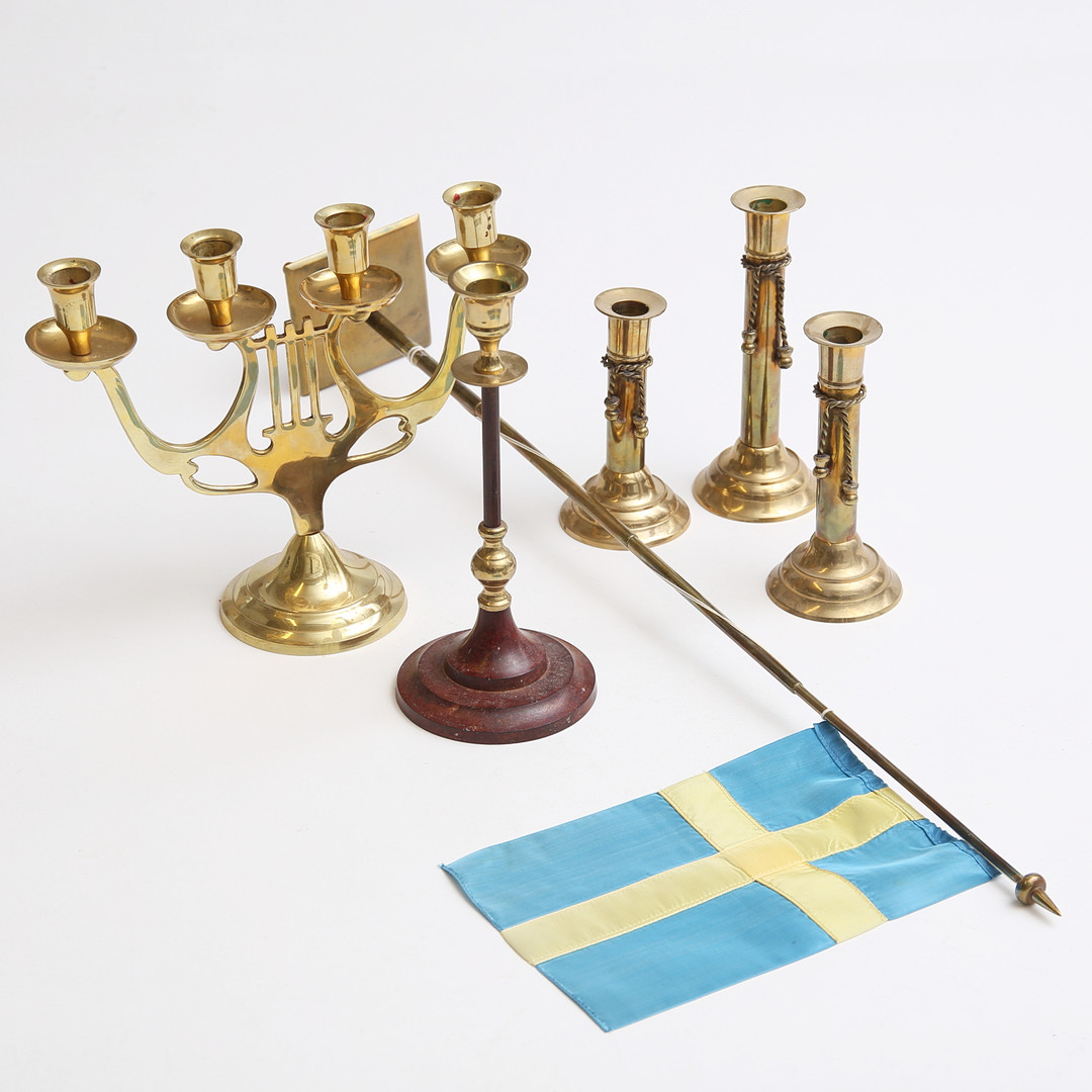 4378738. LYSESTAGE, messing og bordflag, 1900-tal.