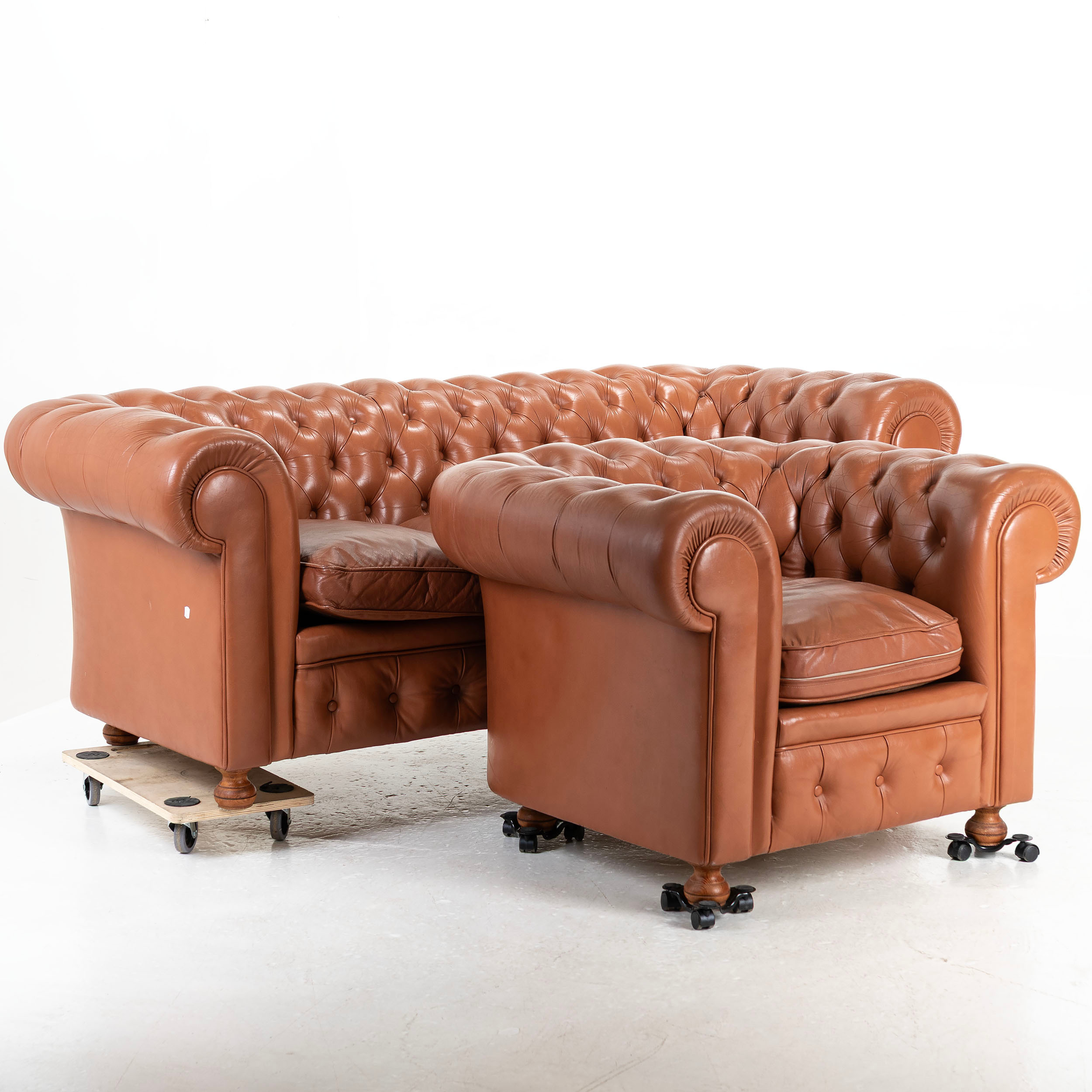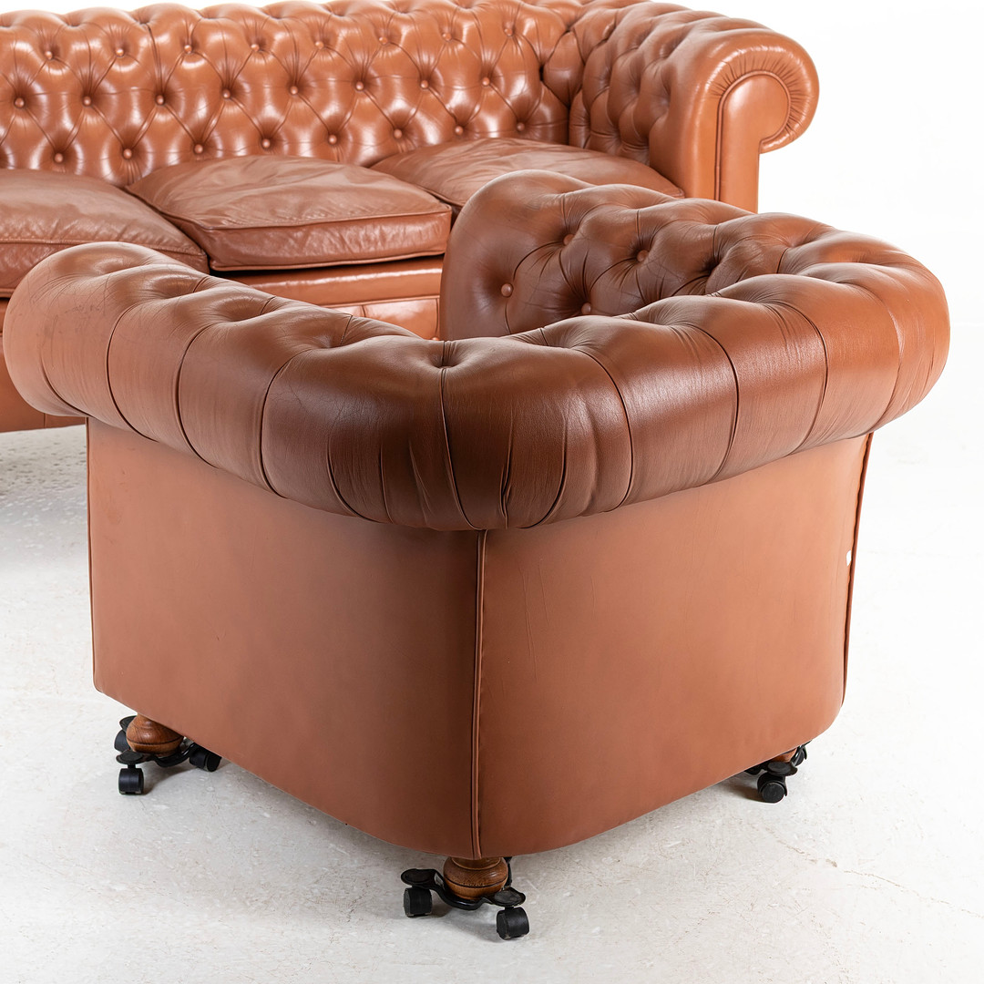 4378954. SOFA & LÆNESTOL, læder, „Pegasus“, Chesterfield.